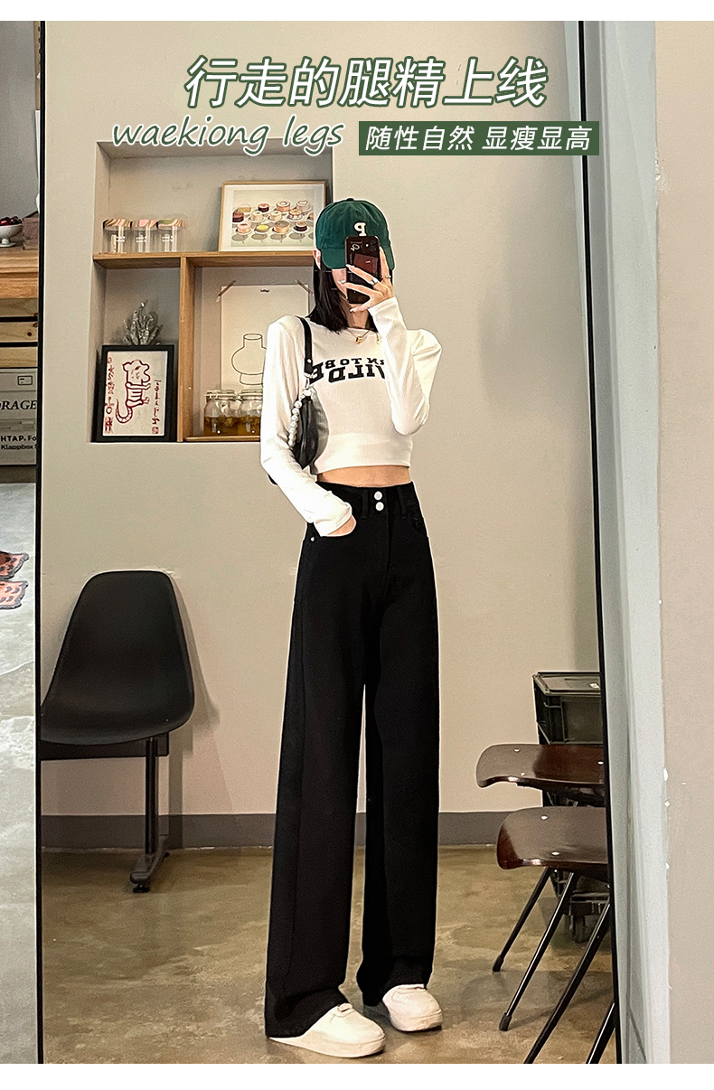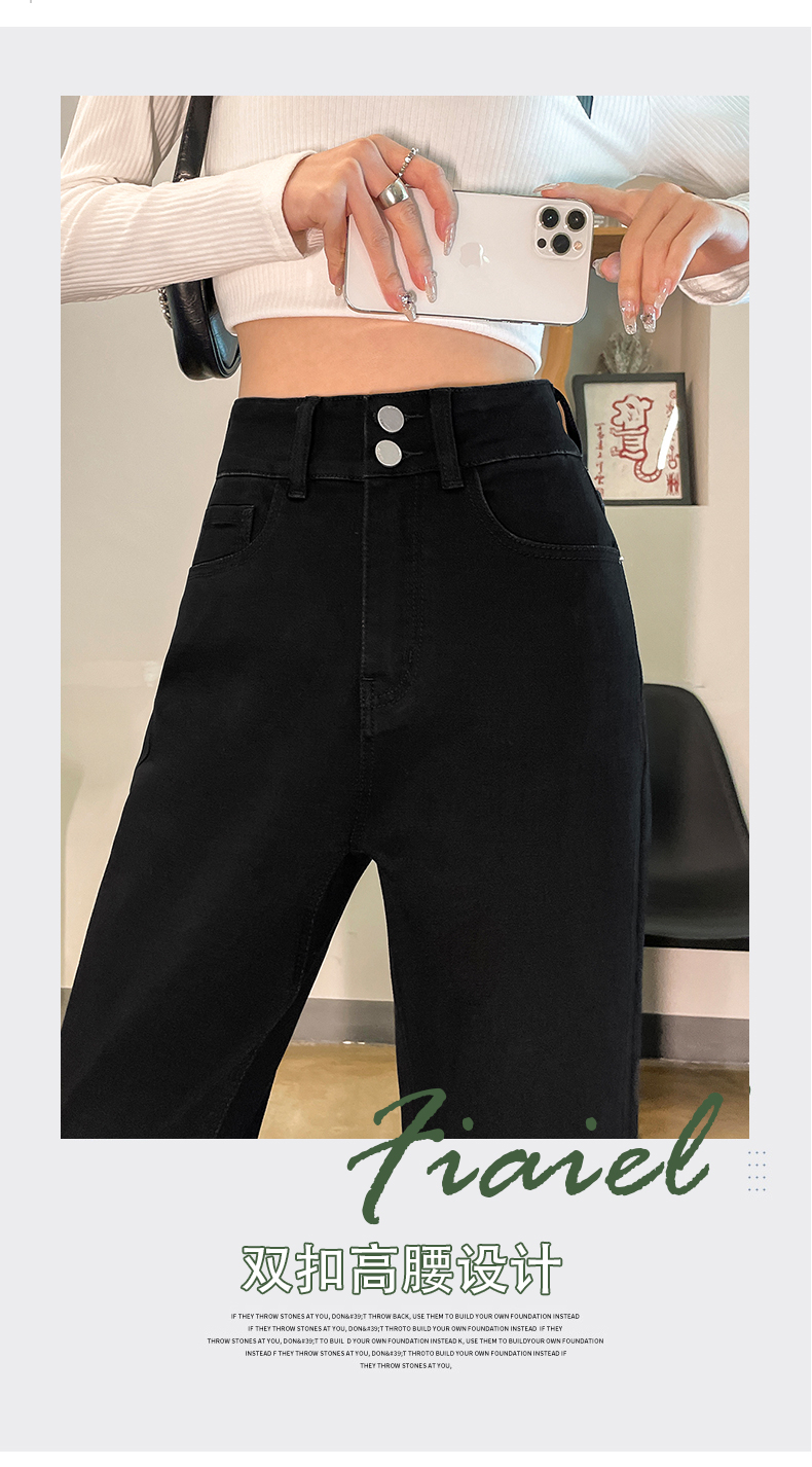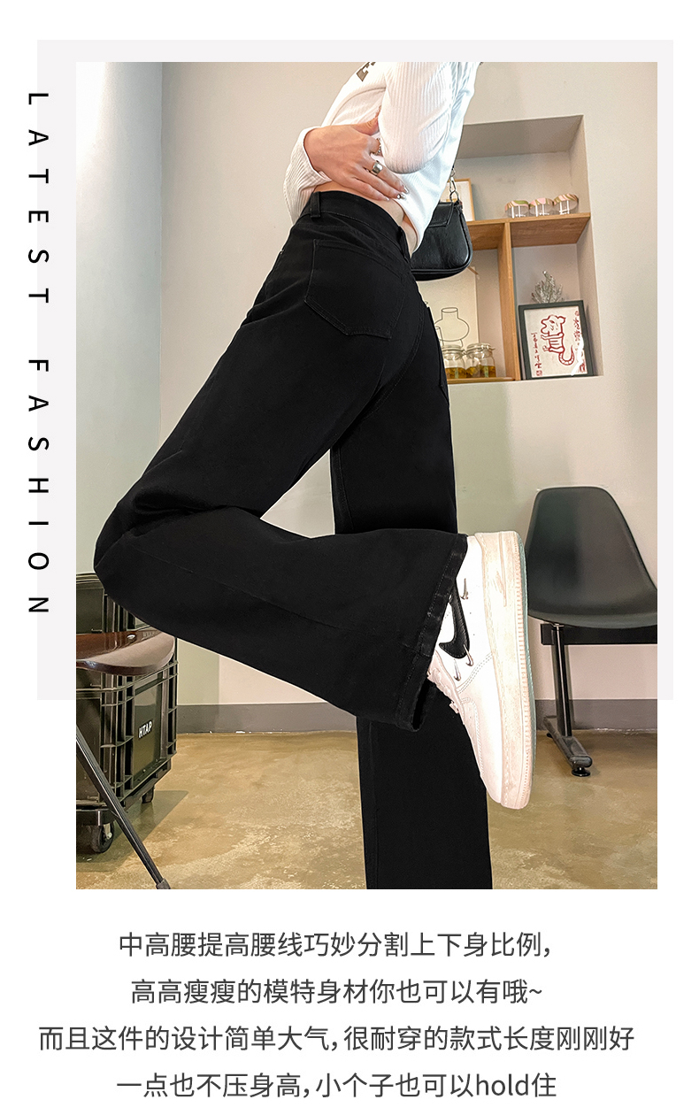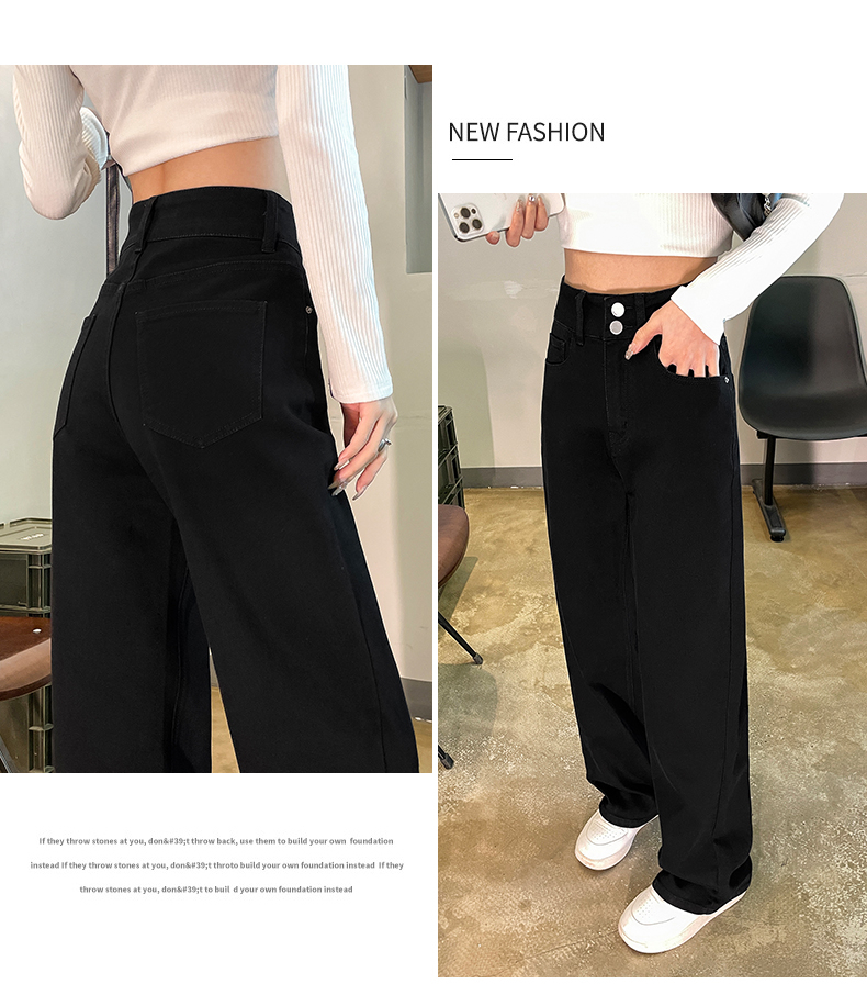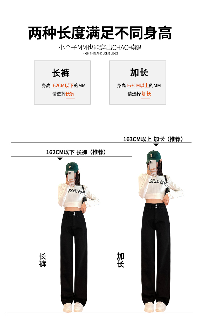 HEY+JEANS美式复古撞色牛仔裤直筒牛仔裤女2022秋季新款弹力高腰显瘦宽松双扣拖地裤
