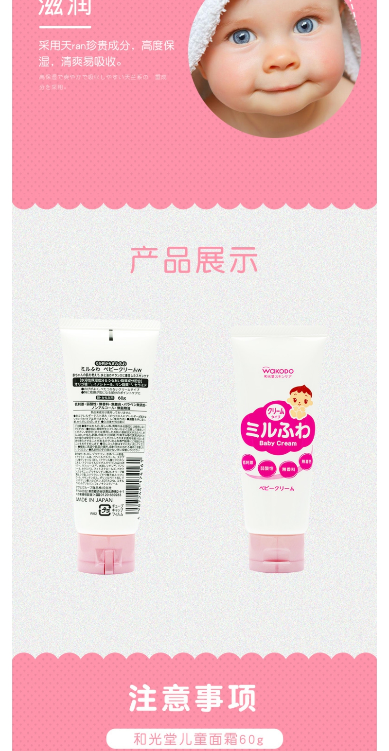【YZ】日本Wakodo和光堂婴儿童宝宝无香保湿弱酸性面霜润肤霜乳霜 60g