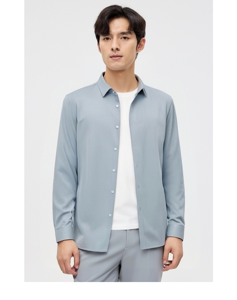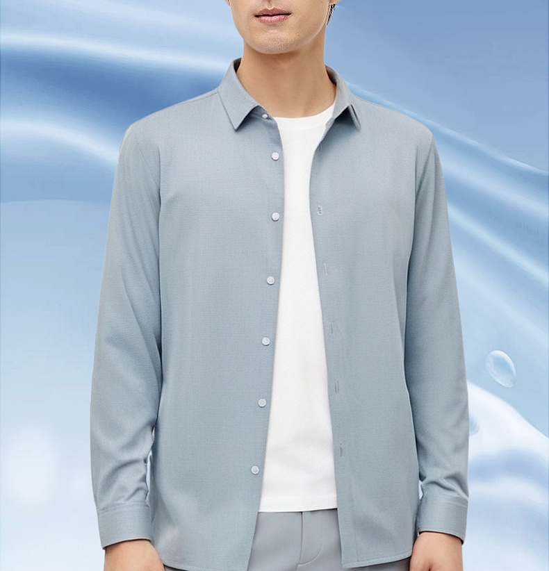 圣得西易打理长袖衬衫男士2025春季新款简约商务休闲职业面试衬衣