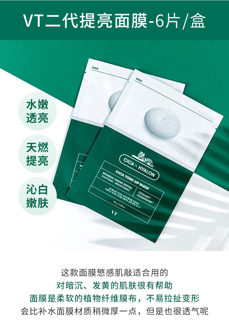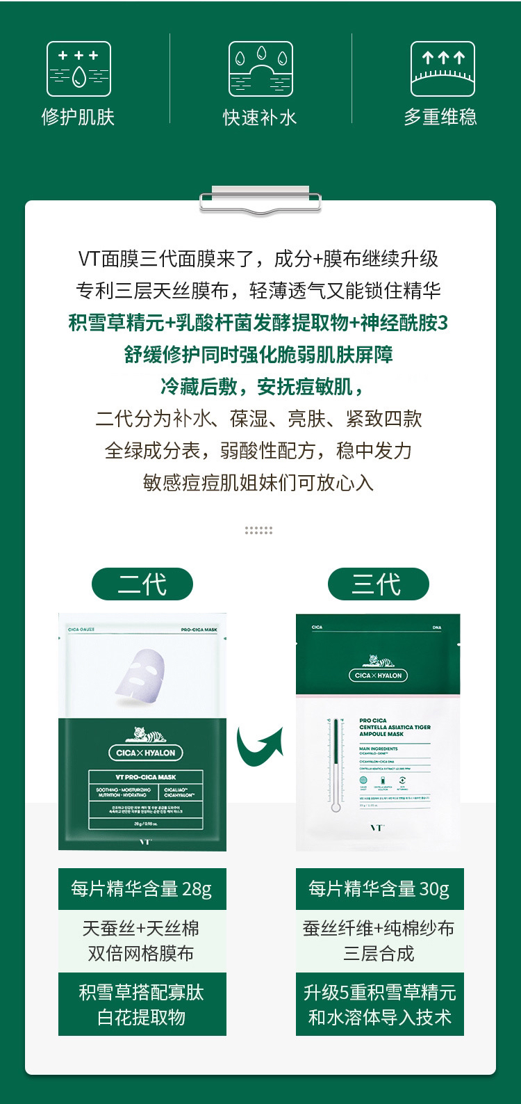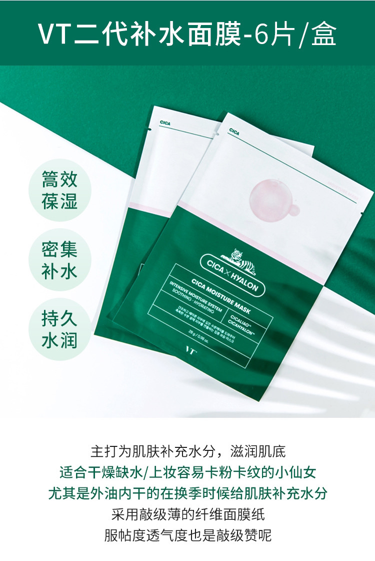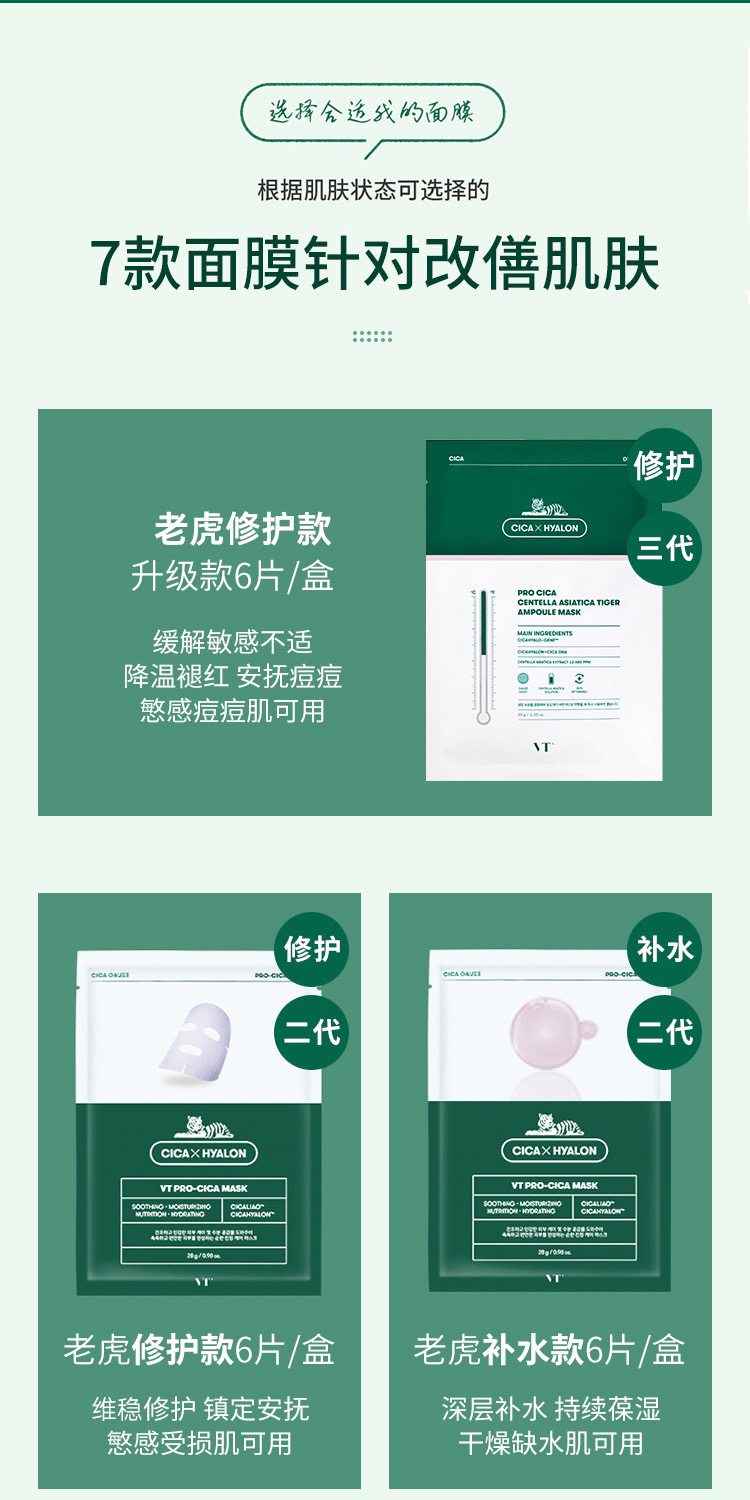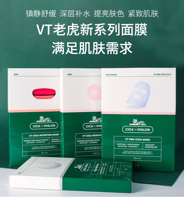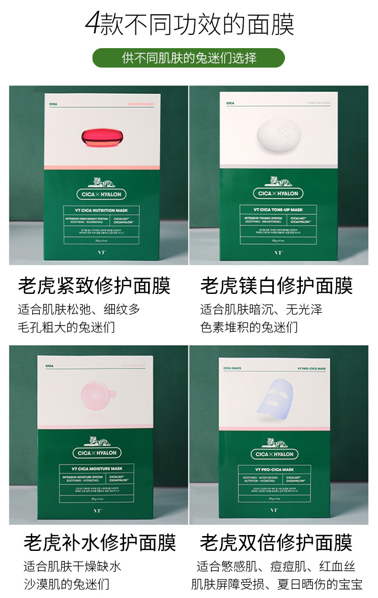 韩国 VT范特 老虎2代积雪草双倍修护保湿面膜 全系列 28ml*6片