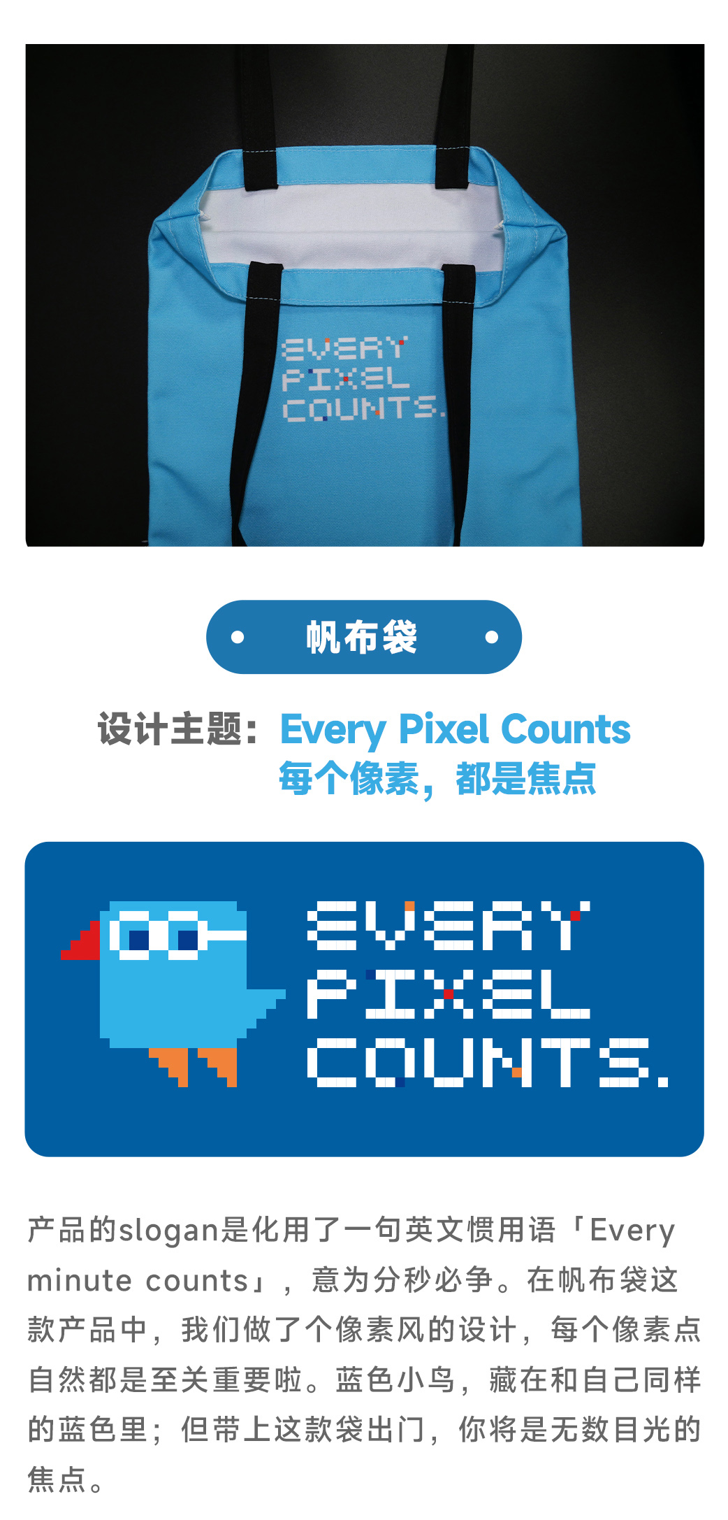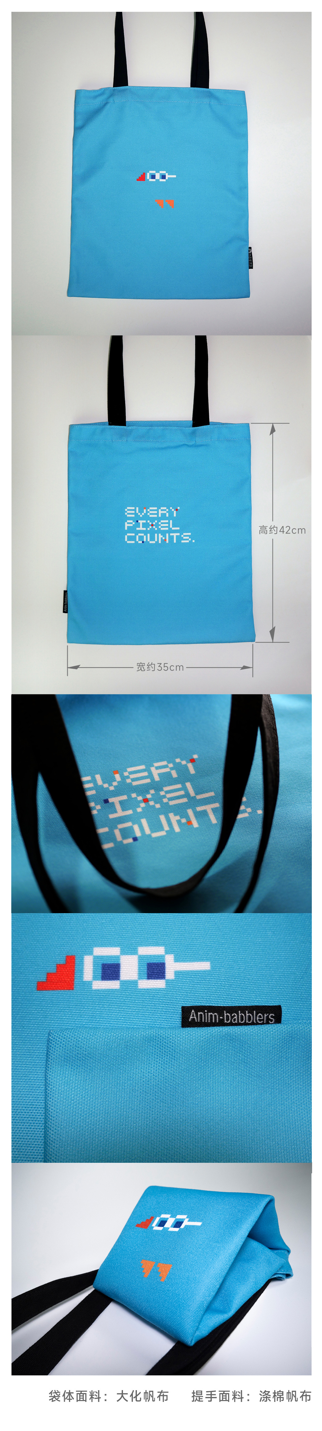 动画学术趴原创!像素风蓝色文艺帆布袋!每个像素都是焦点,<可爱透了>系列周边