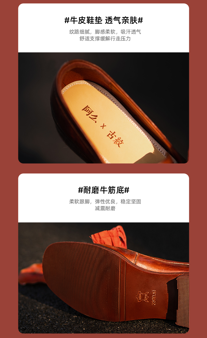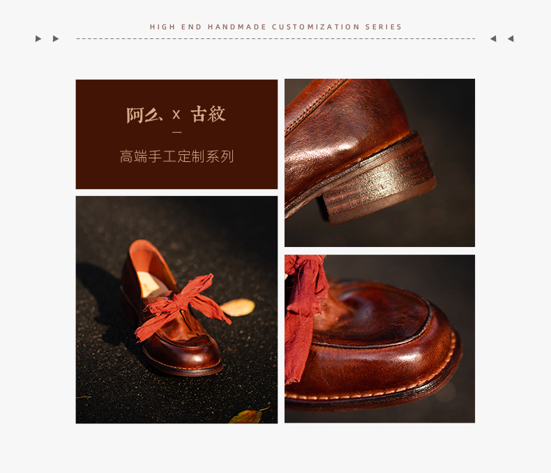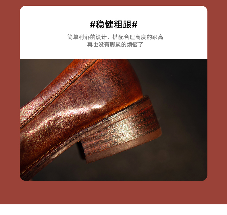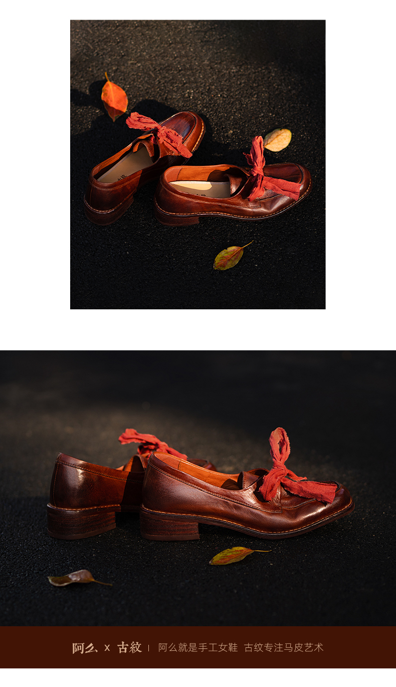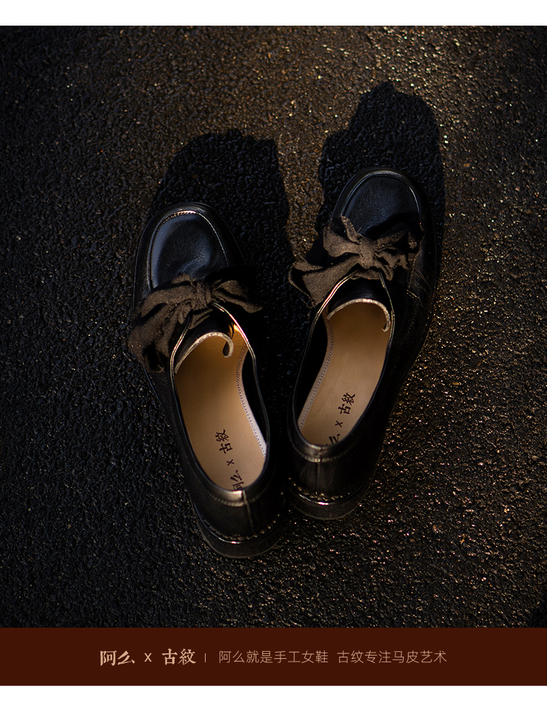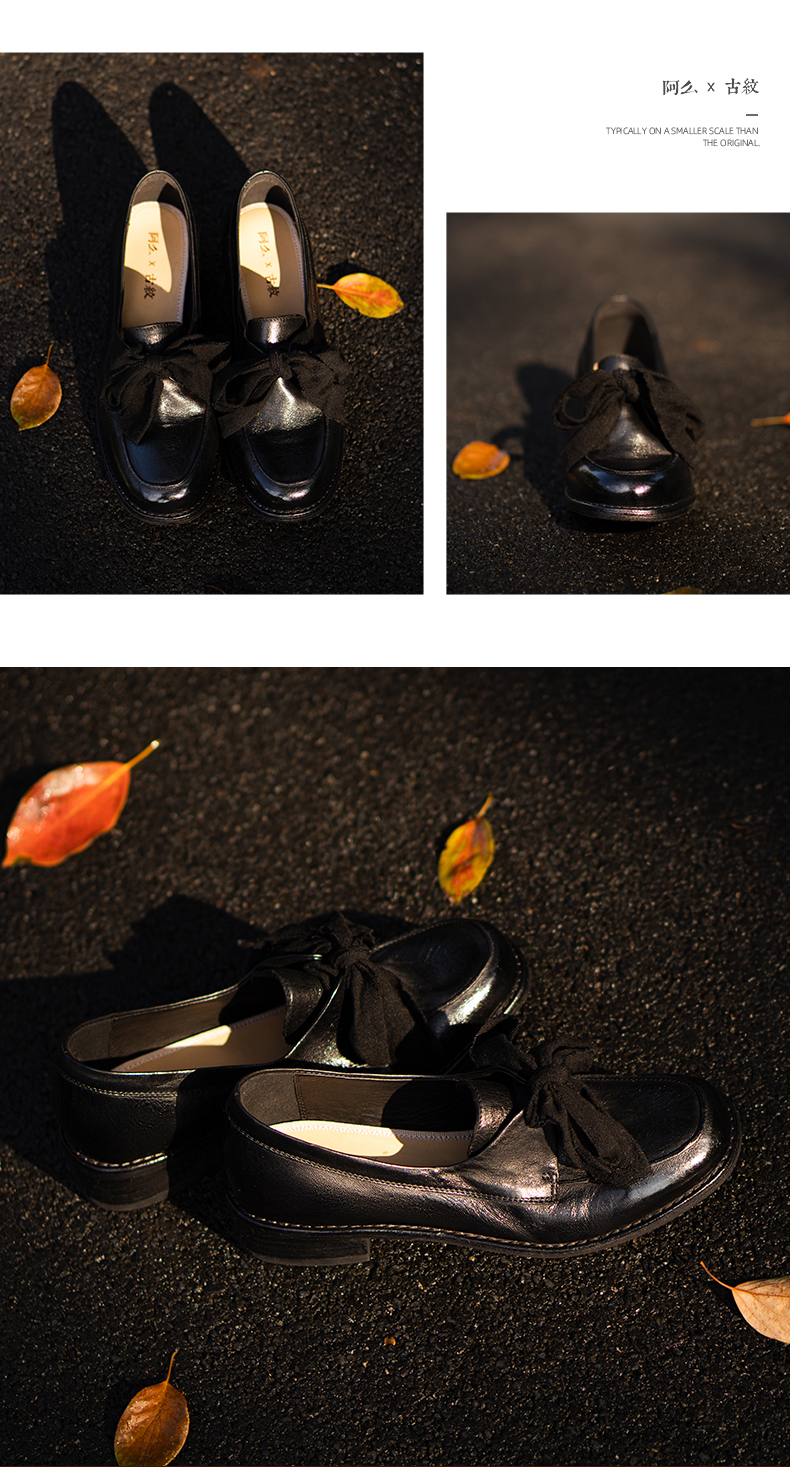 【阿么古纹马皮鞋】高级感绑带休闲单鞋新款粗跟复古乐福鞋女3.5CM