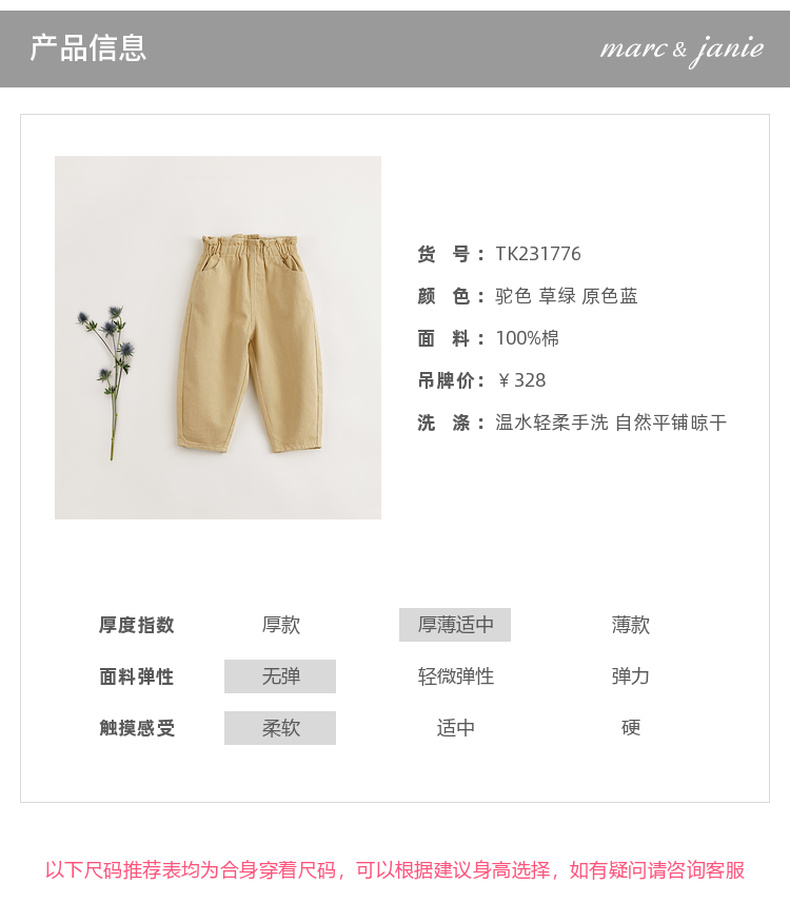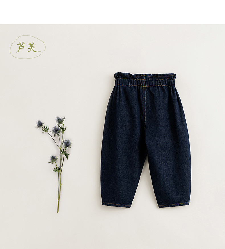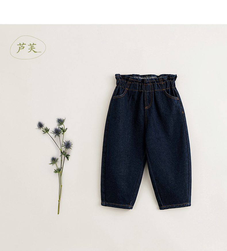 【马克珍妮 芦芙】秋装新款 女童花边腰纯棉牛仔裤 231776