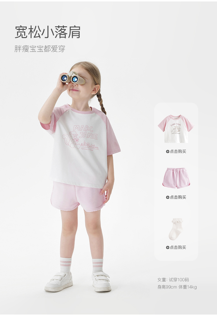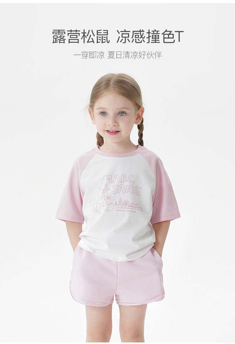 【凉感】马克珍妮男女童涂鸦松鼠短袖T恤 宝宝上衣夏装新款550579