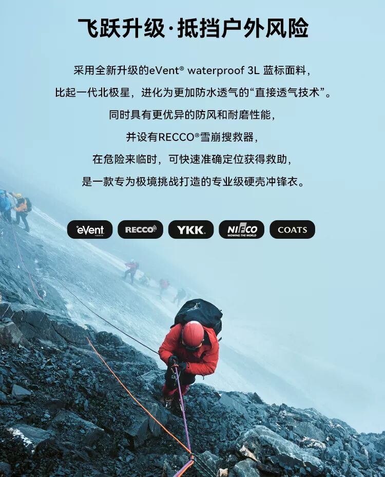 【北极星PRO】伯希和eVent极境硬壳冲锋衣男暴雨防水专业登山服女