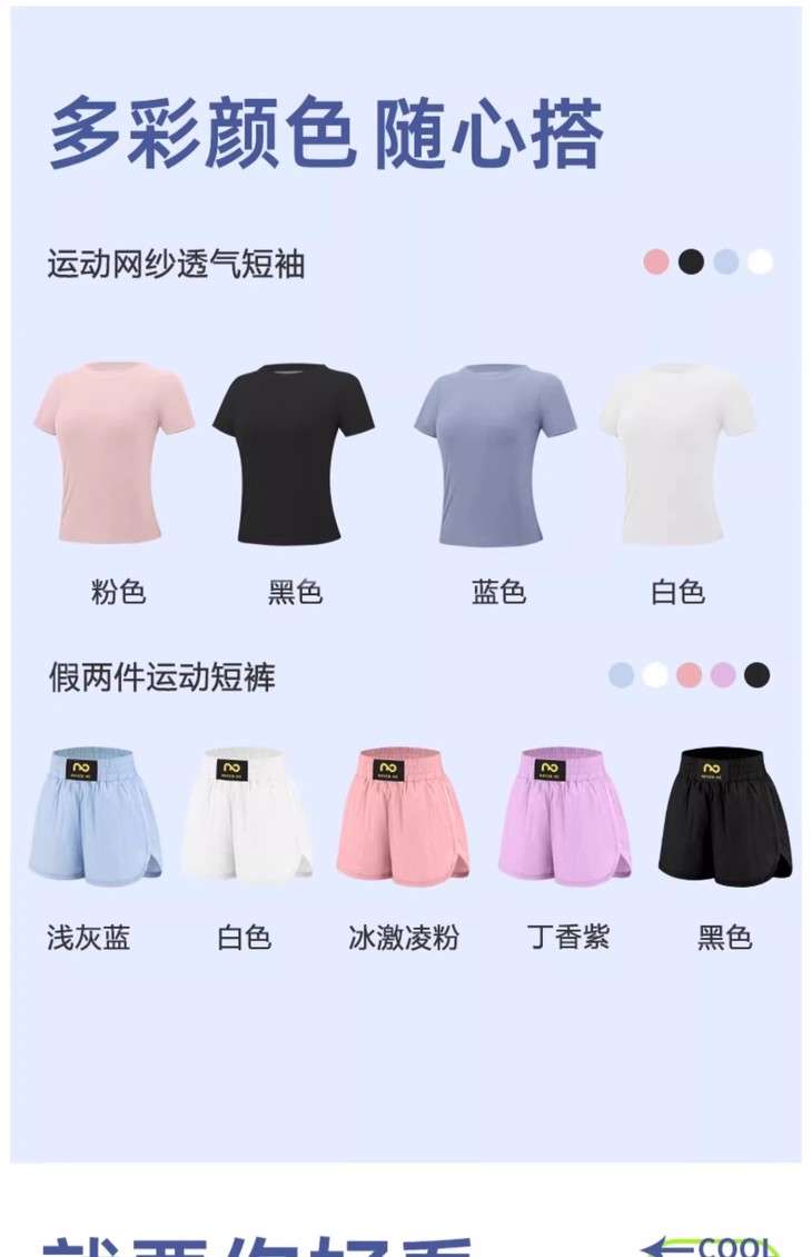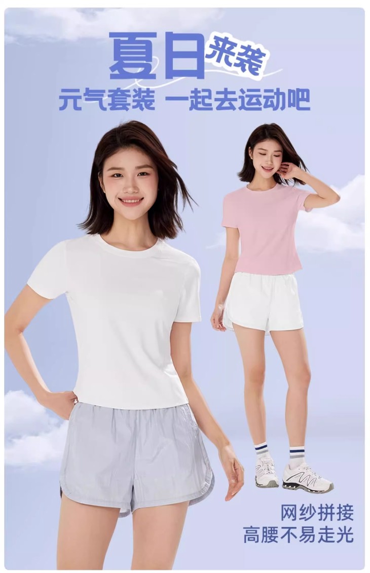 NEVERME T恤短裤元气套装,不挑身型遮胯藏肉 拳击运动短裤+短袖T恤ST4850+SD1864-1