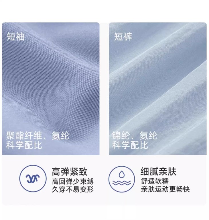 T恤:86%聚酯纤维14%氨纶短裤:外层:100%锦纶