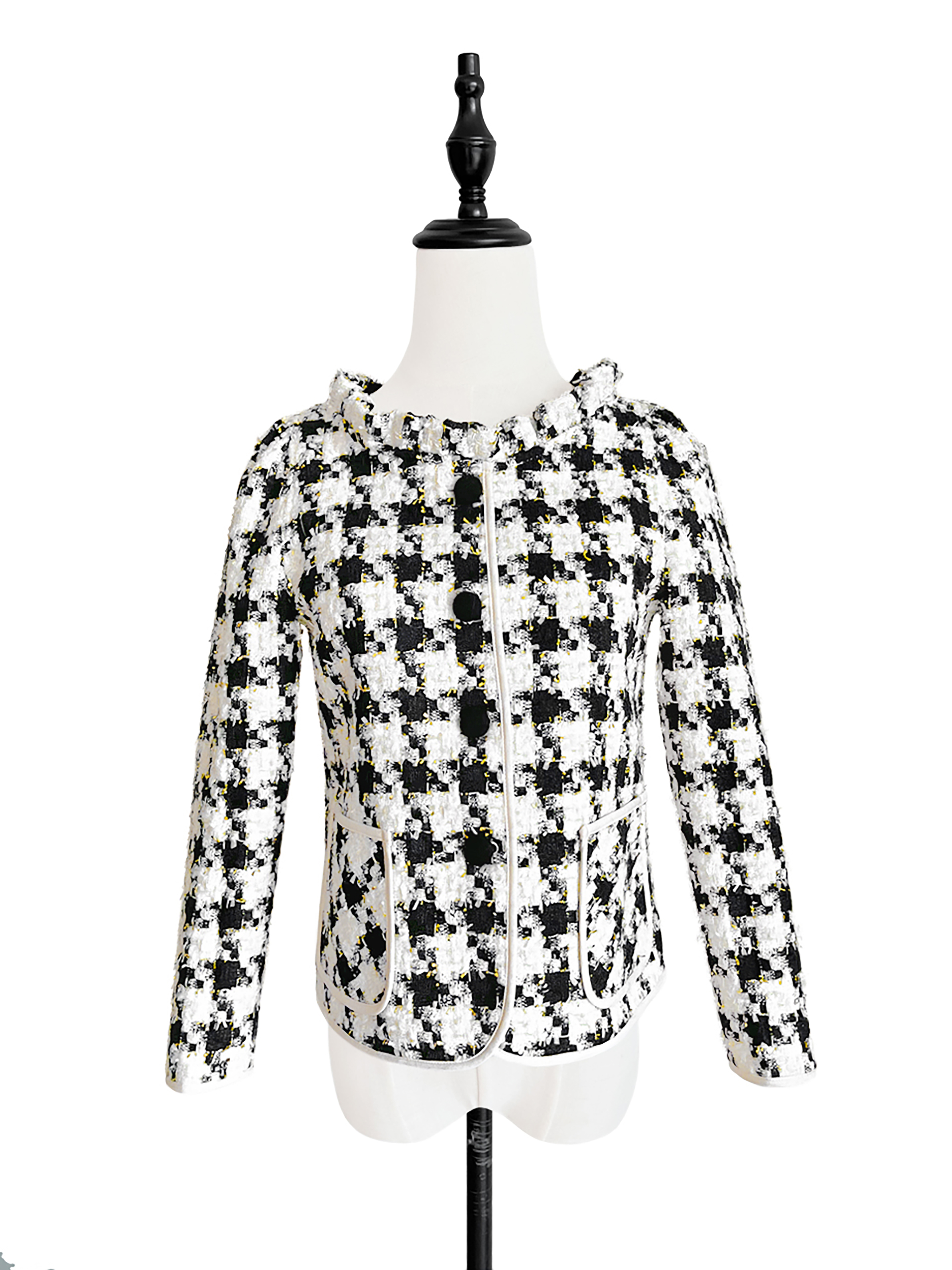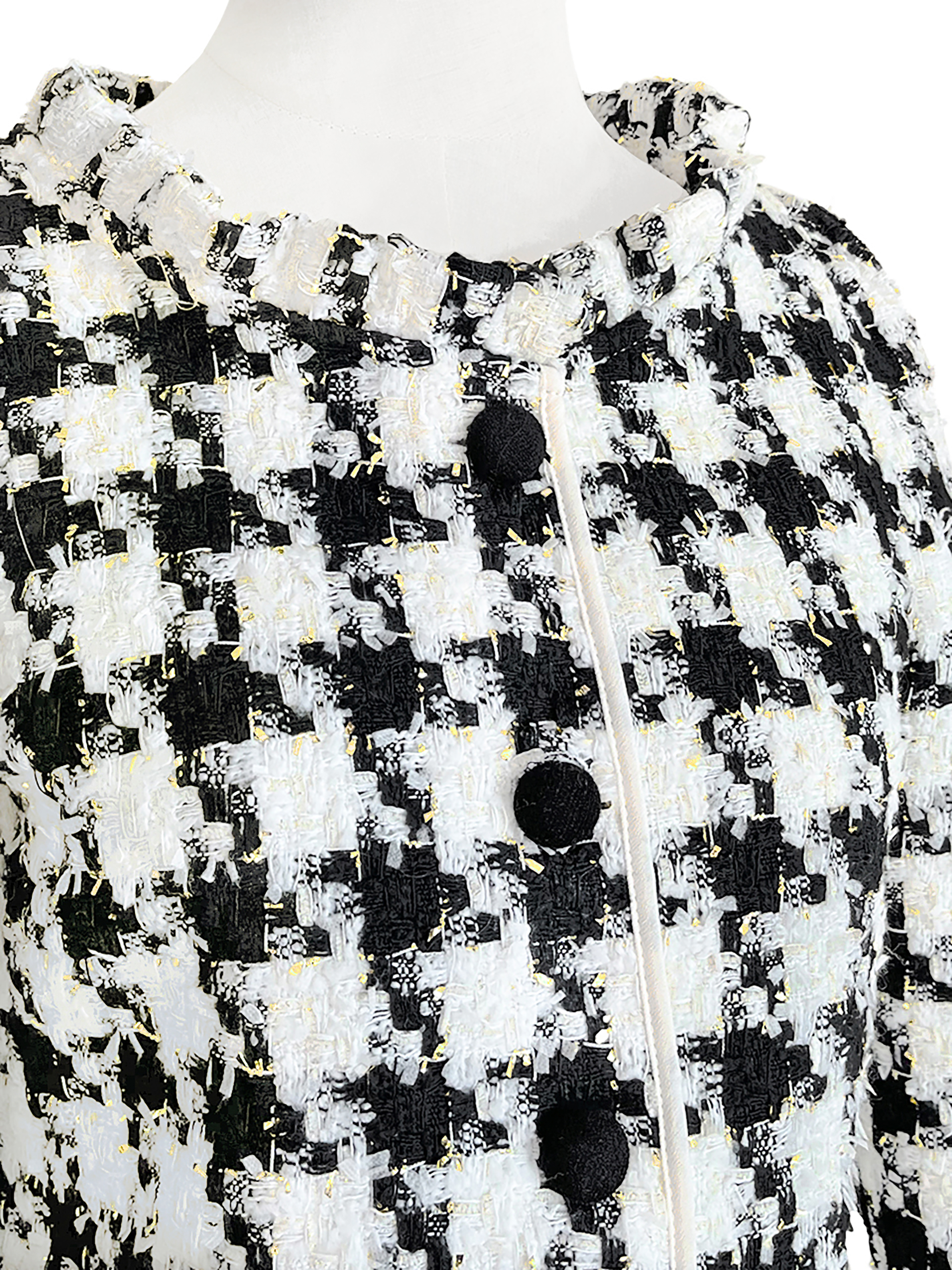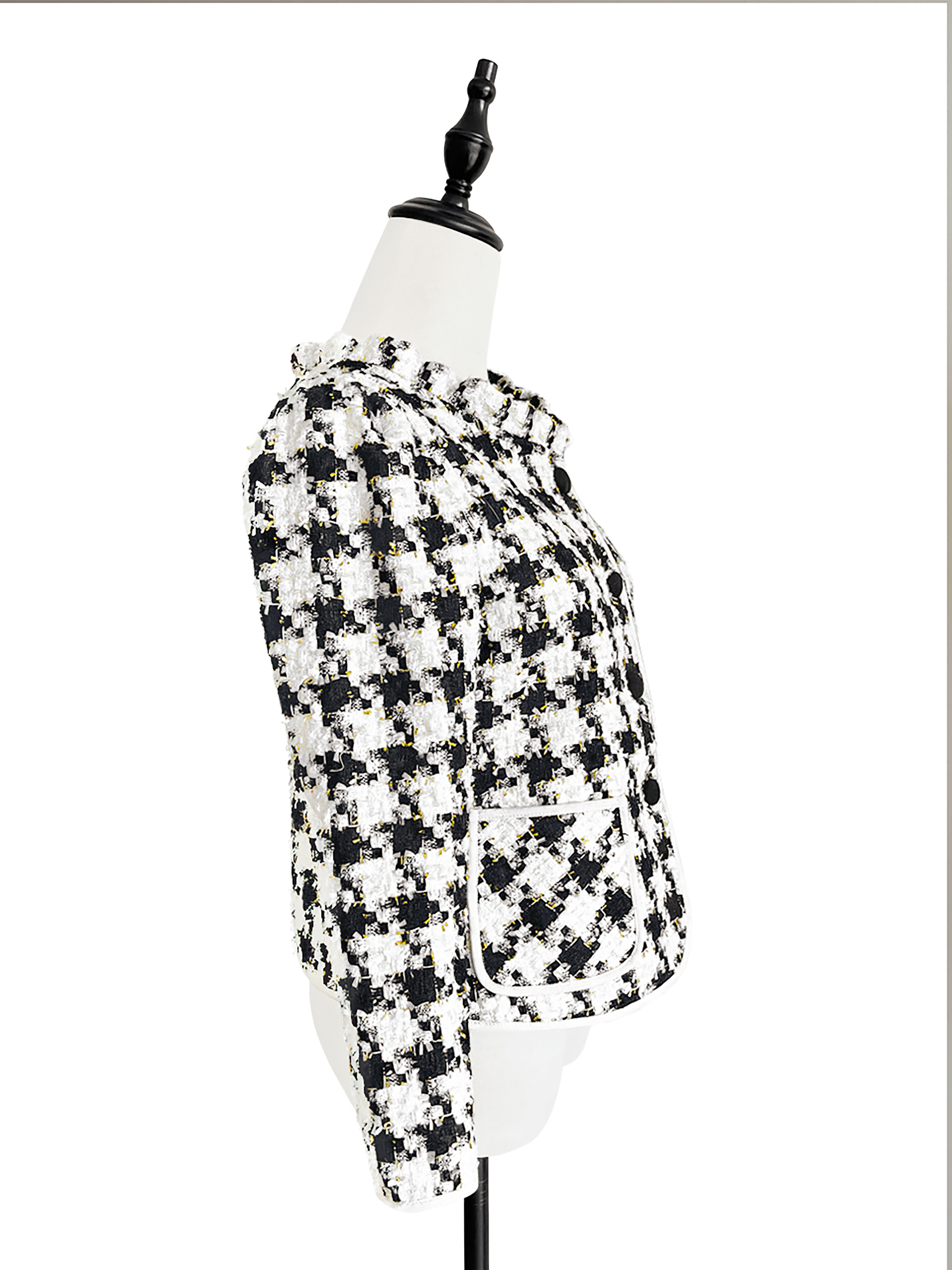 TYNVIE 小风琴领软呢短外套-黑白金线