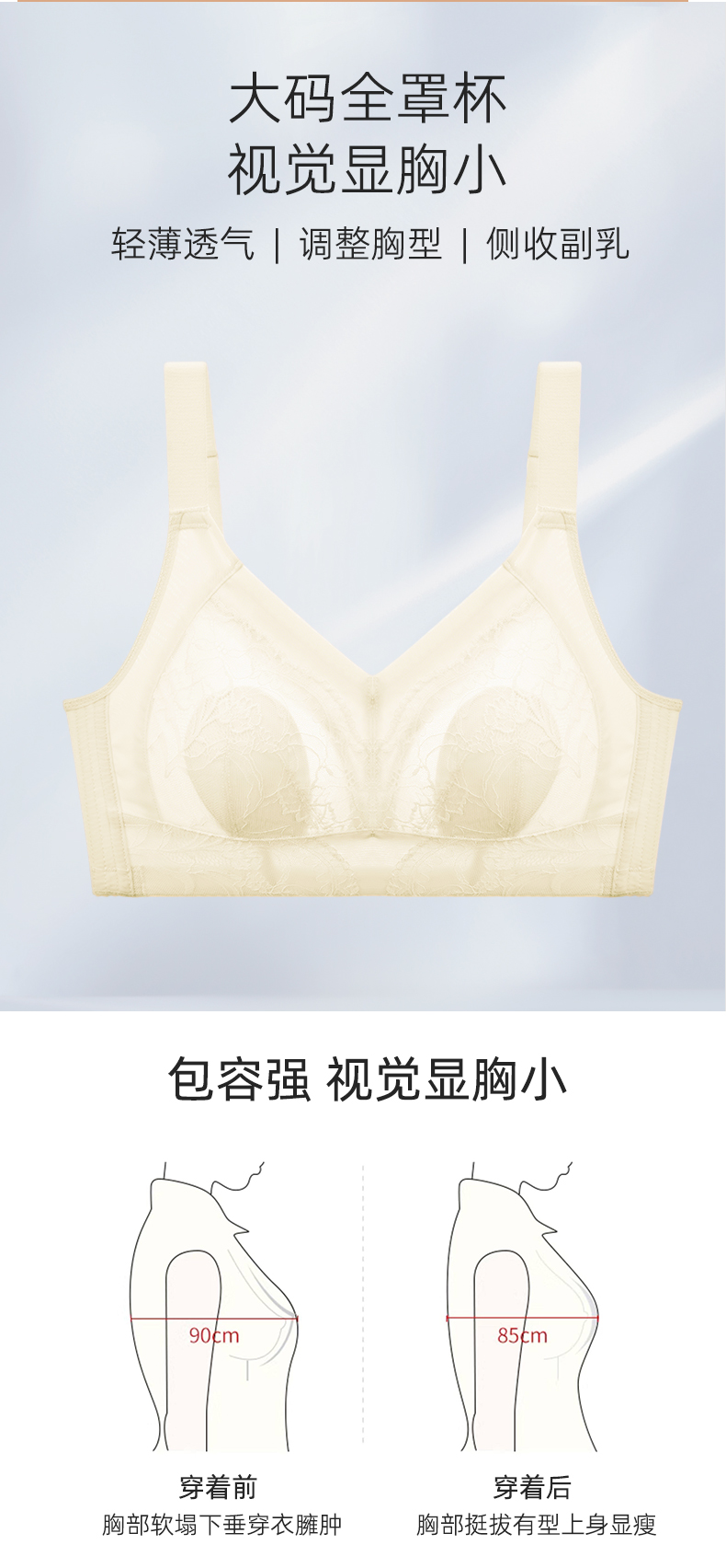 【断码秒杀】大胸显小 无钢圈 大胸大码全罩杯 薄防下垂 侧收副乳 恋恋风情调整型文胸