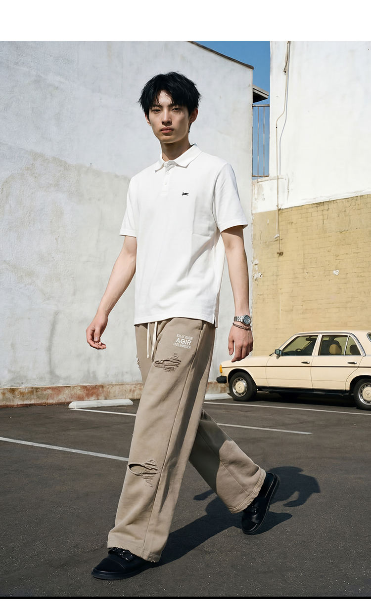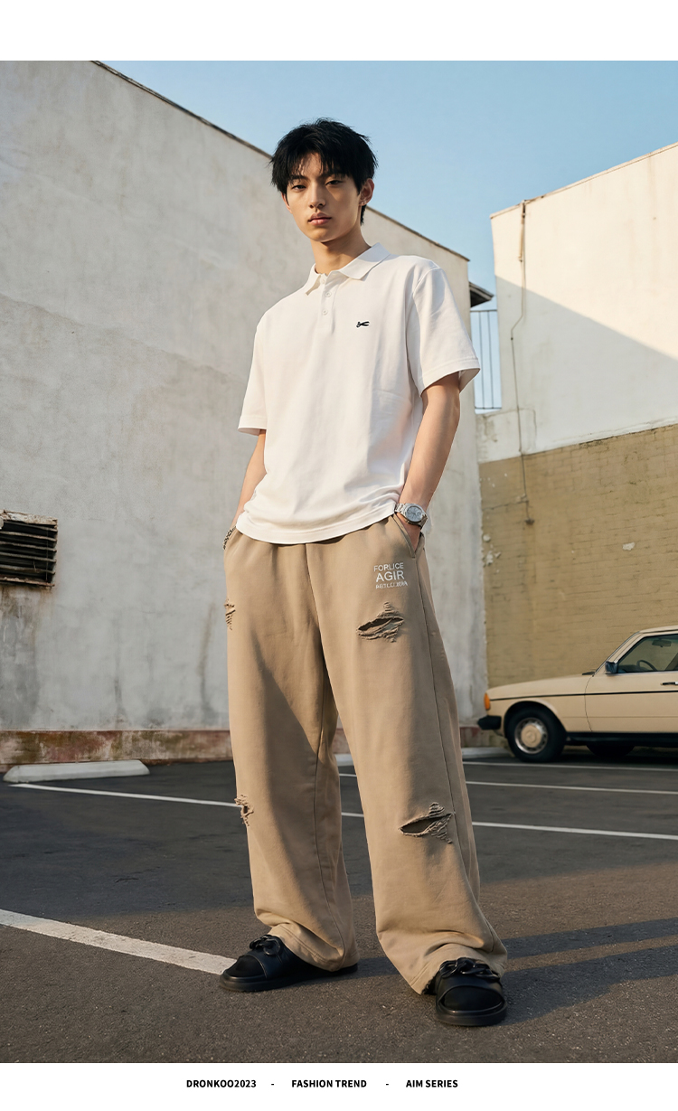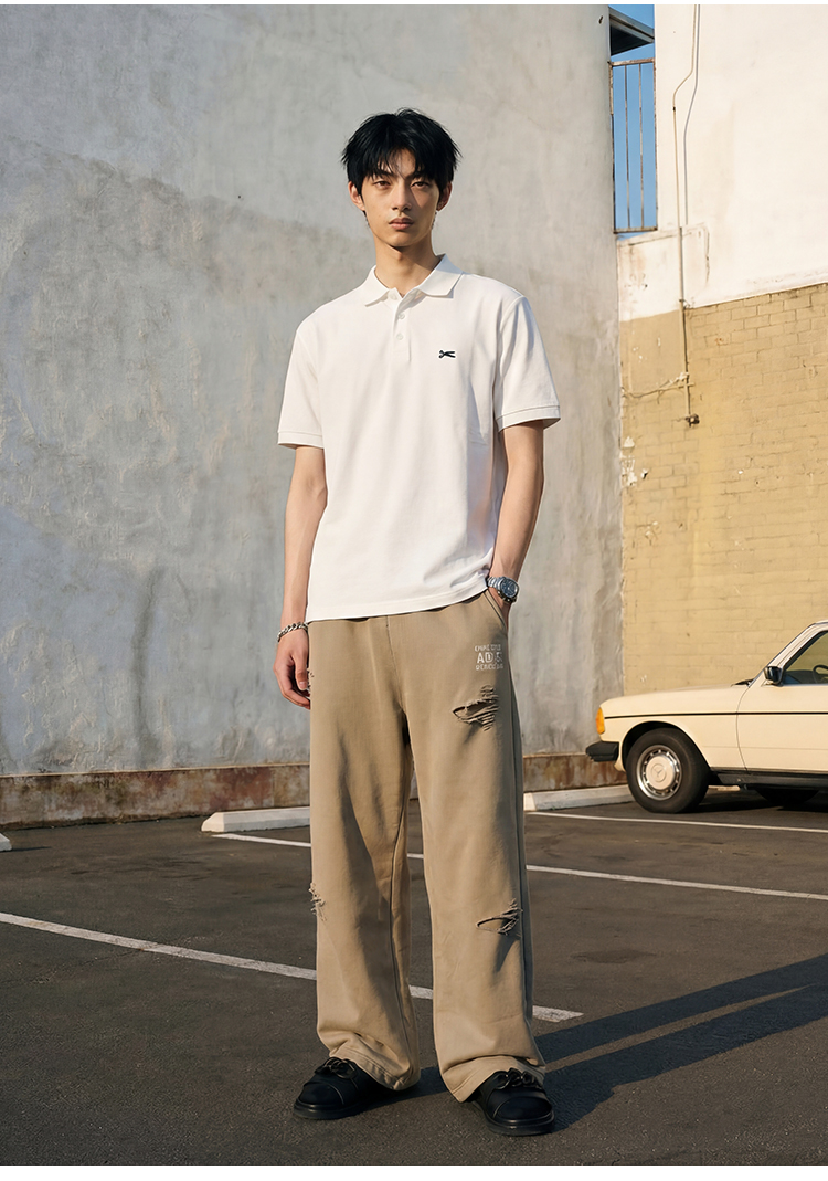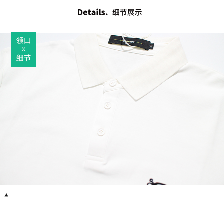 DRONKOO 2026 翻领左胸剪刀刺绣修身短袖T恤