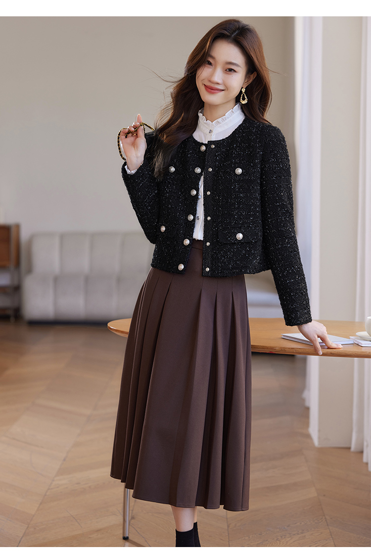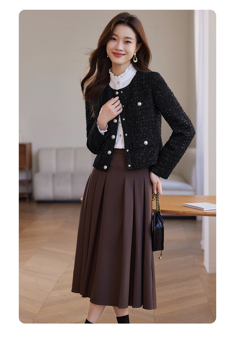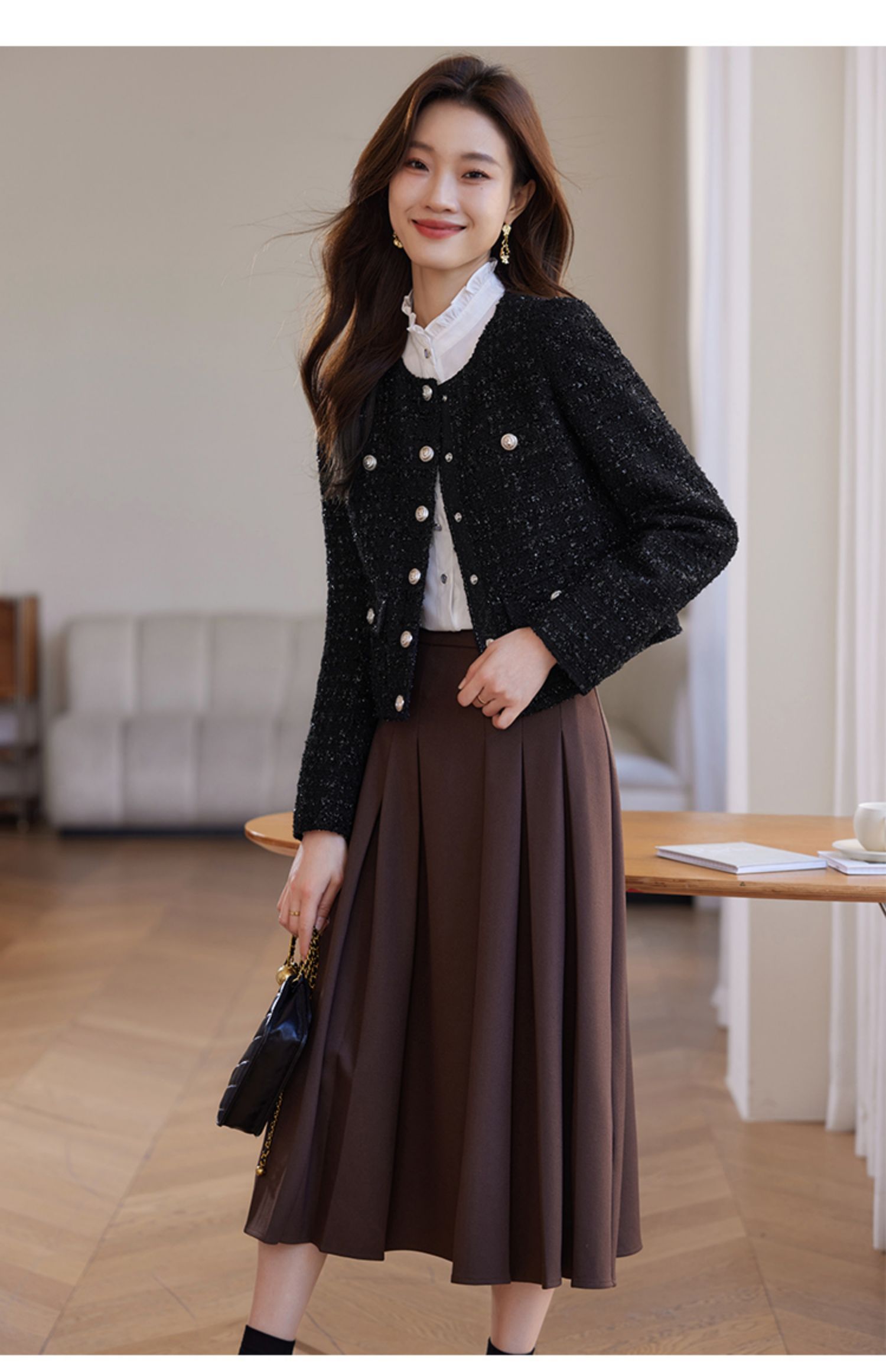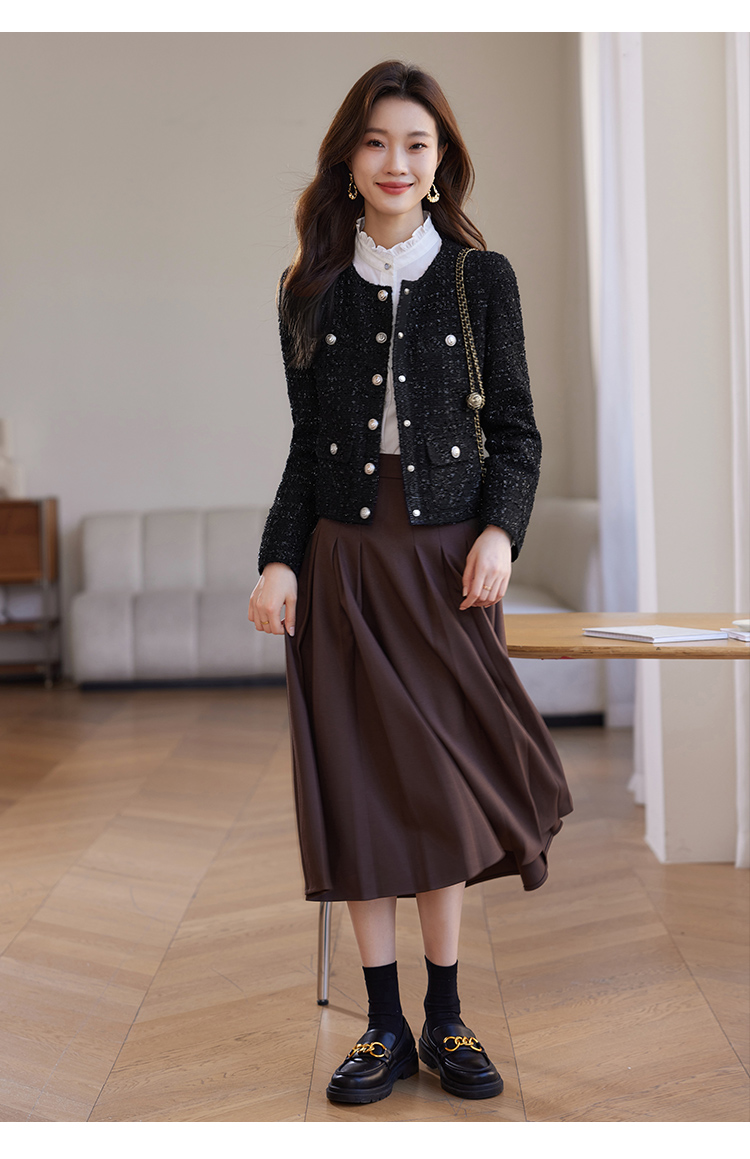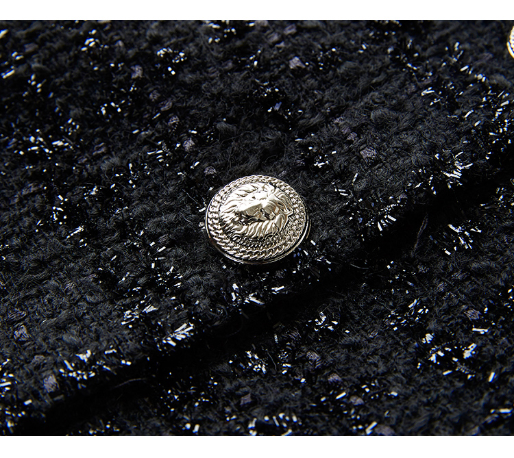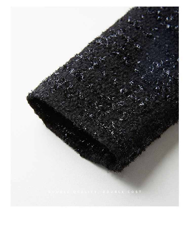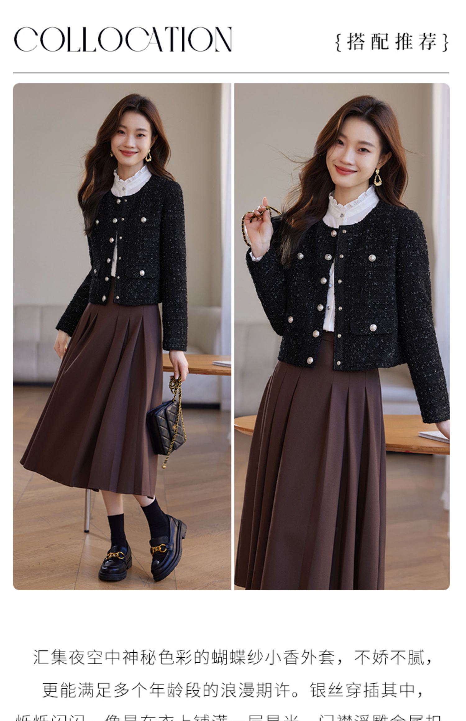 【年货节】熙世界小香风黑色外套女短款加厚夹棉名媛粗花呢上衣2025秋冬款