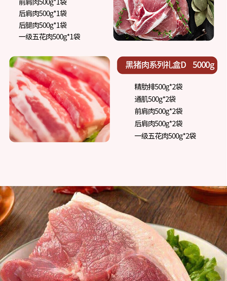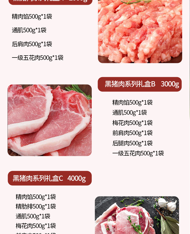 暖心驿站 黑猪肉礼盒 年货送礼送父母送亲友送朋友 梅花肉后腿肉前尖肉 C款 4000g