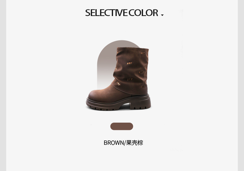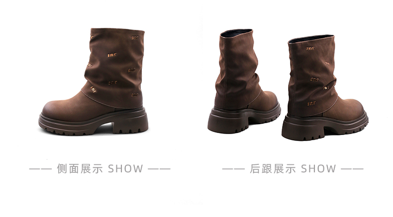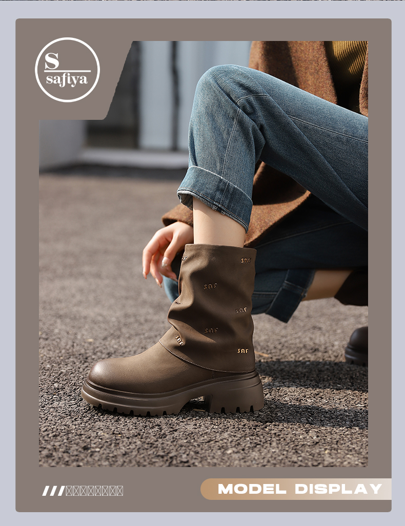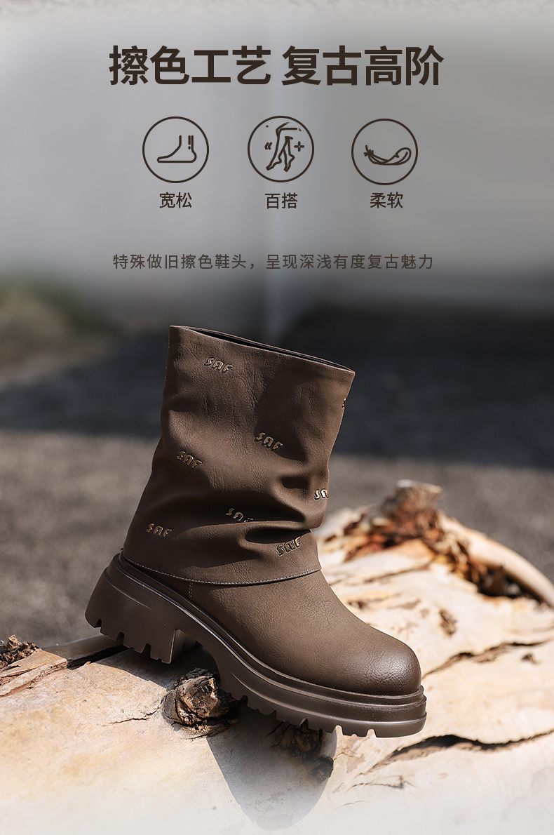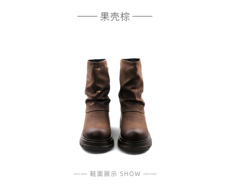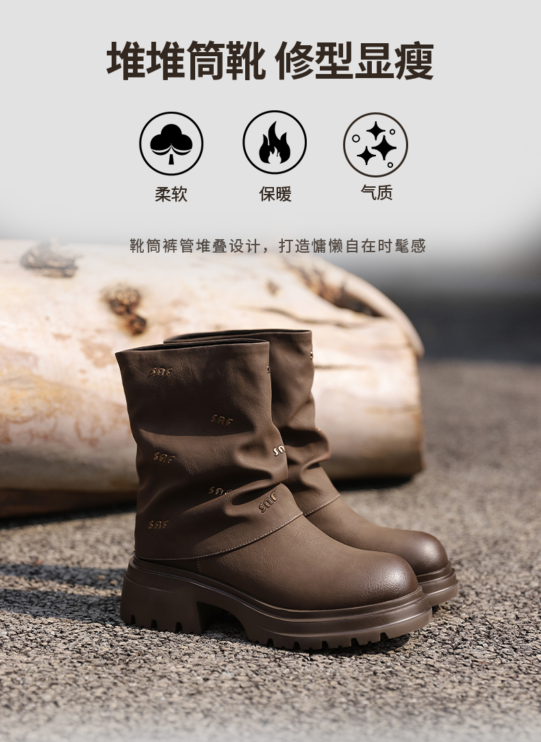 预售5天发|Safiya/索菲娅2024秋冬美拉德时尚厚底粗跟小个子百搭套筒堆堆裤管靴 SF44116404/SF44118404