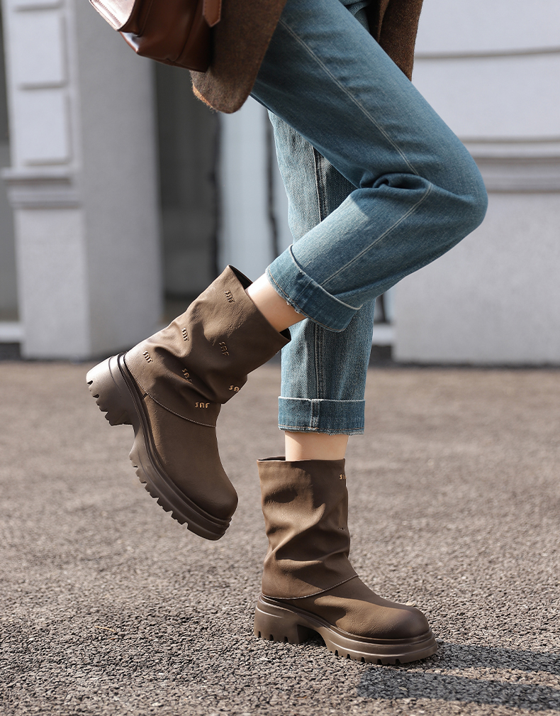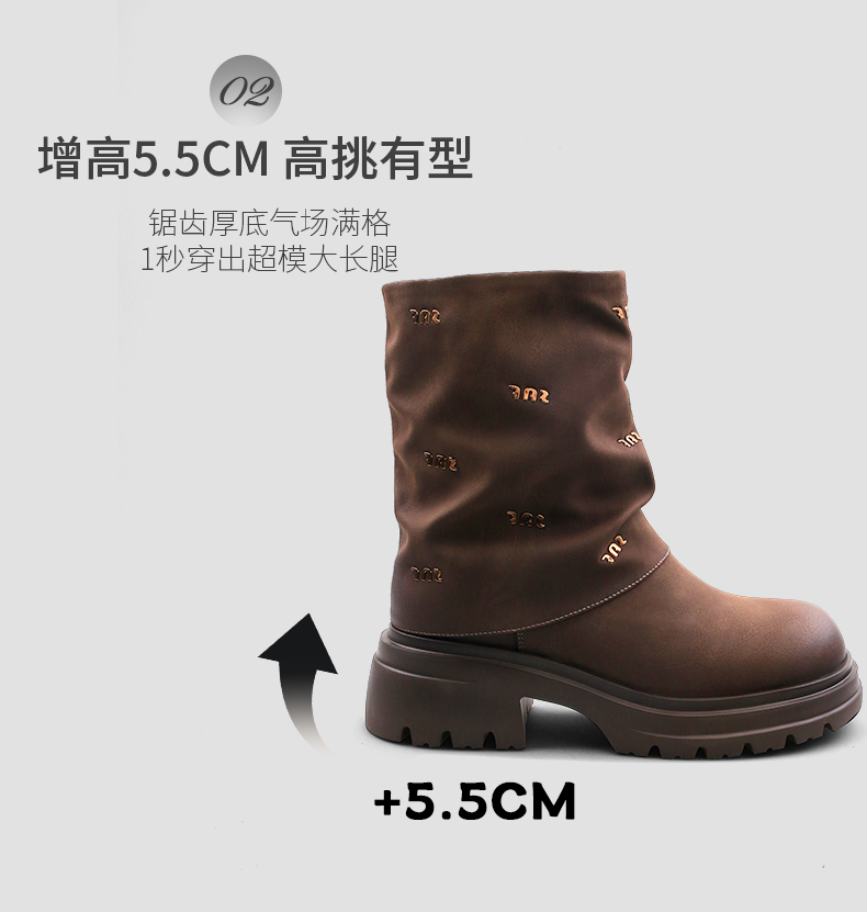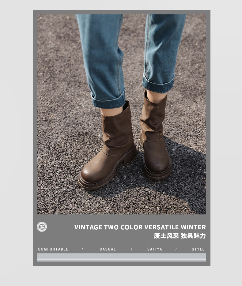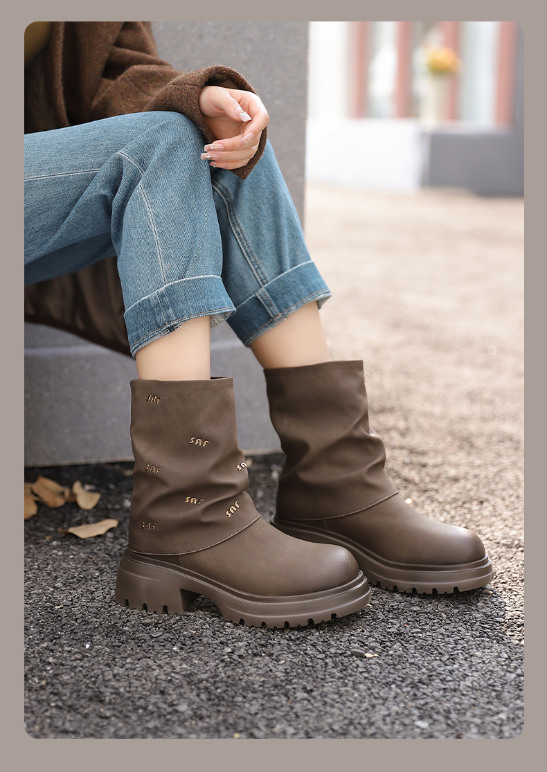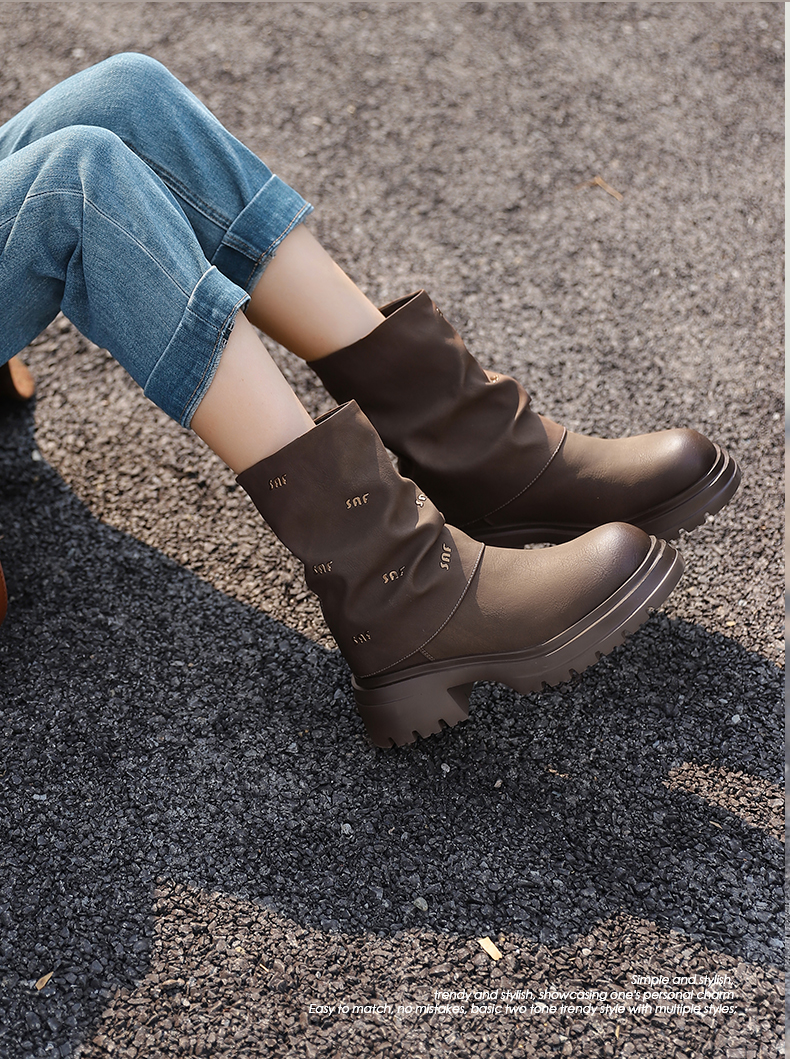 预售5天发|Safiya/索菲娅2024秋冬美拉德时尚厚底粗跟小个子百搭套筒堆堆裤管靴 SF44116404/SF44118404