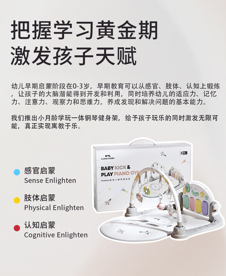 【品牌直供】lunastory婴儿健身架脚踏钢琴新生儿婴儿礼物0-3-6月宝宝益智玩具