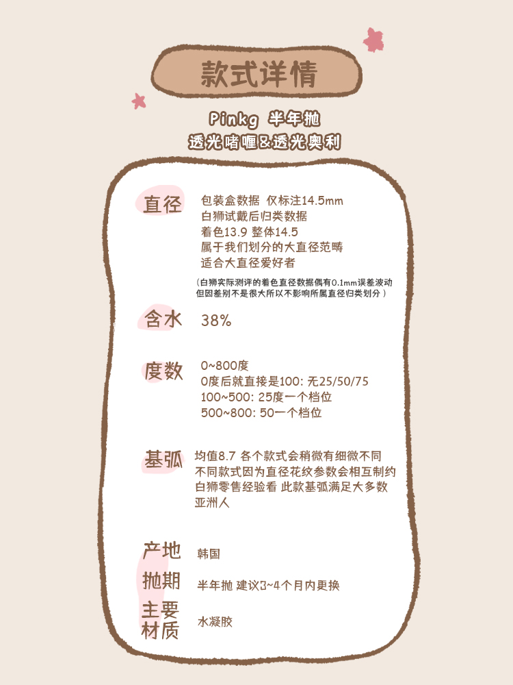 PINKG旗下 · 透光啫喱&透光奥利|14.5mm白狮参考着色大直径 半年抛美瞳 2片