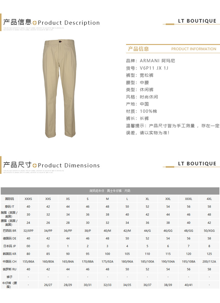 ARMANI JEANS 阿玛尼 牛仔 男士休闲裤 浅咖 V6P11 JX 1J