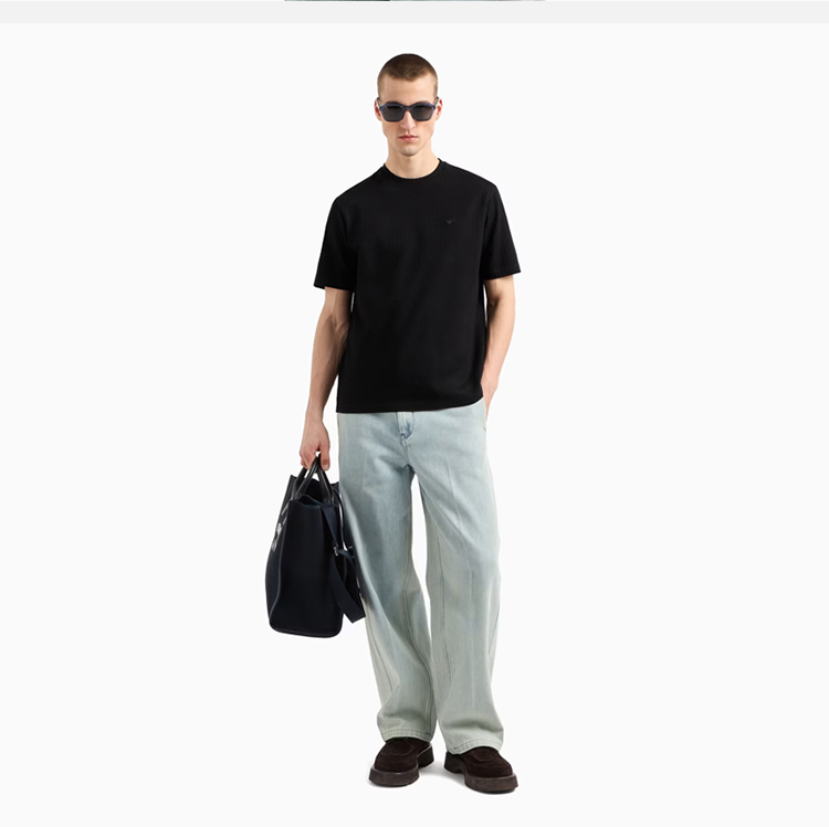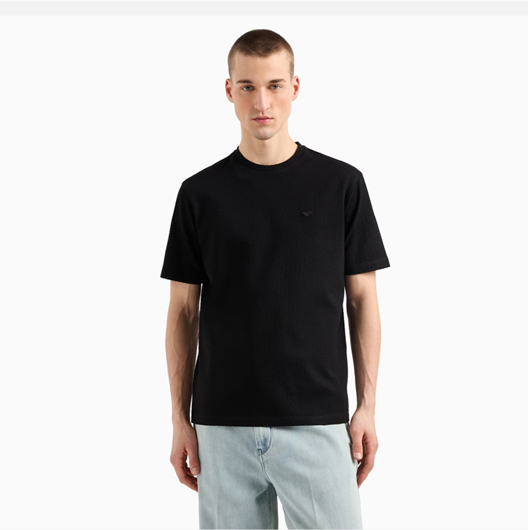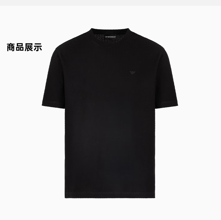EMPORIO ARMANI 阿玛尼 男士小鹰徽标压花棉质圆领短袖T恤 黑色 EM001728 AF14874 FC039