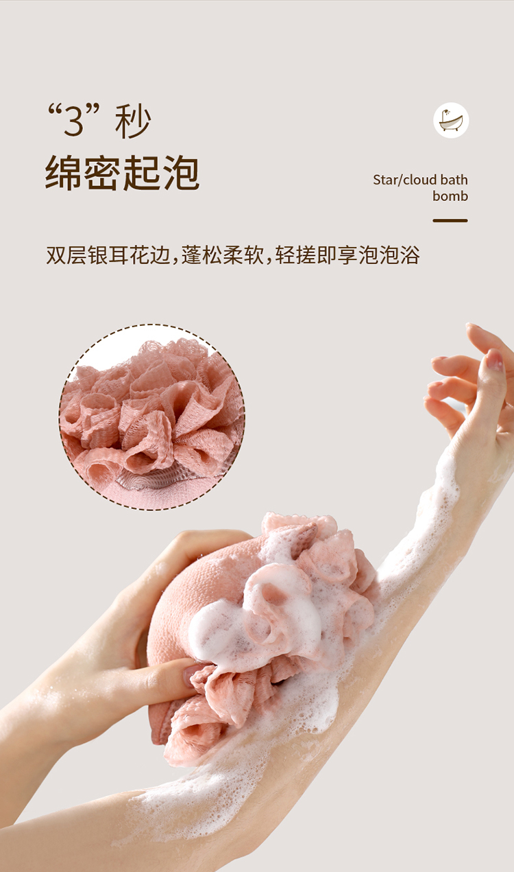 FaSoLa沐浴球女可爱浴花大号搓澡巾两用高档起泡不散超柔软洗澡球