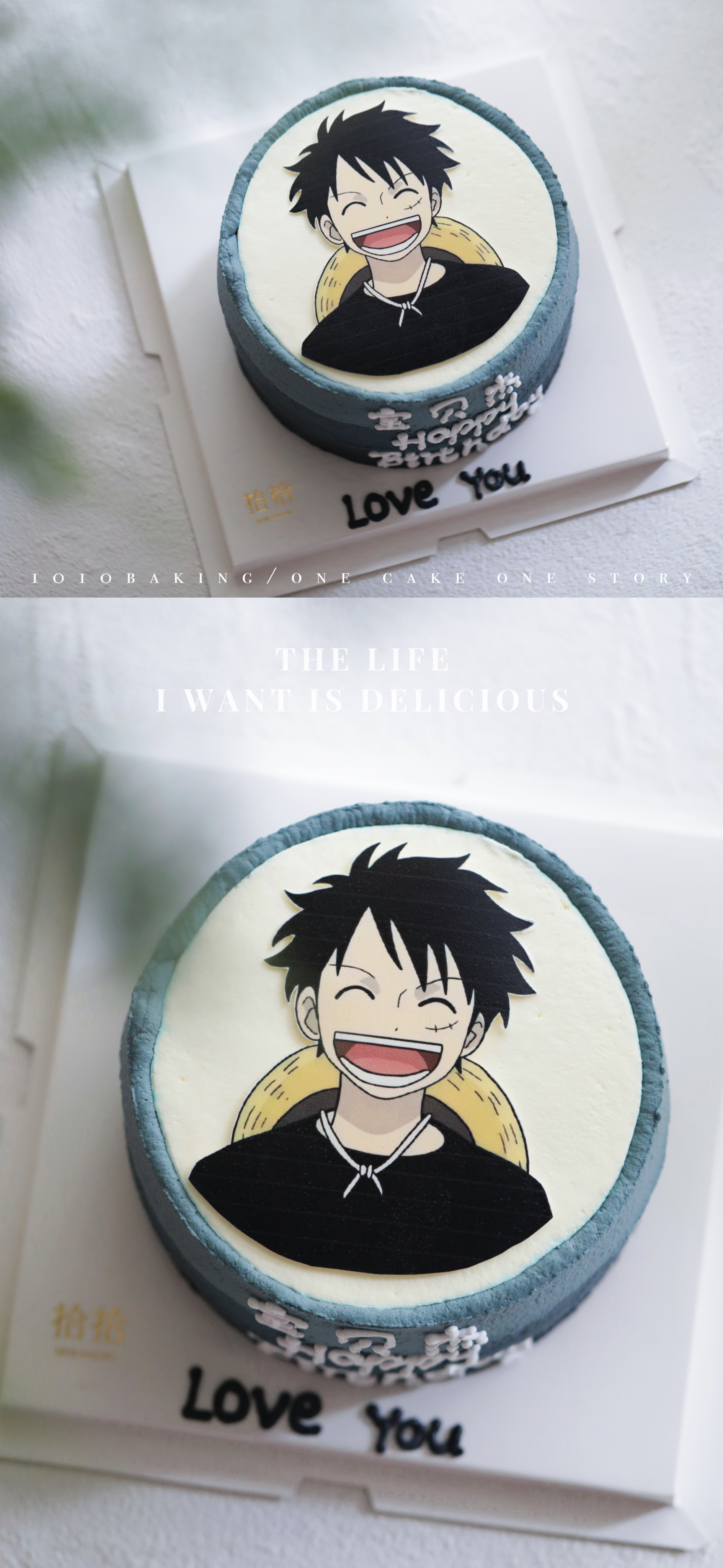 「海贼王·路飞」巧克力糯米糖纸·订制照片·100%动物奶油(附图6寸·提24小时预订)