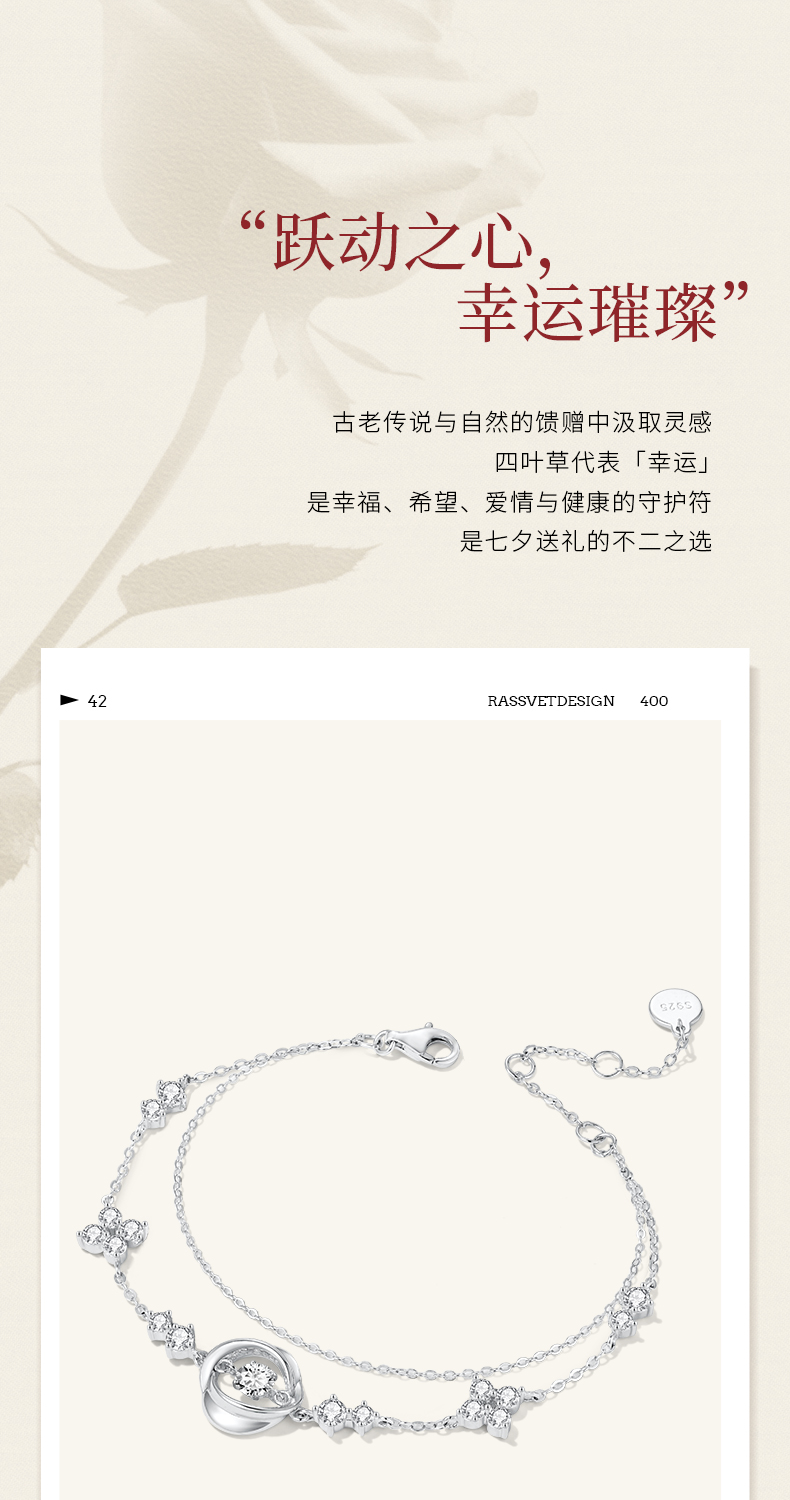 ZEGL设计师925银四叶草小幸运手链女轻奢小众精致手饰品七夕礼物