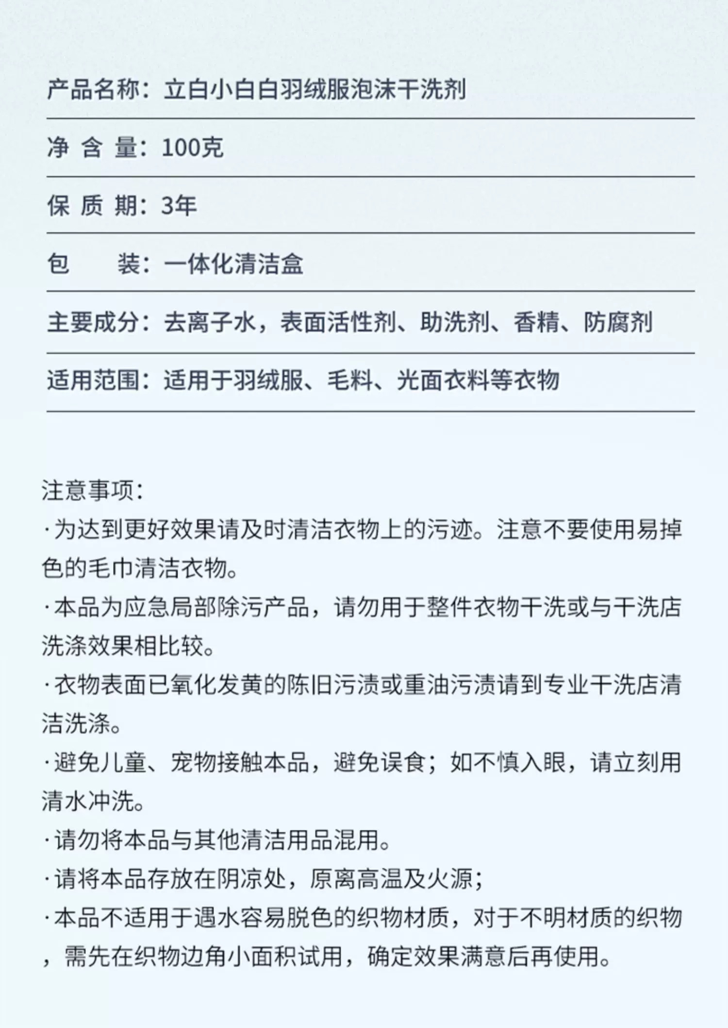 立白小白白羽绒服干洗剂100g(自带刷头)