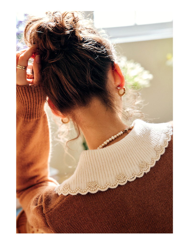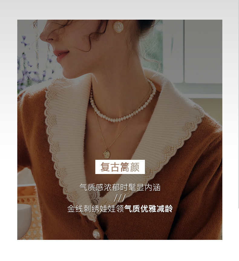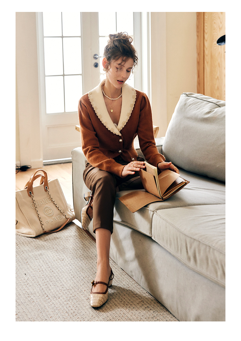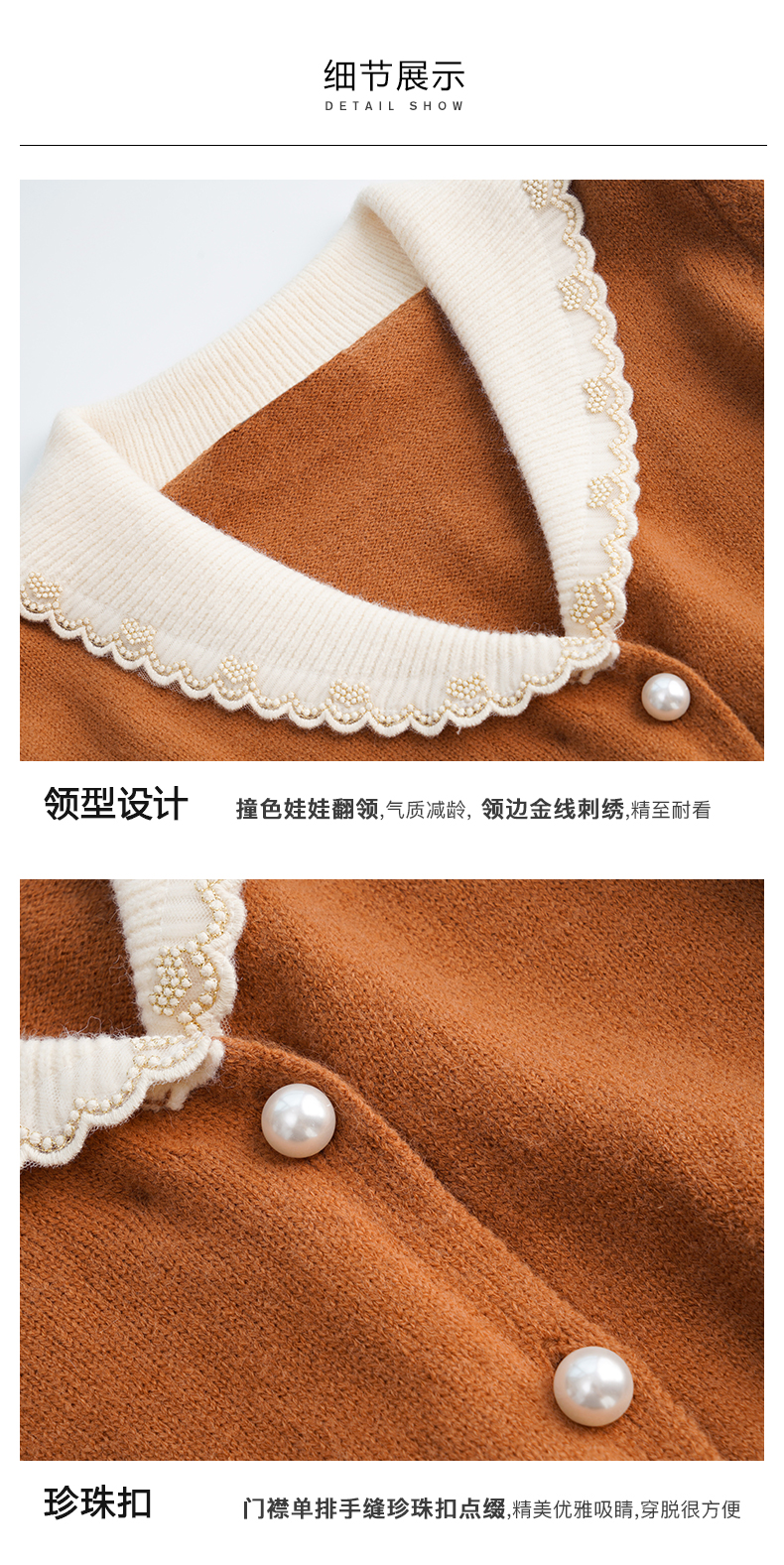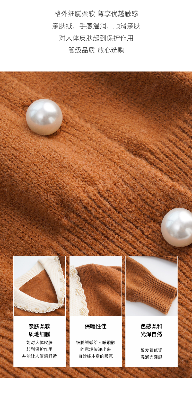 OLrain欧芮儿法式焦糖色针织开衫女秋季2022年新款修身翻领上衣