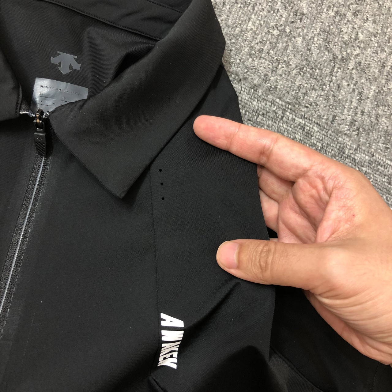 胸口是原装压胶拉链开襟,舒适便捷,轻松切换运动及职场精英风范。