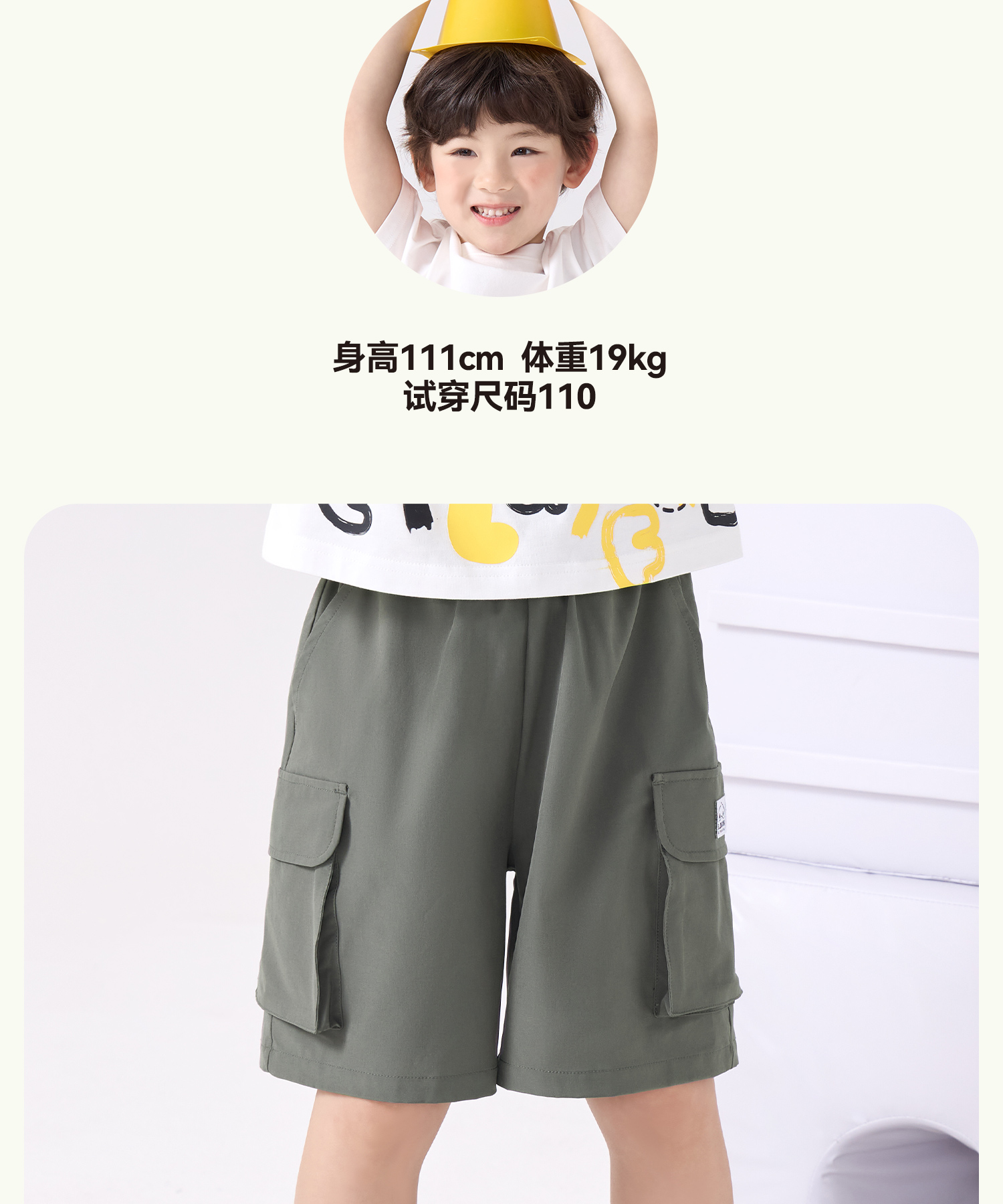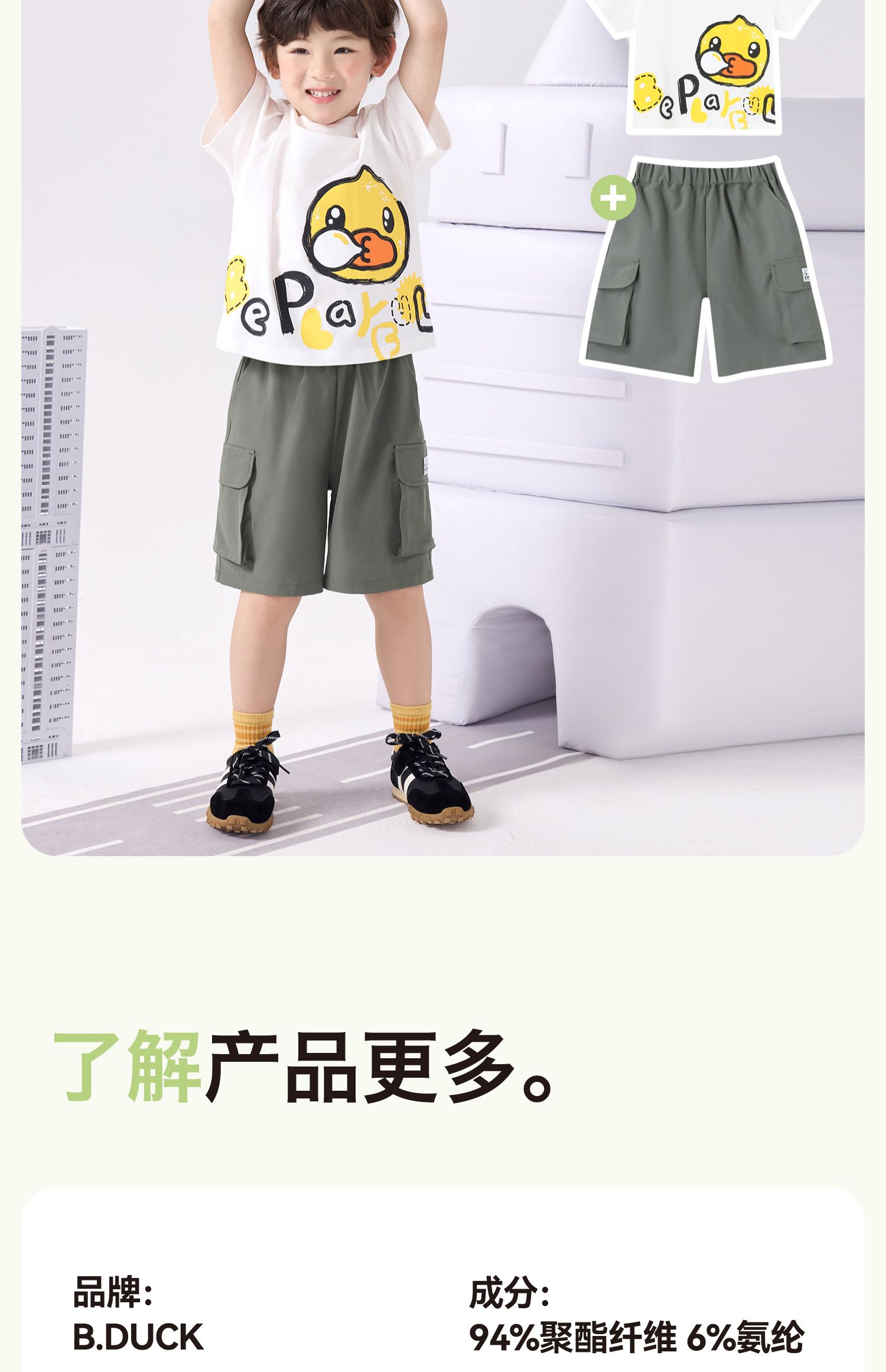 bduck小黄鸭童装夏季男童短裤儿童夏季薄款裤子工装裤五分裤105-150 BF2652011