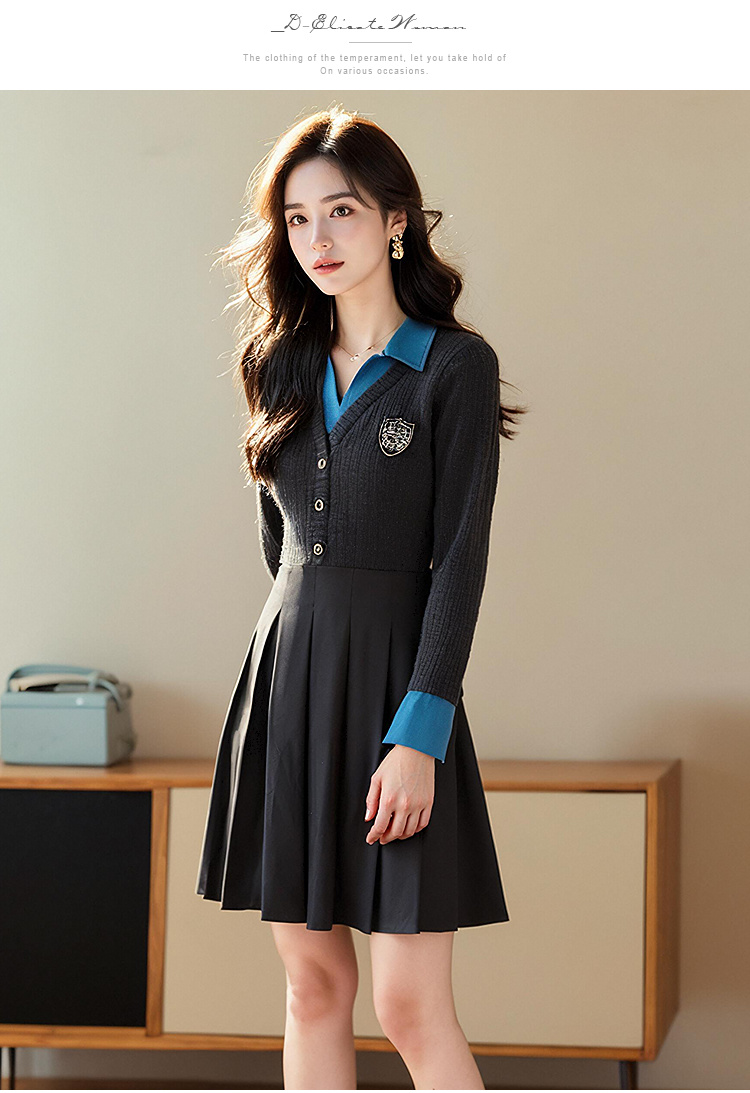 奢姿大码女装2026夏季翻领设计气质连衣裙假口袋百褶时尚轻奢裙子9962860019