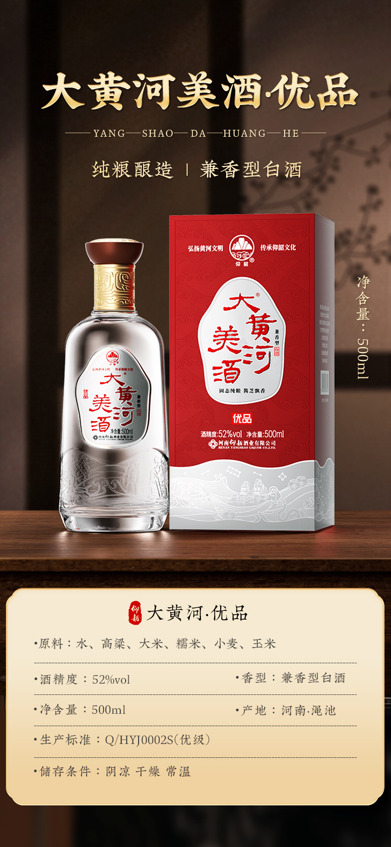 【秒杀】仰韶 大黄河美酒 优品 52度500ml 兼香型 固态纯粮 酱芝飘香 整箱六瓶