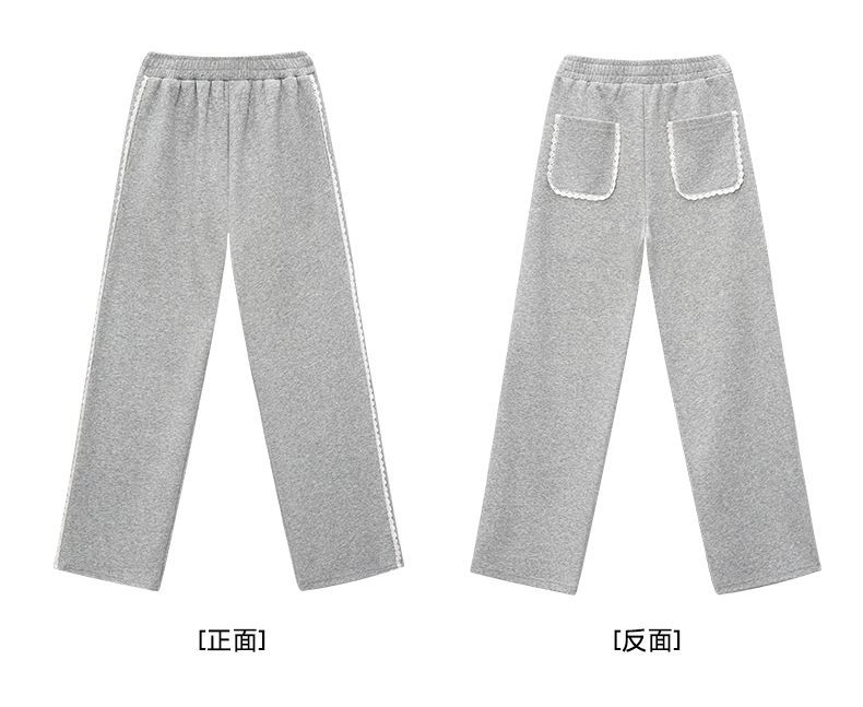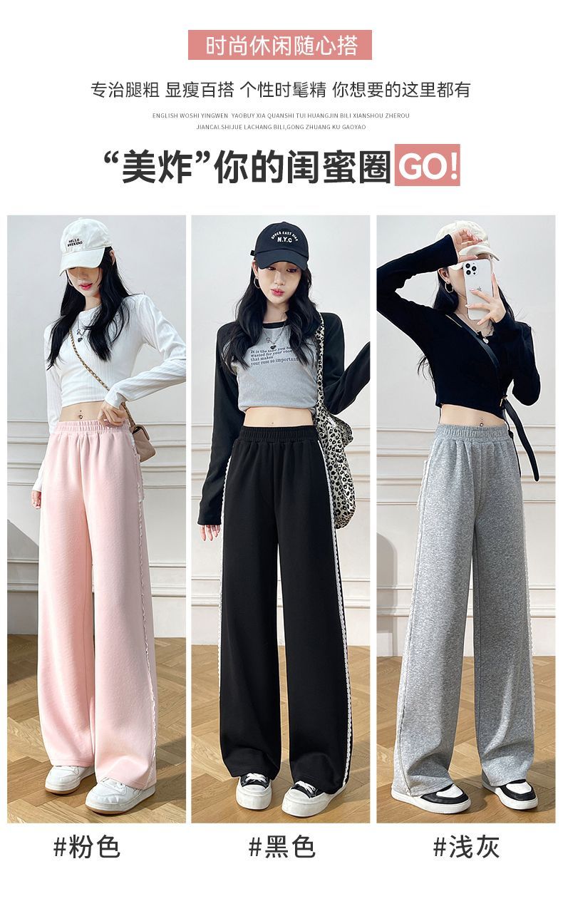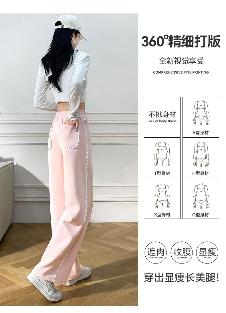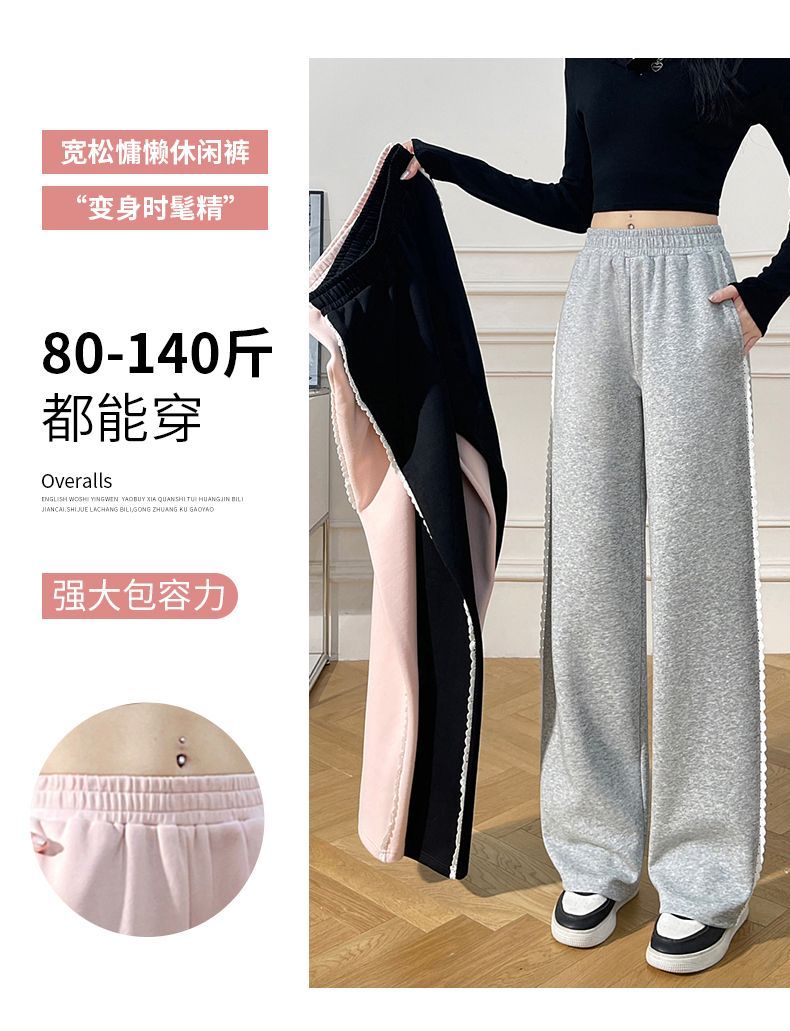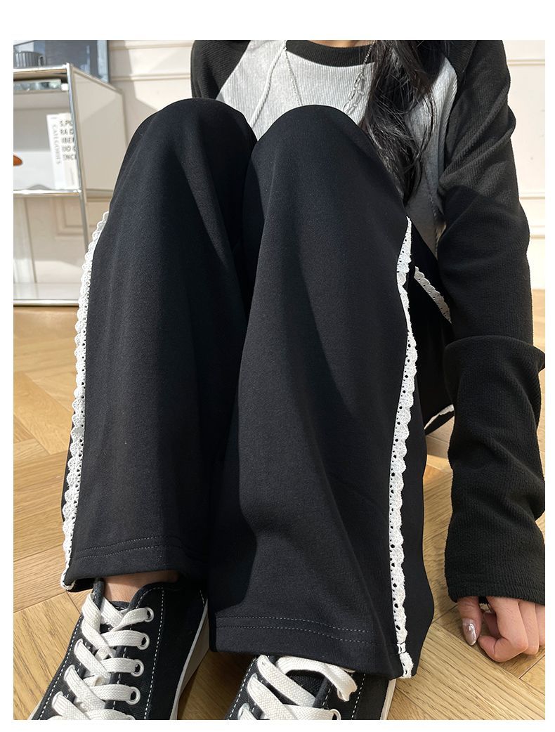 回力蕾丝边运动裤女2025新款春秋款阔腿裤休闲小个子垂感直筒卫裤