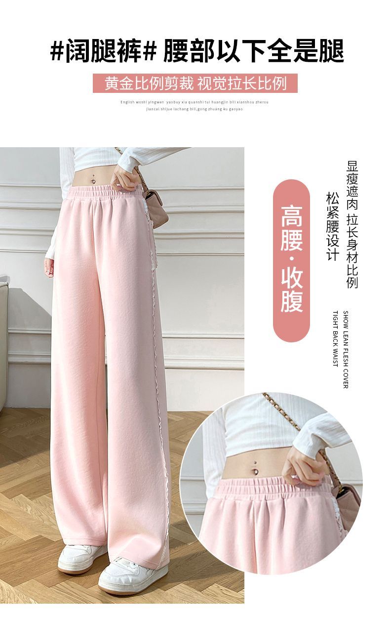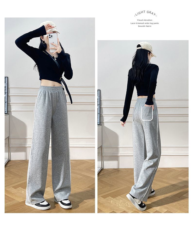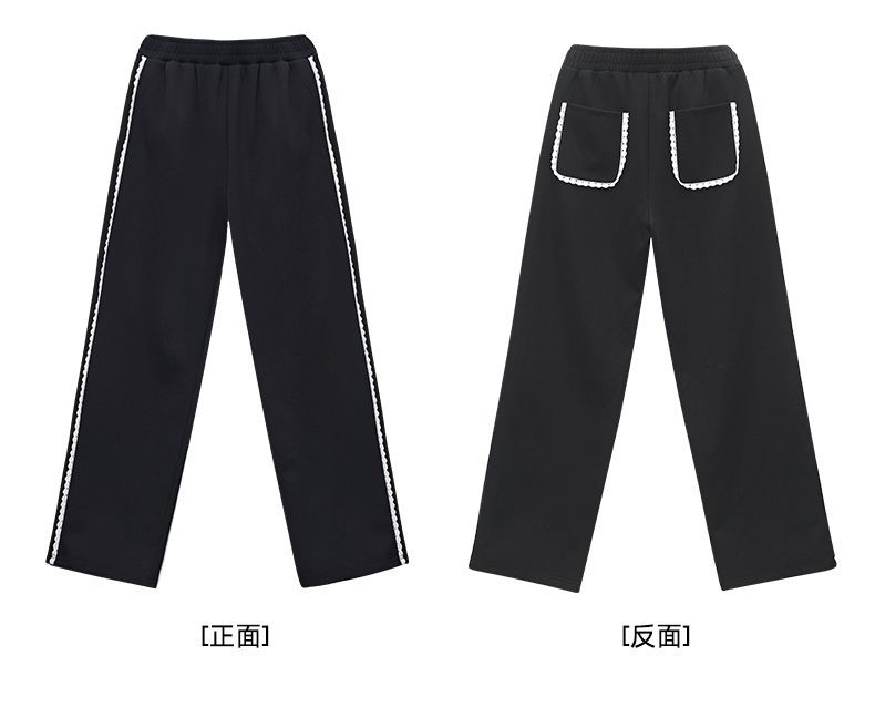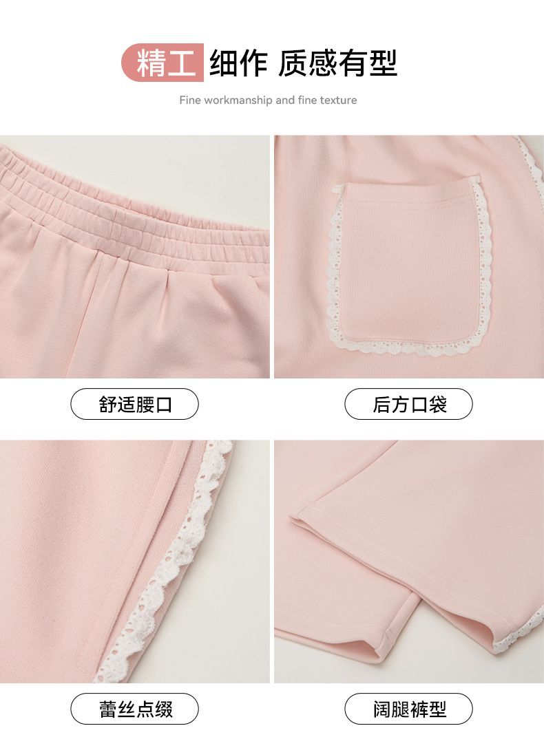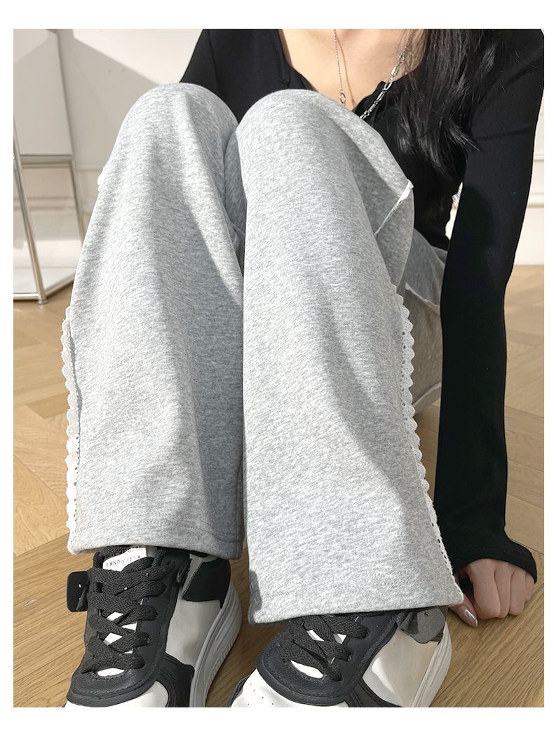 回力蕾丝边运动裤女2025新款春秋款阔腿裤休闲小个子垂感直筒卫裤