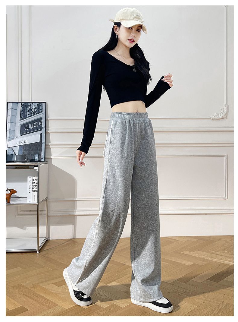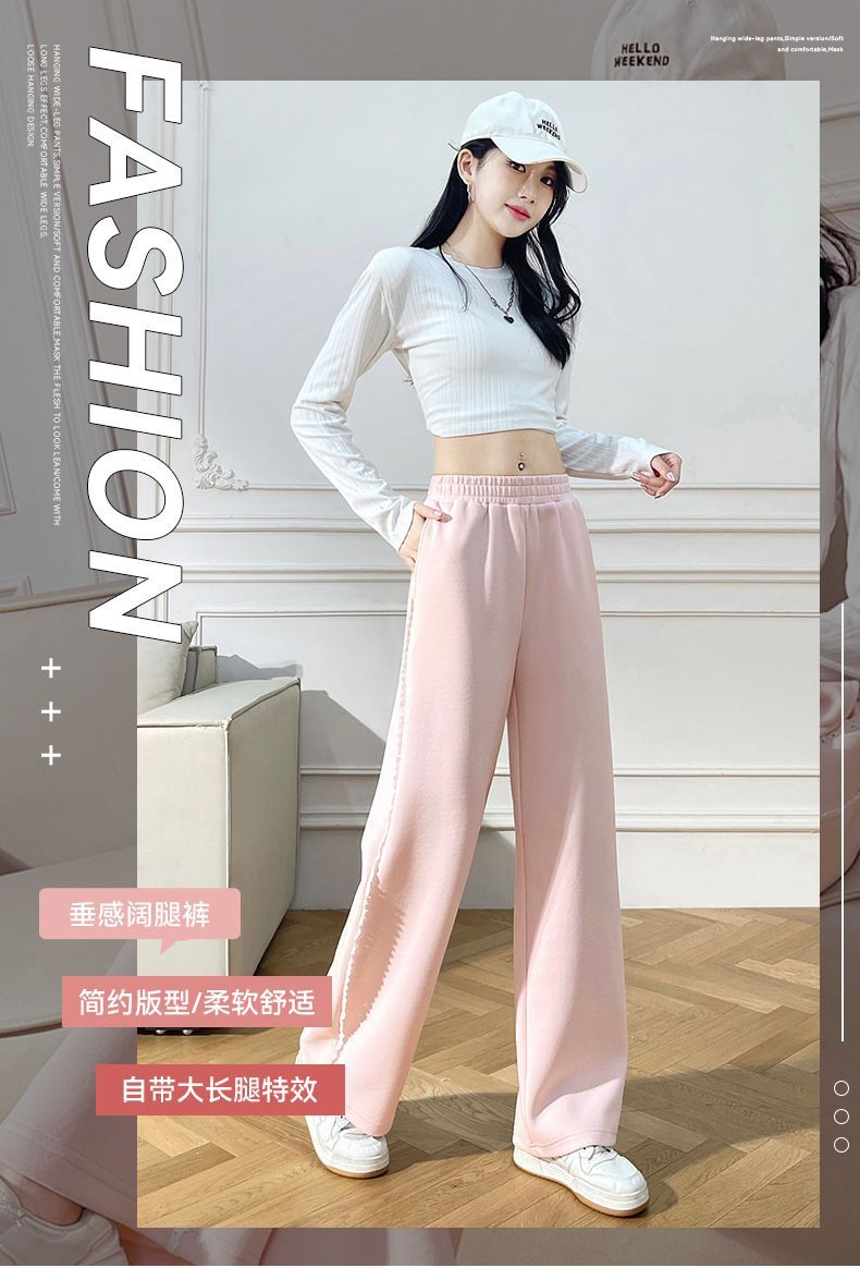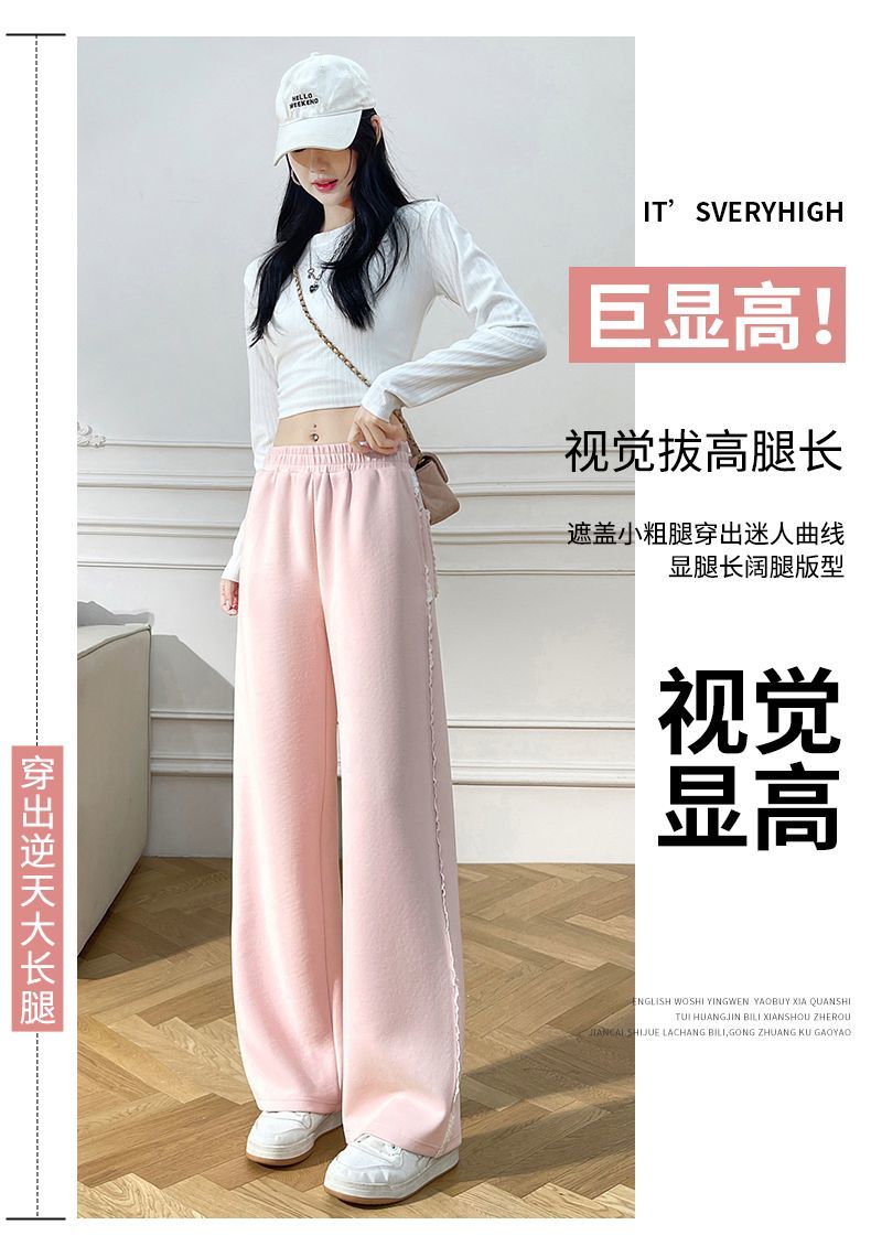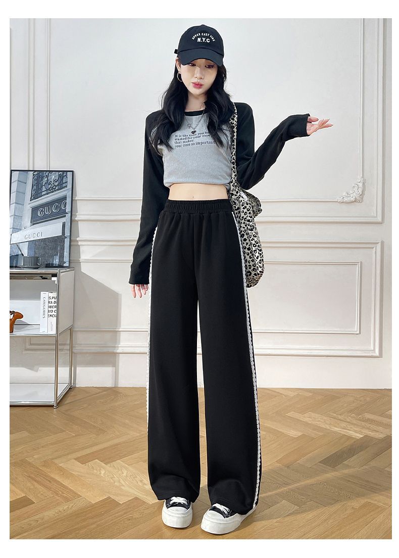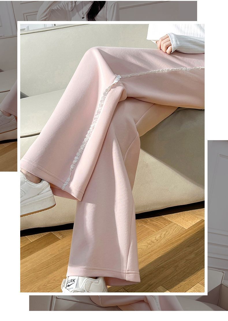 回力蕾丝边运动裤女2025新款春秋款阔腿裤休闲小个子垂感直筒卫裤