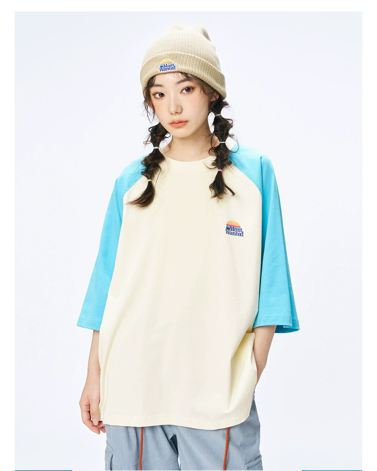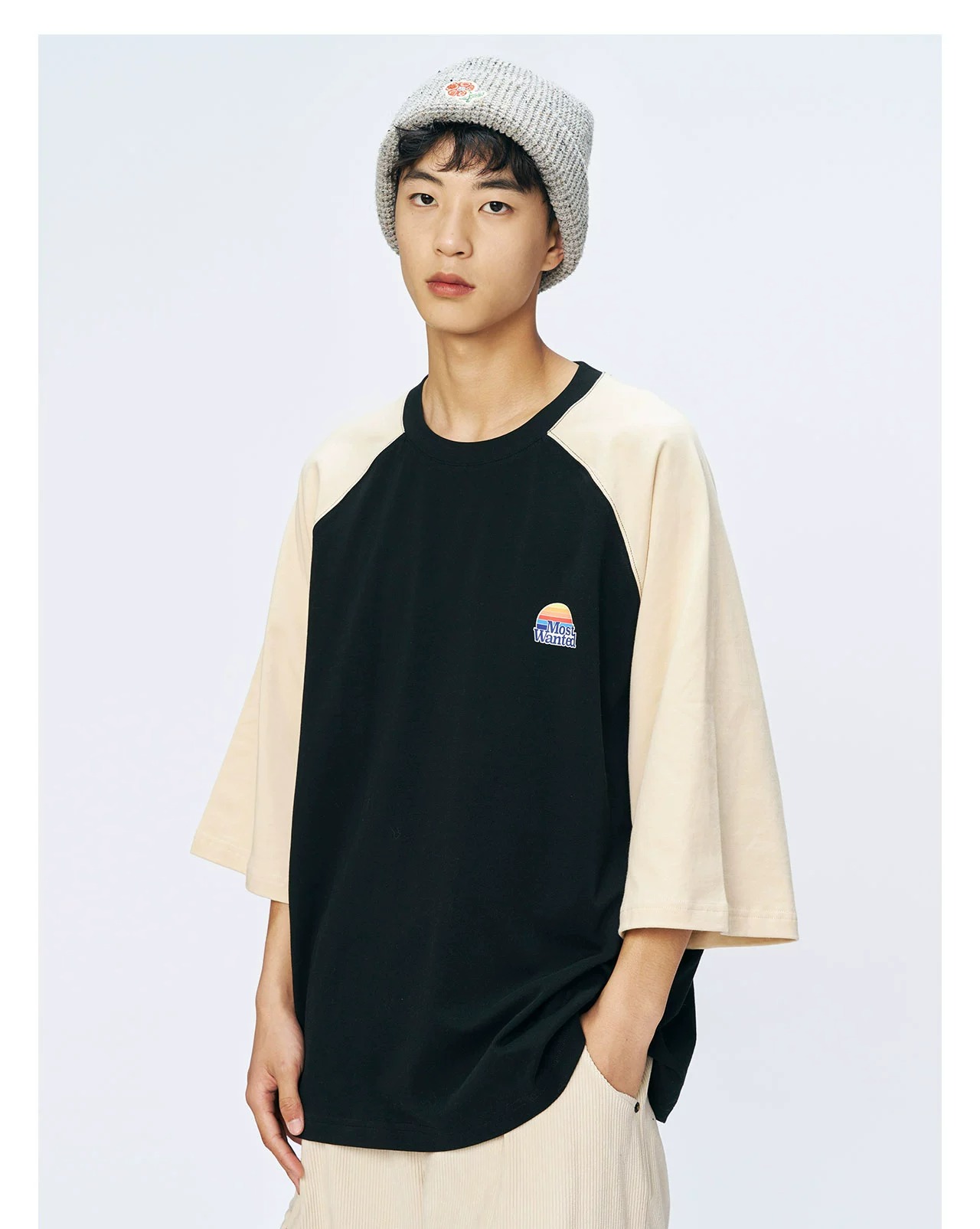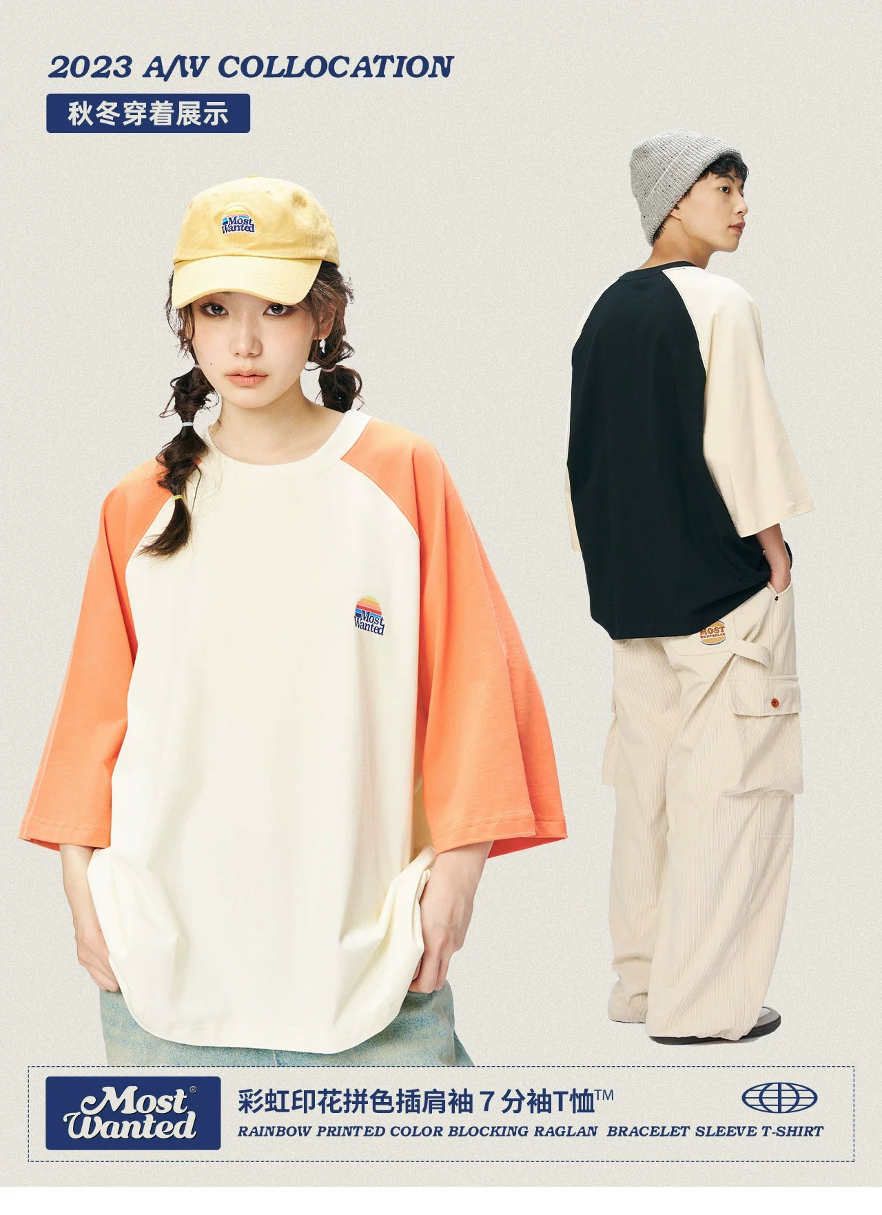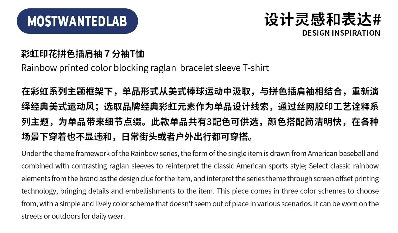 mostwantedlab彩虹/MWL-2334002/彩虹印花拼色插肩袖T恤