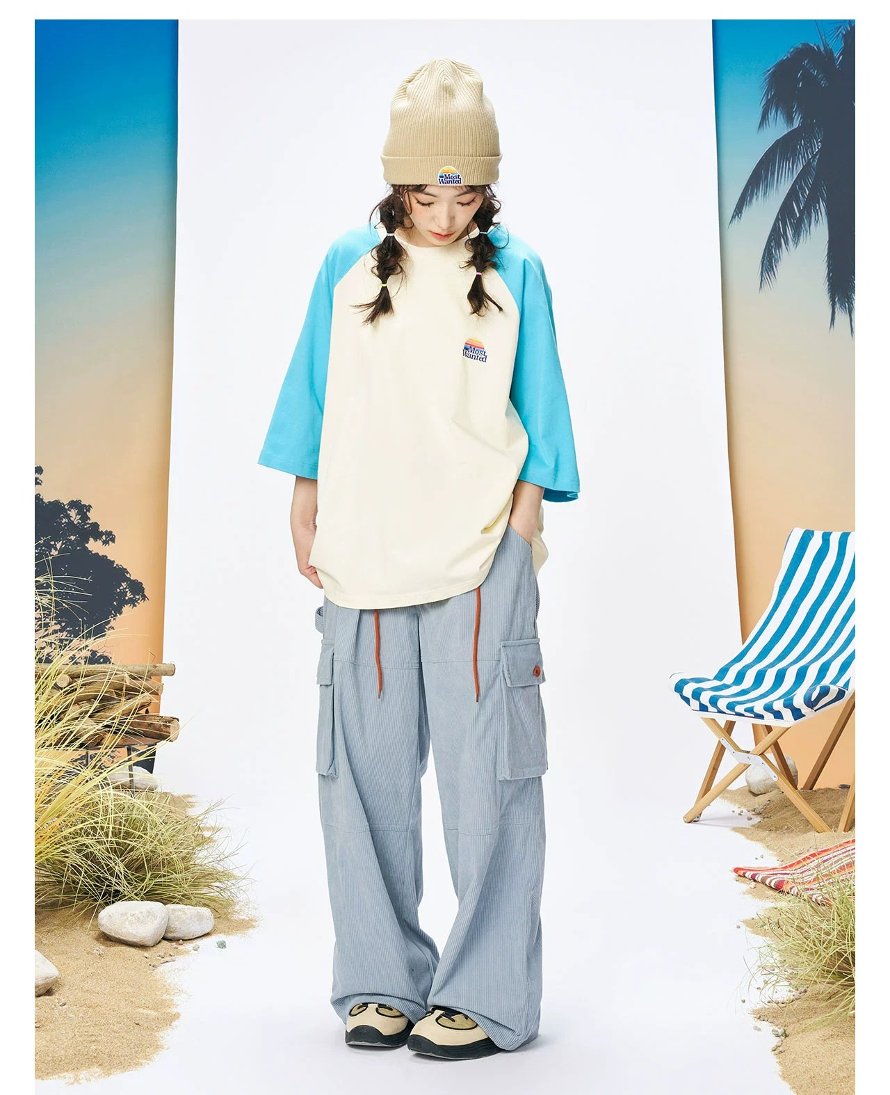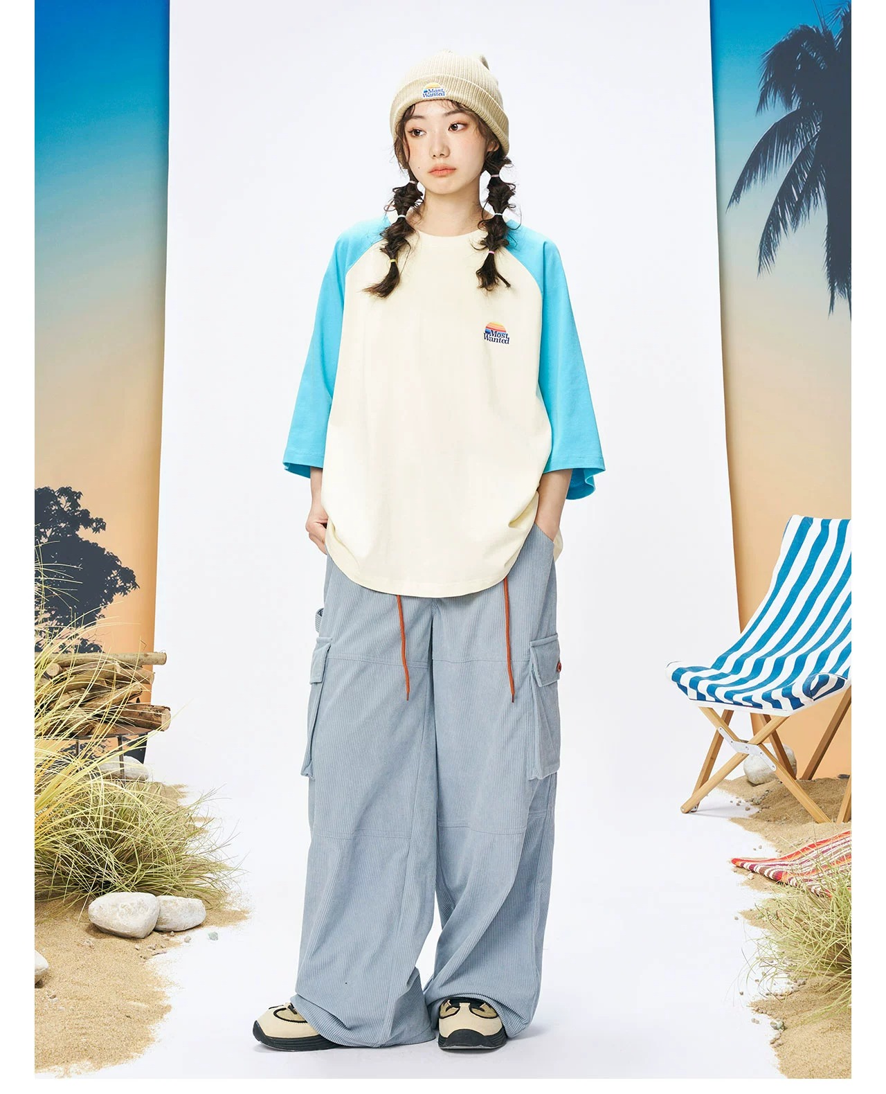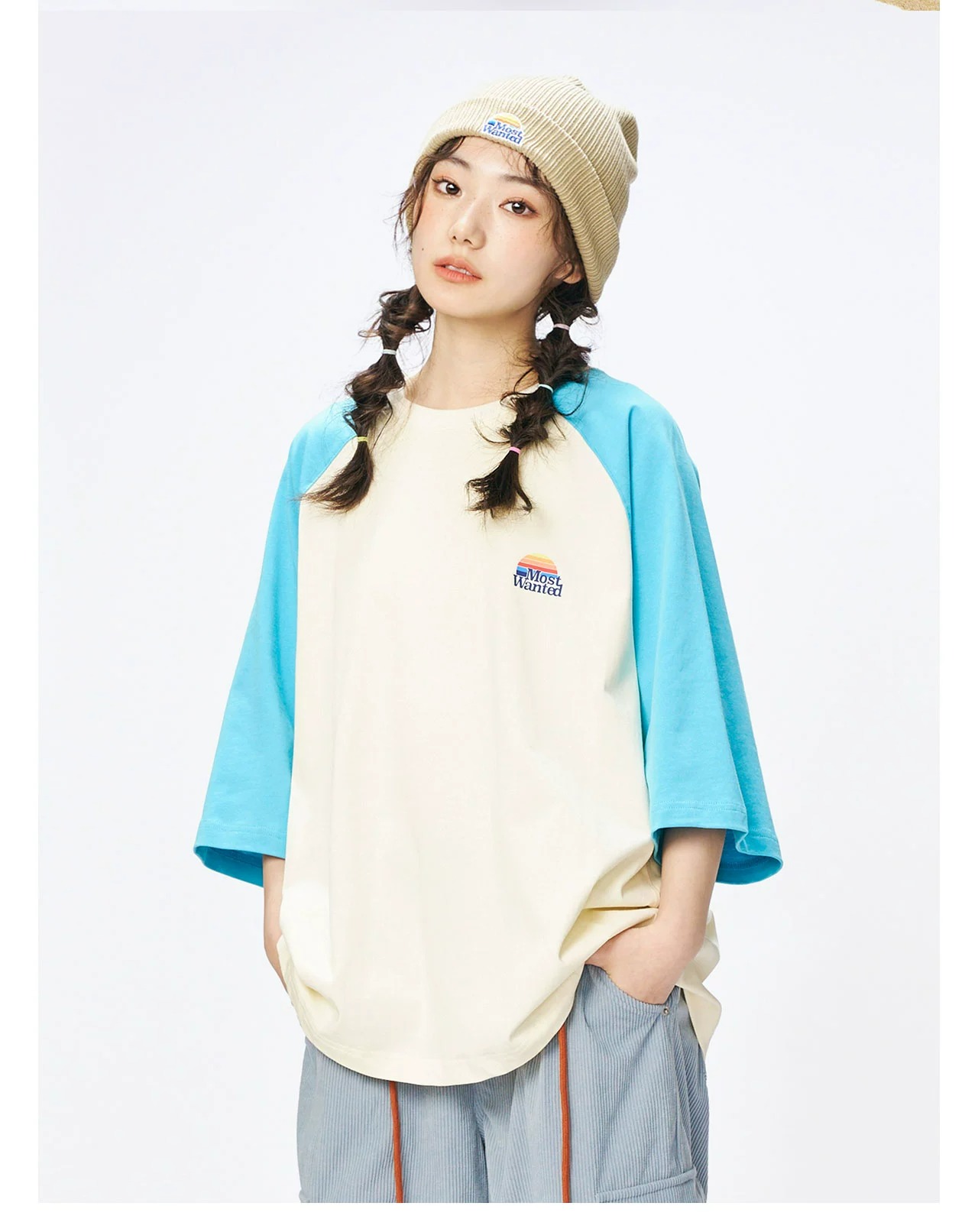 mostwantedlab彩虹/MWL-2334002/彩虹印花拼色插肩袖T恤