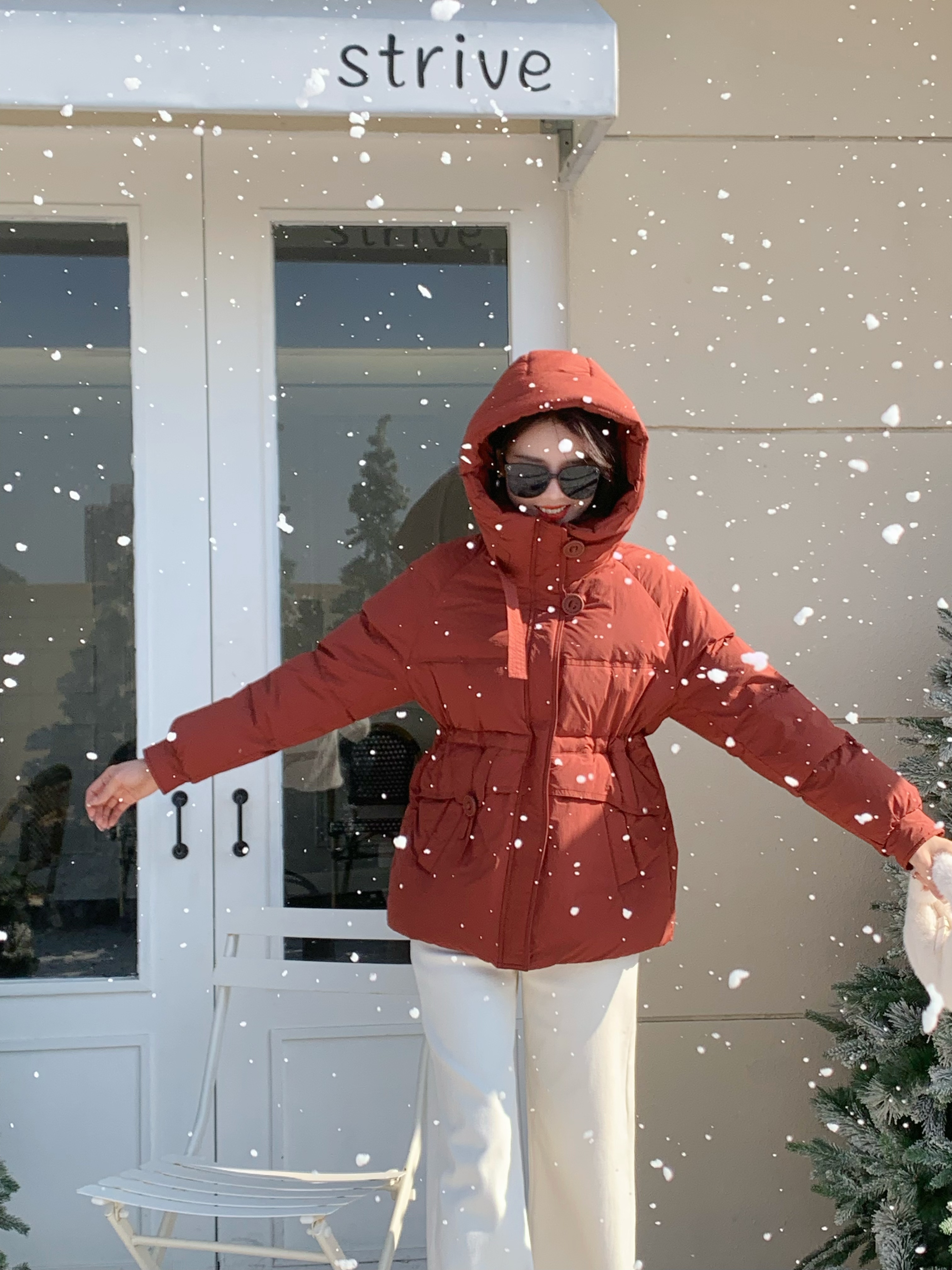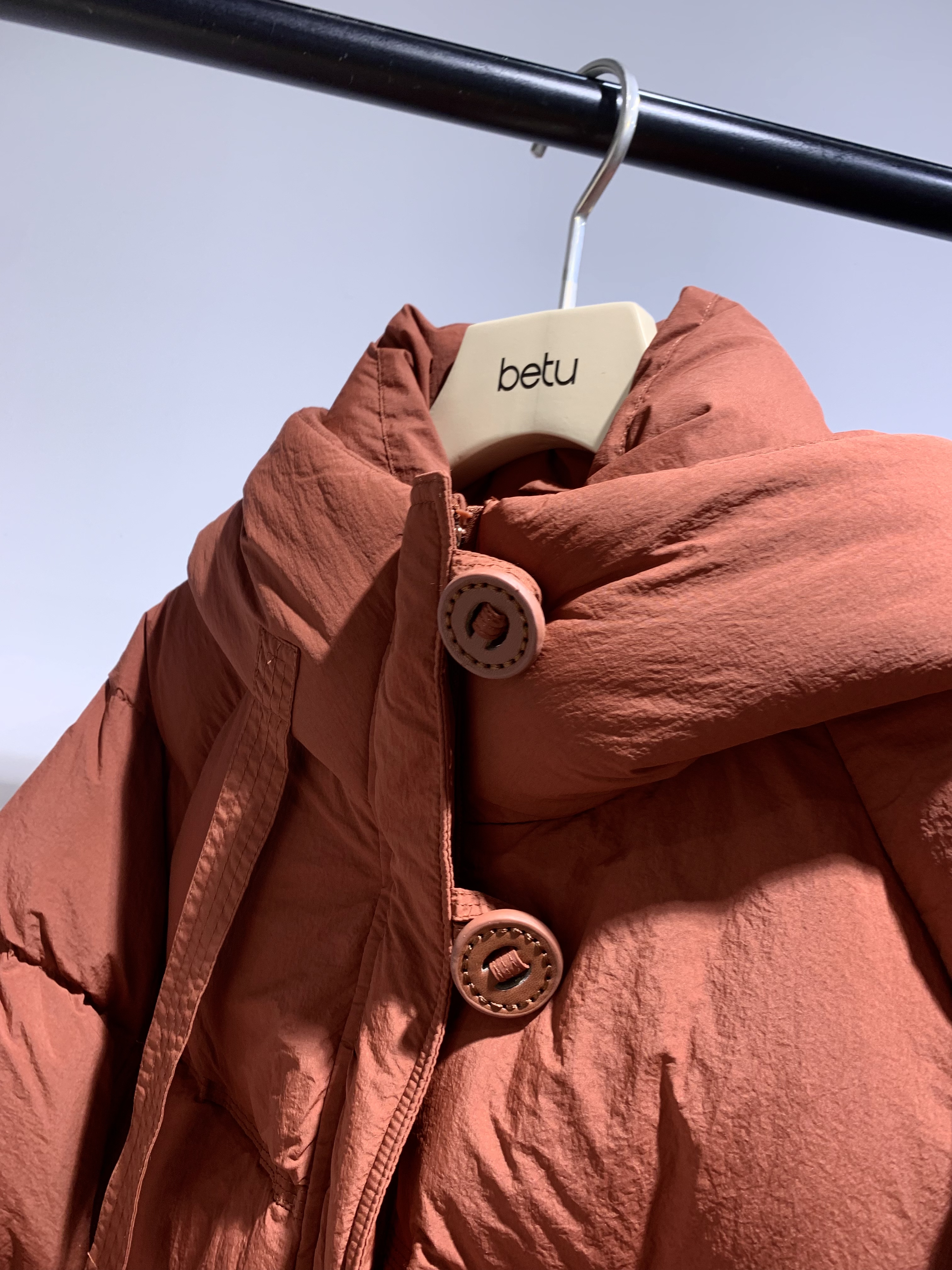 此款羽绒服的红是用的中国传统色中的【爵头】