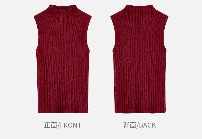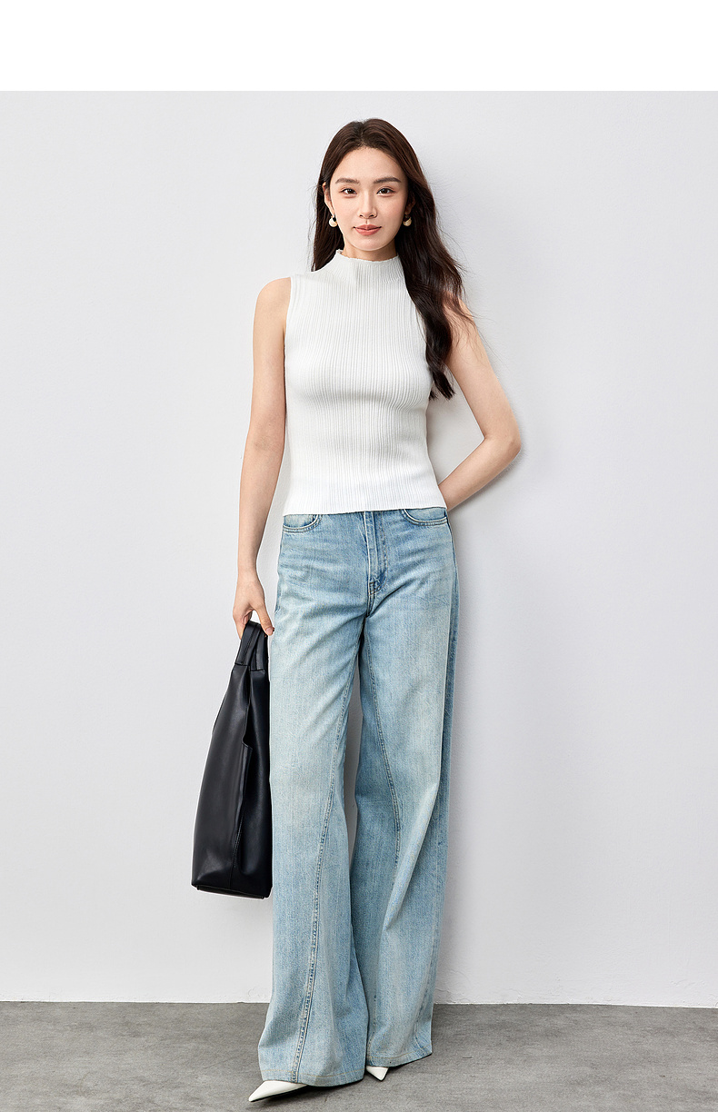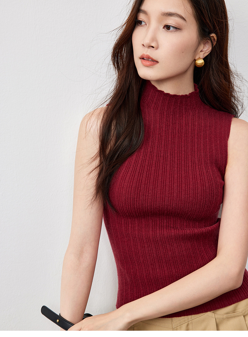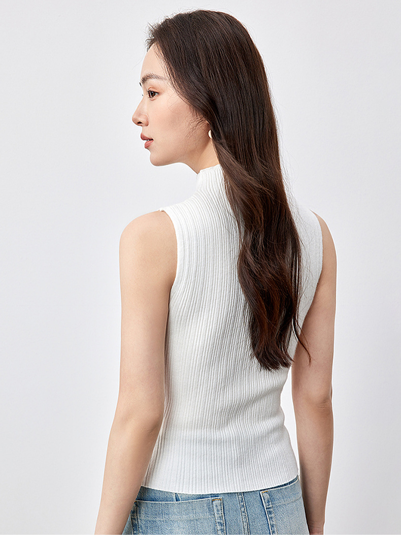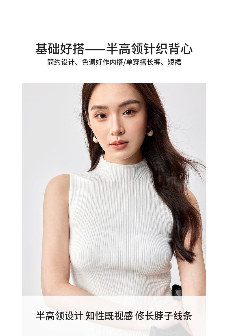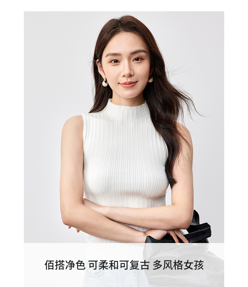 【尚都比拉】【半高领无袖针织上衣】半高领无袖直筒H版型弹力简约净色针织衫-W51H58722