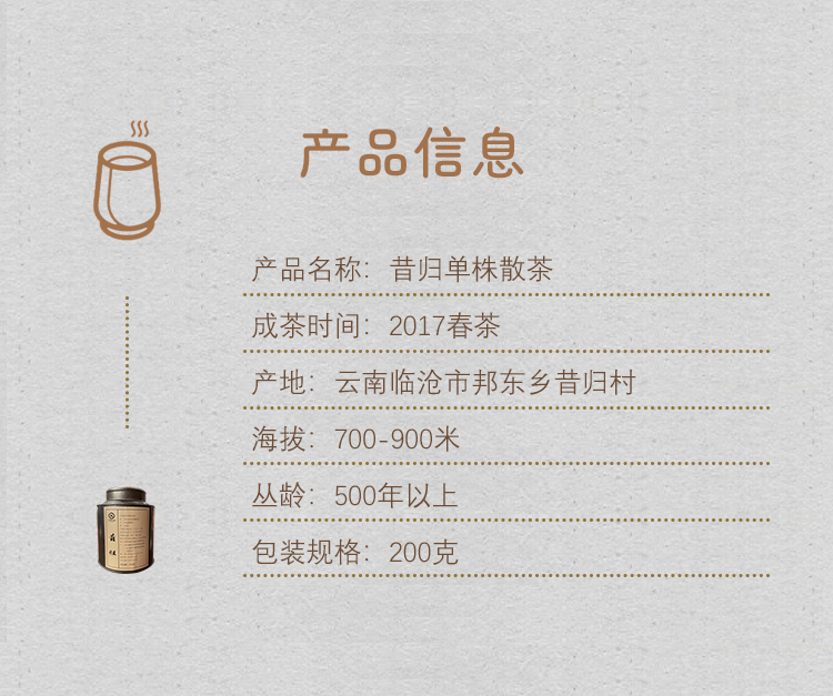 生普 | 洪海古树 2017年昔归单株散茶 200g/罐