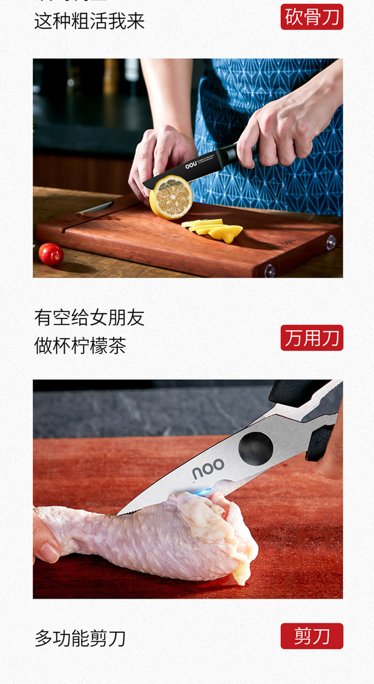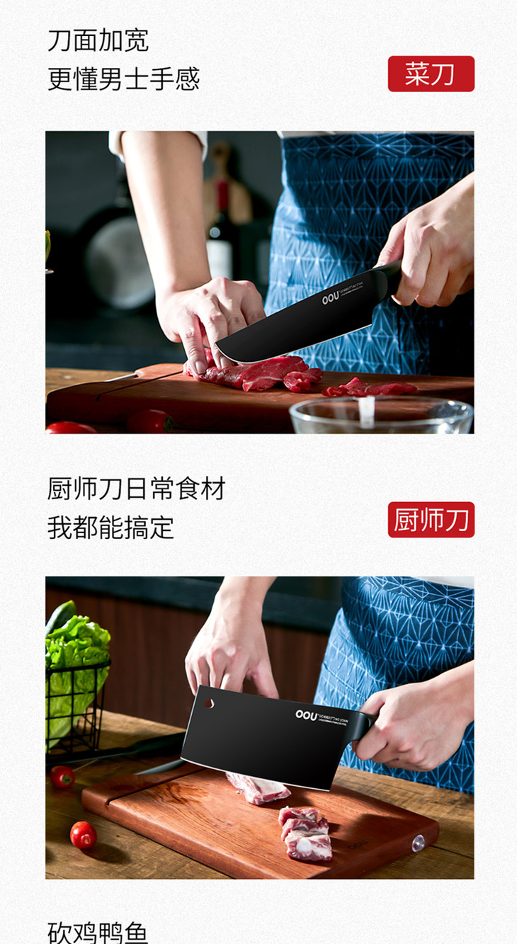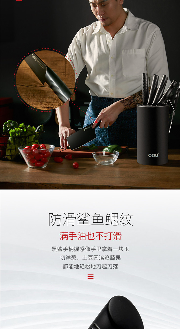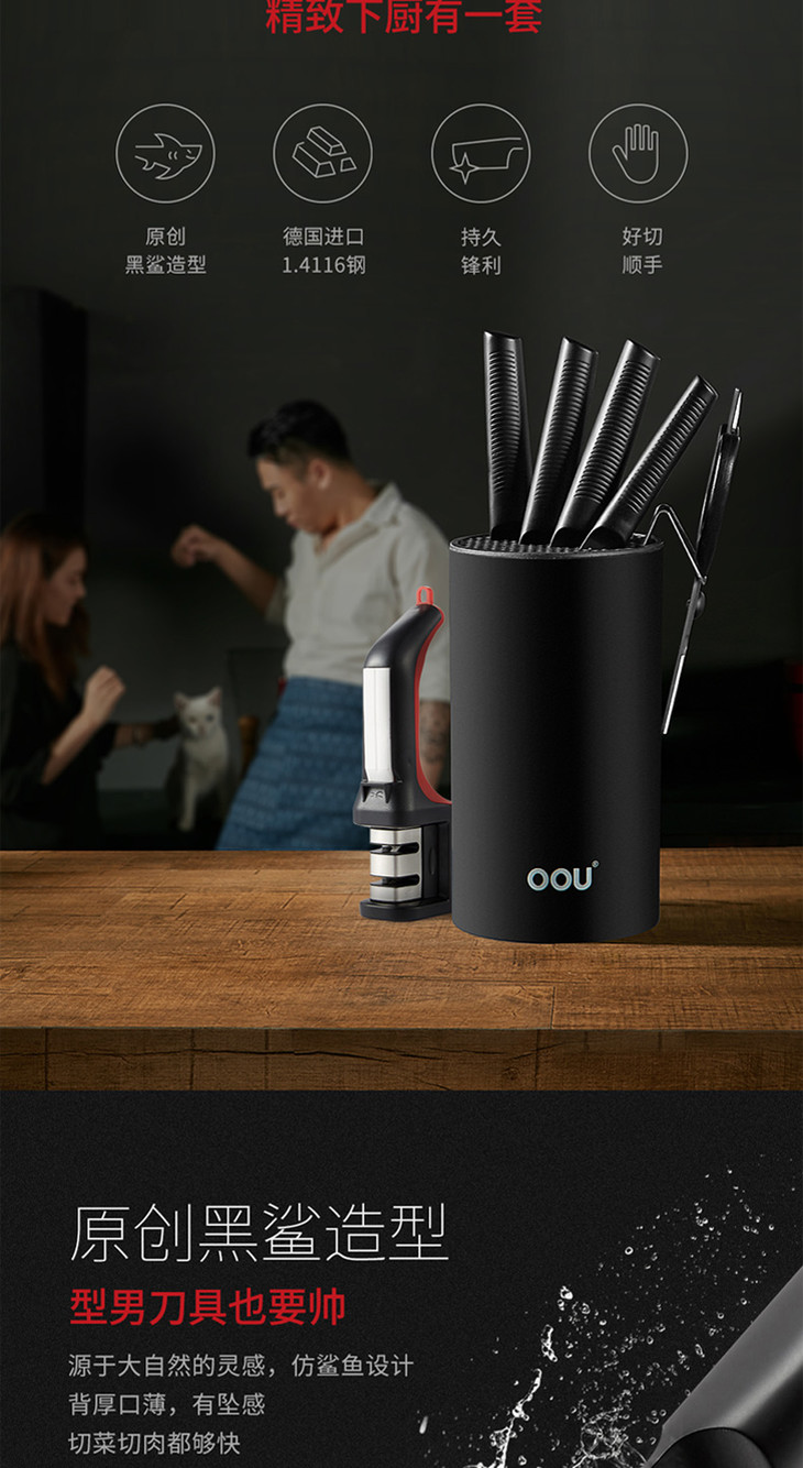 OOU全套厨房刀具套装菜刀家用黑鲨德国进口不锈钢七件套家用黑鲨