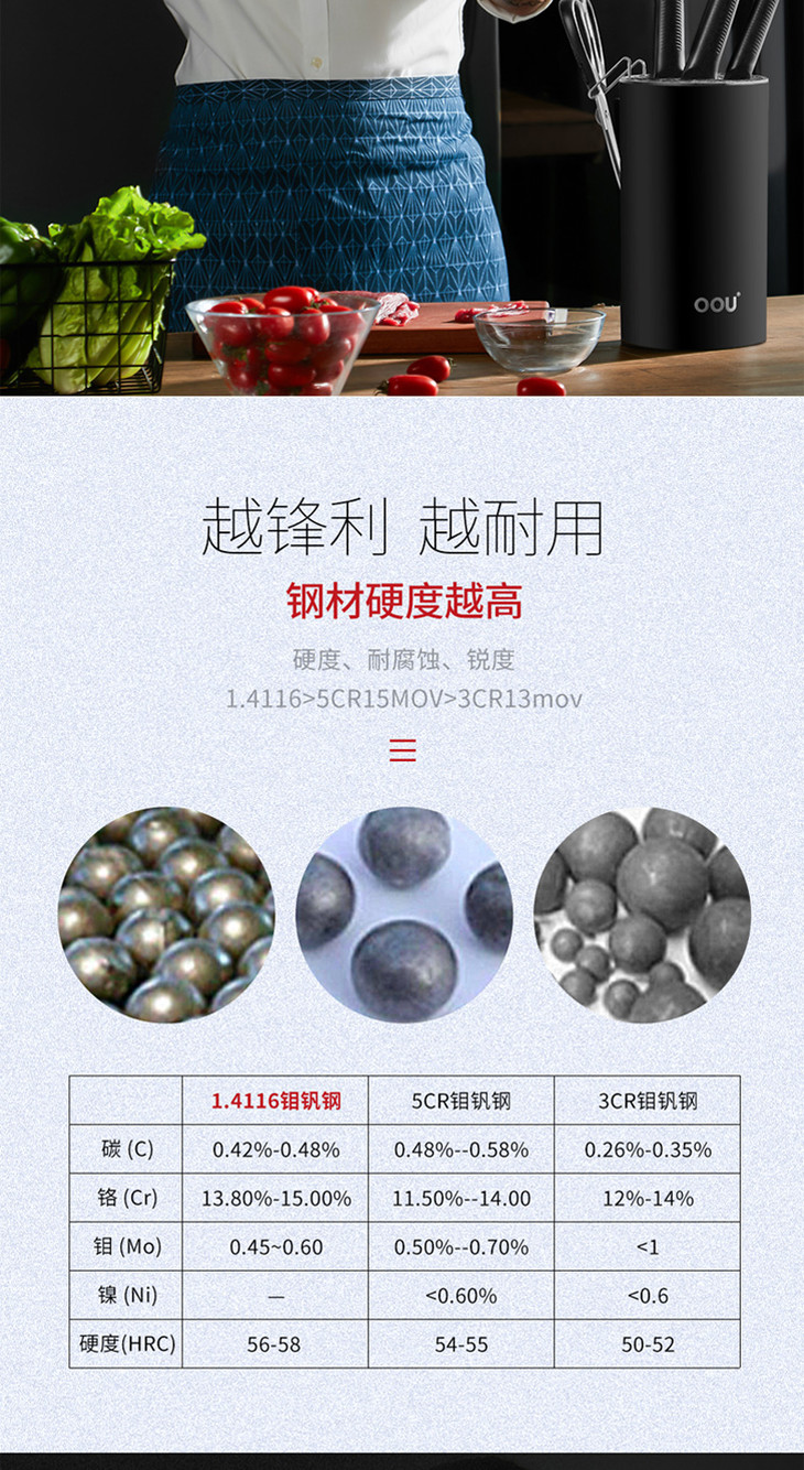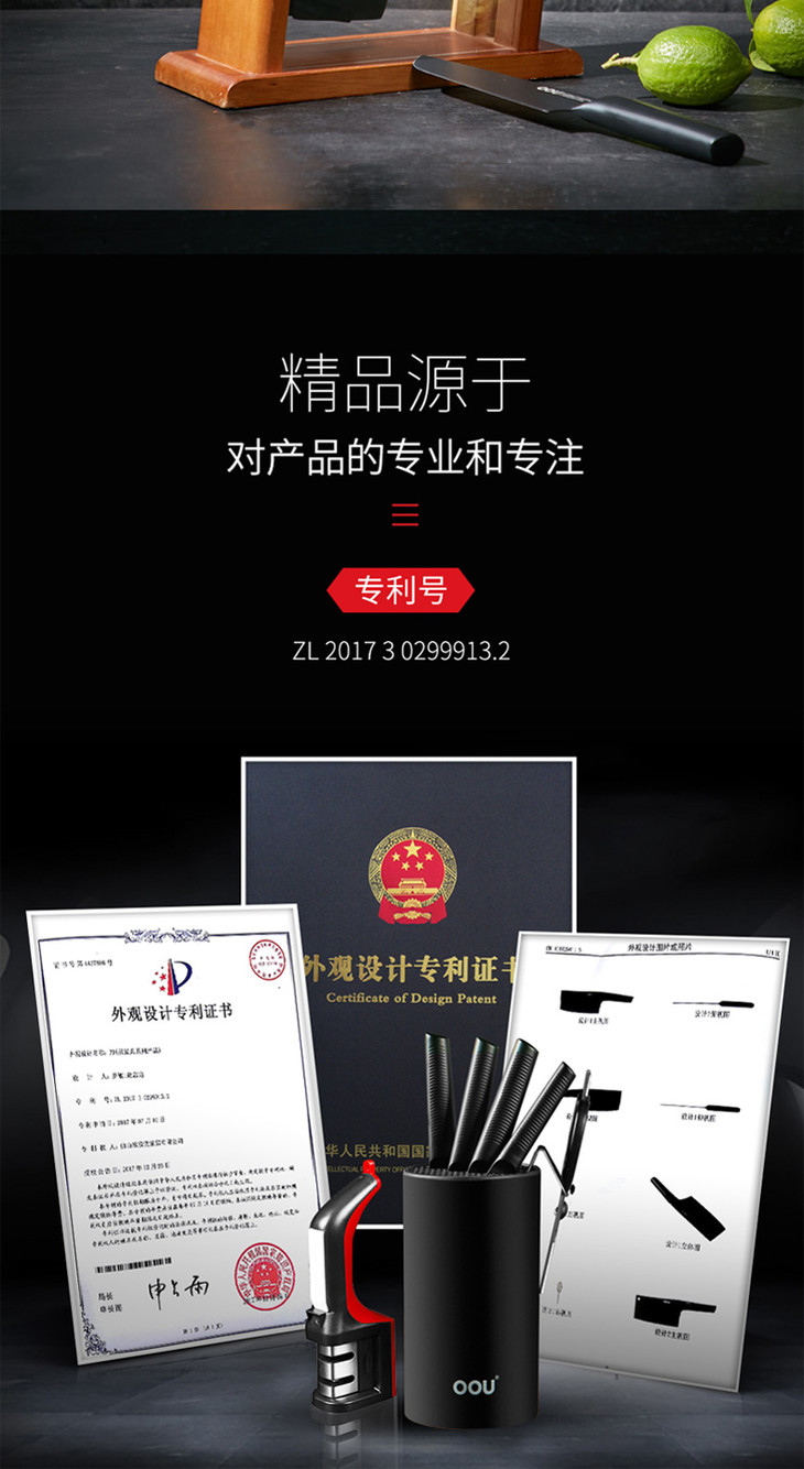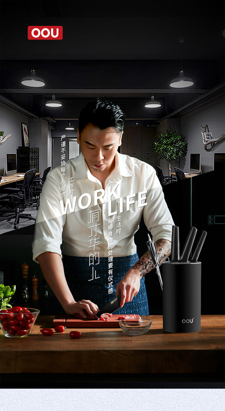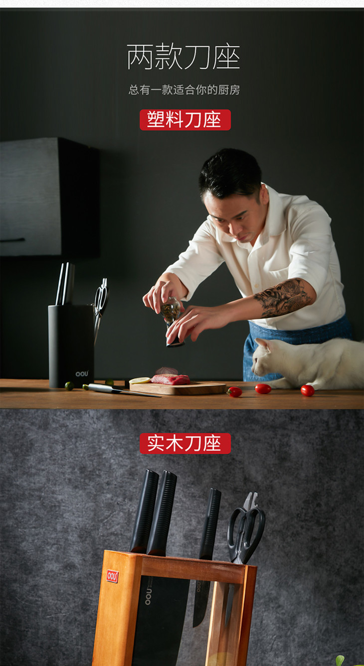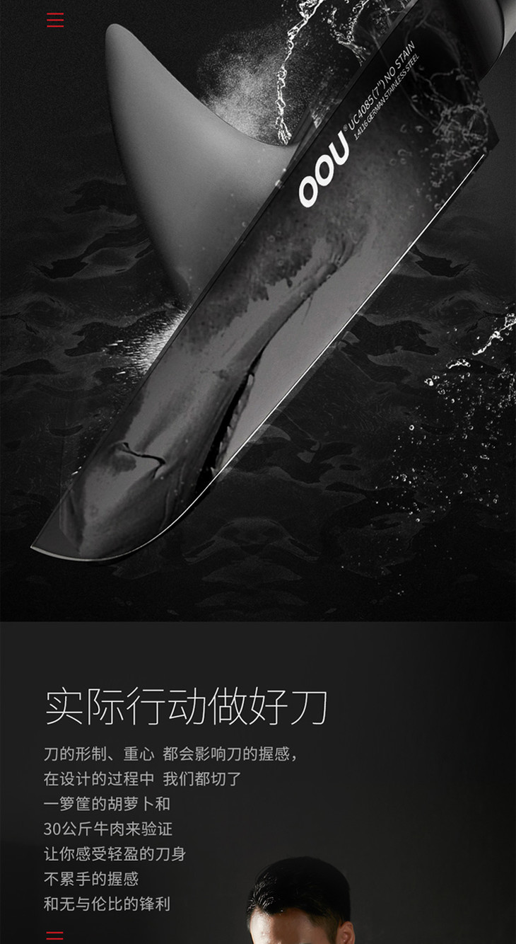 OOU全套厨房刀具套装菜刀家用黑鲨德国进口不锈钢七件套家用黑鲨