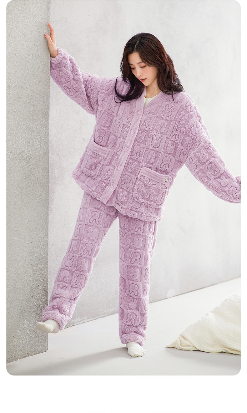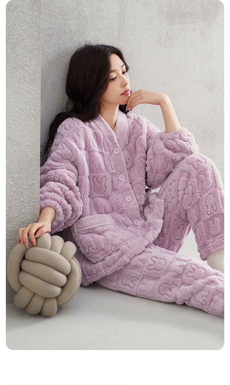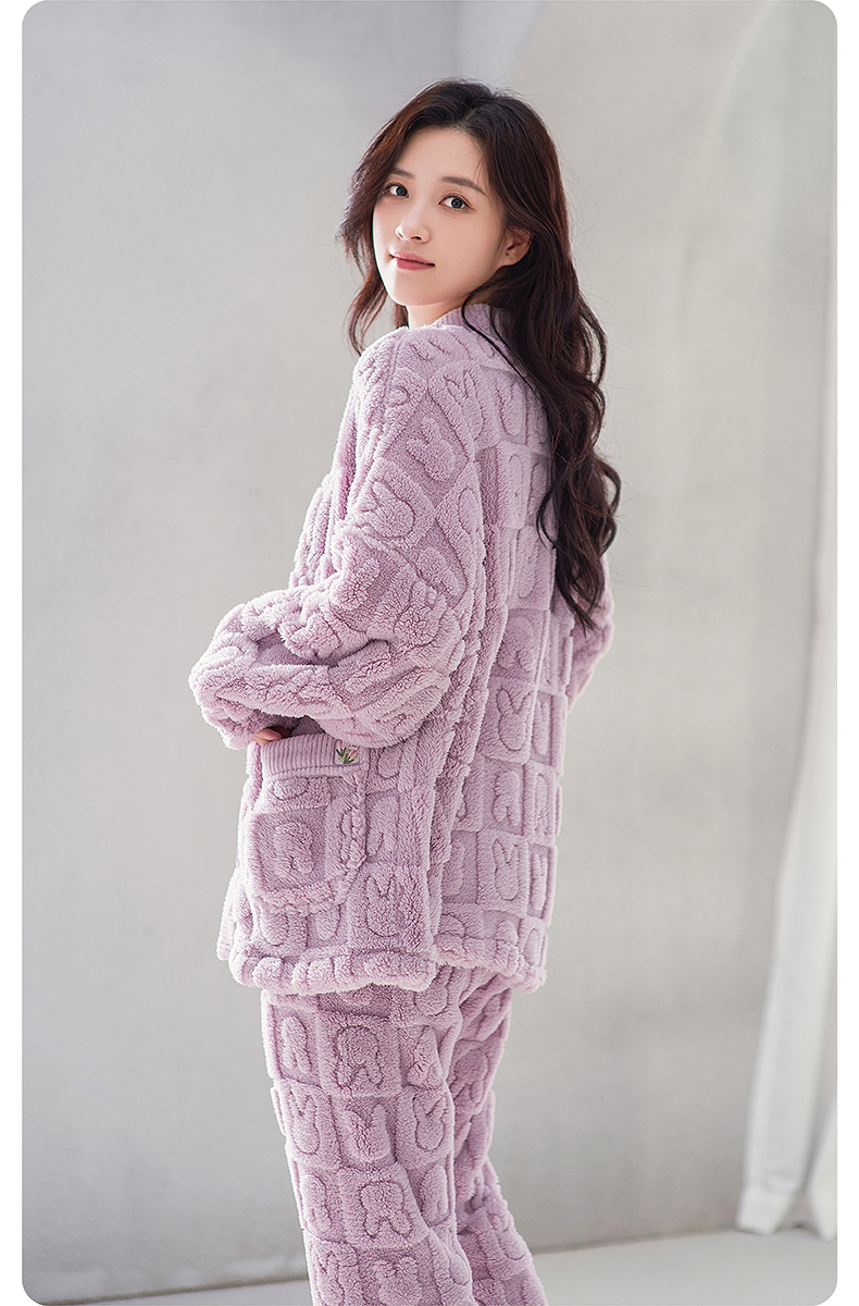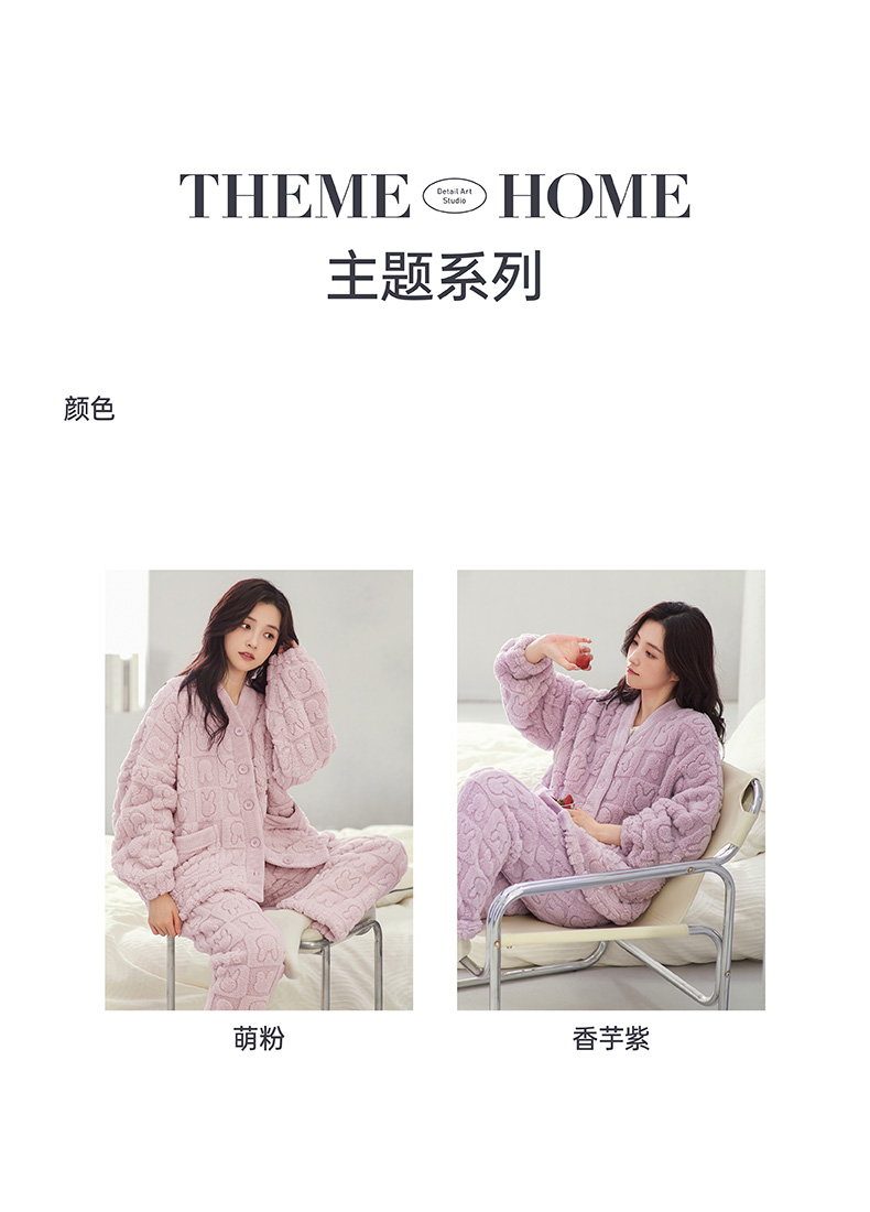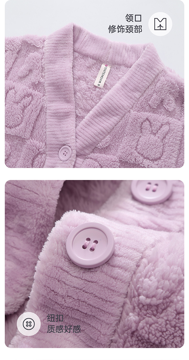 芬腾女士睡衣女秋冬季珊瑚绒法兰绒加绒加厚保暖家居服套装