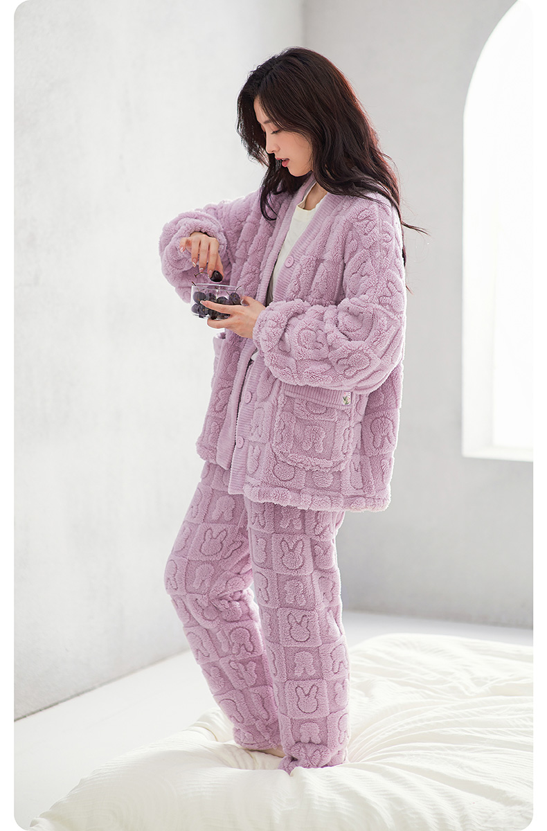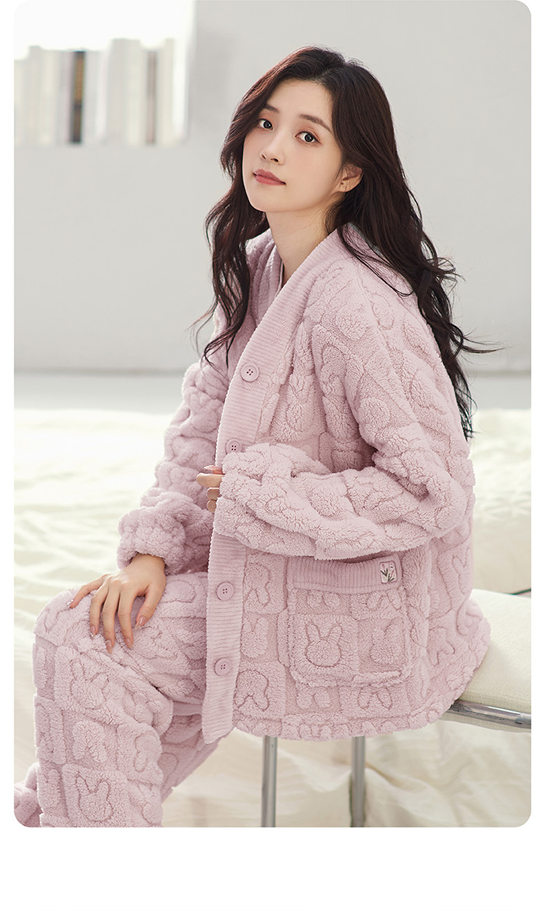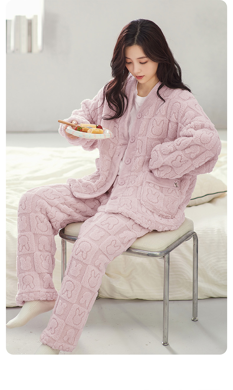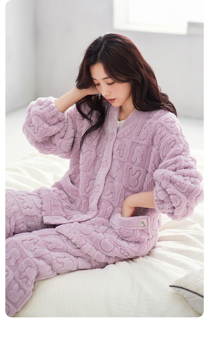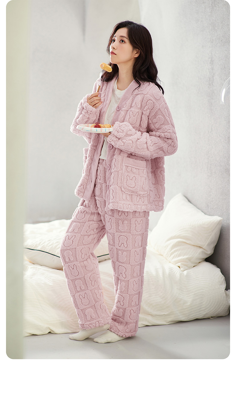 芬腾女士睡衣女秋冬季珊瑚绒法兰绒加绒加厚保暖家居服套装