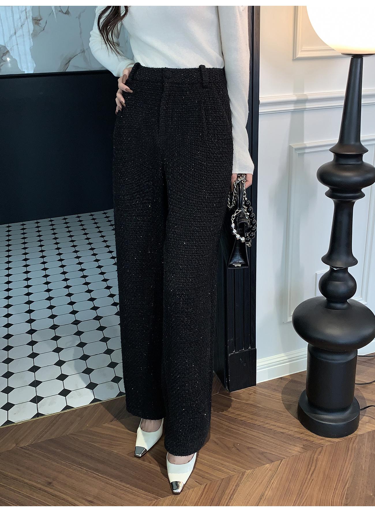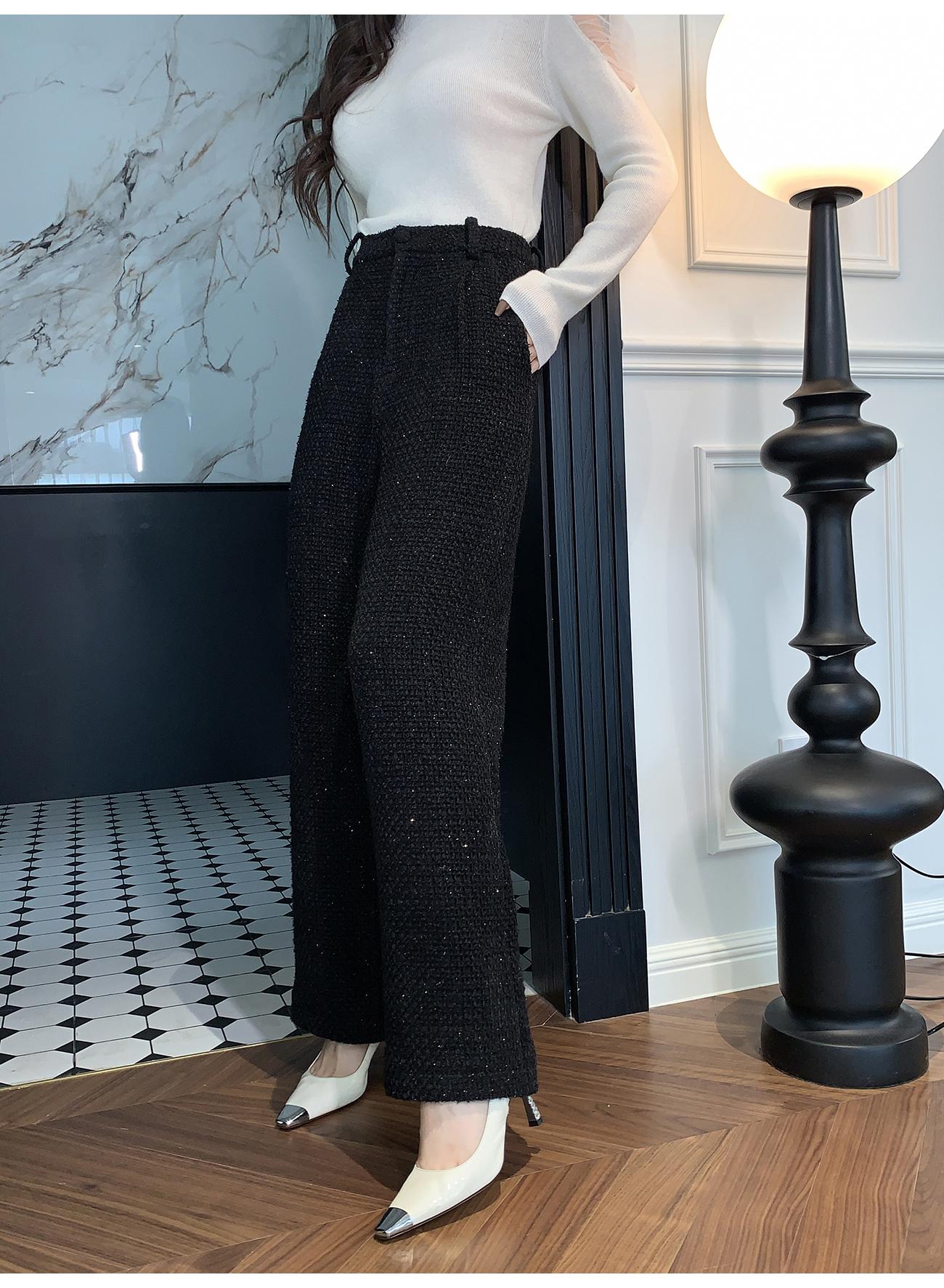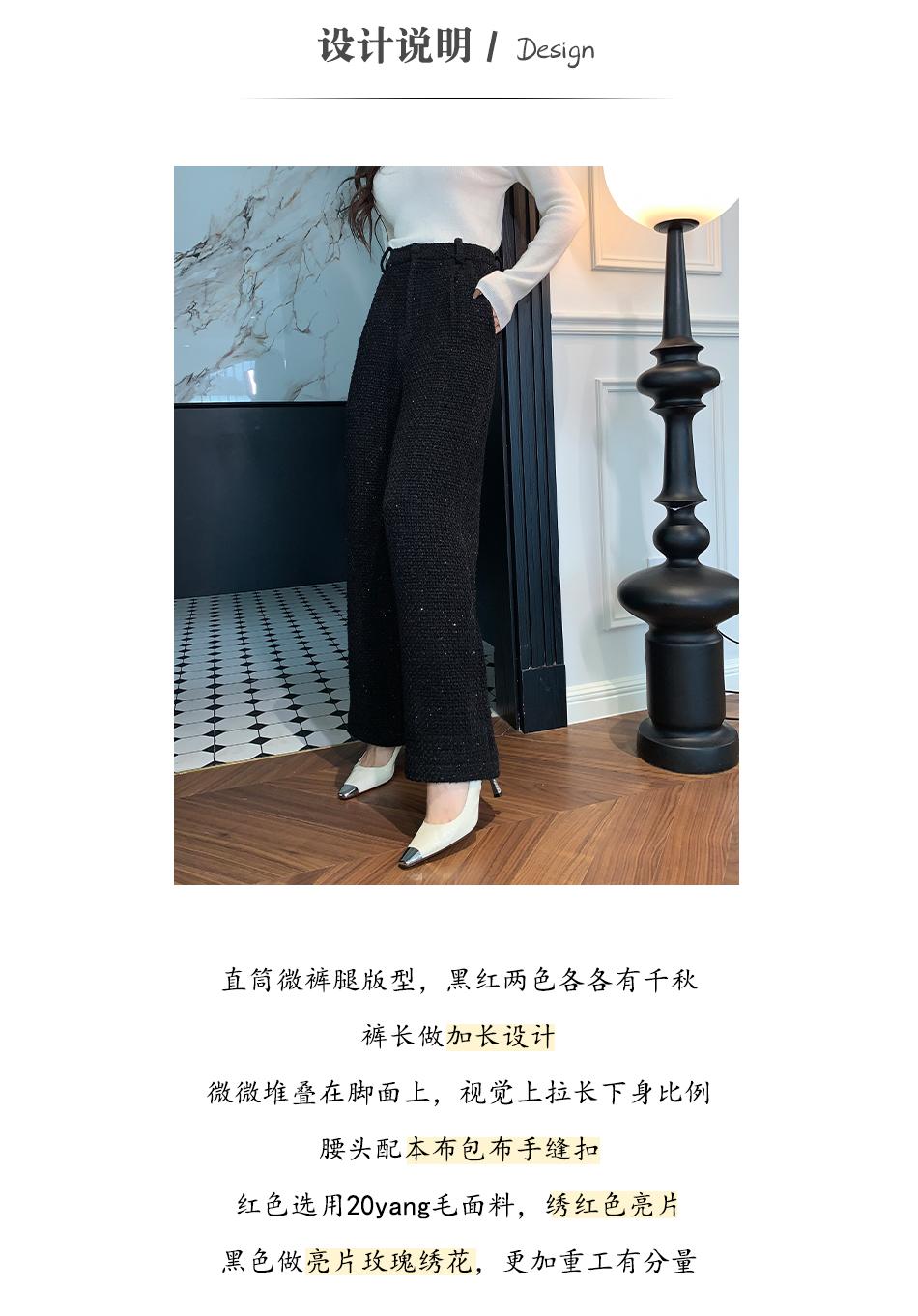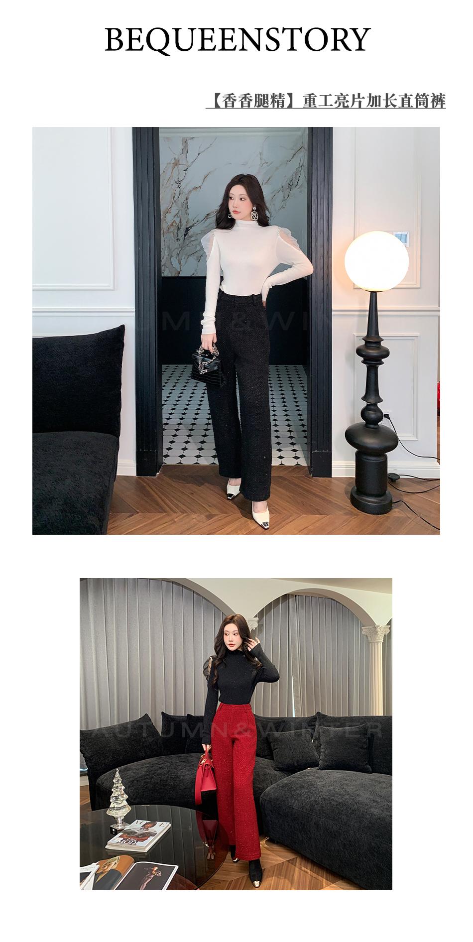 BeQueenStory【香香美腿】重工亮片小香肌理感加长堆叠垂感直筒裤