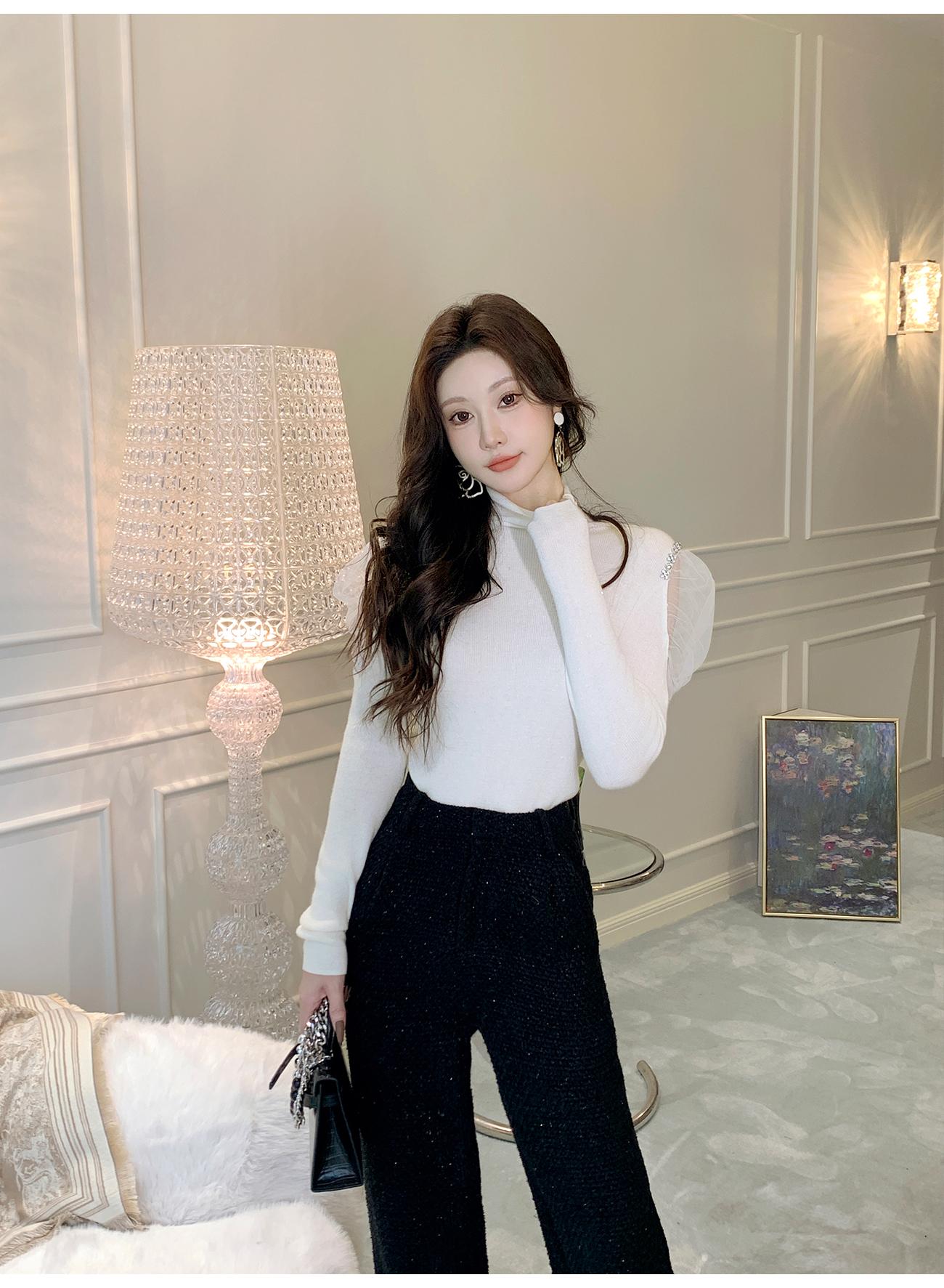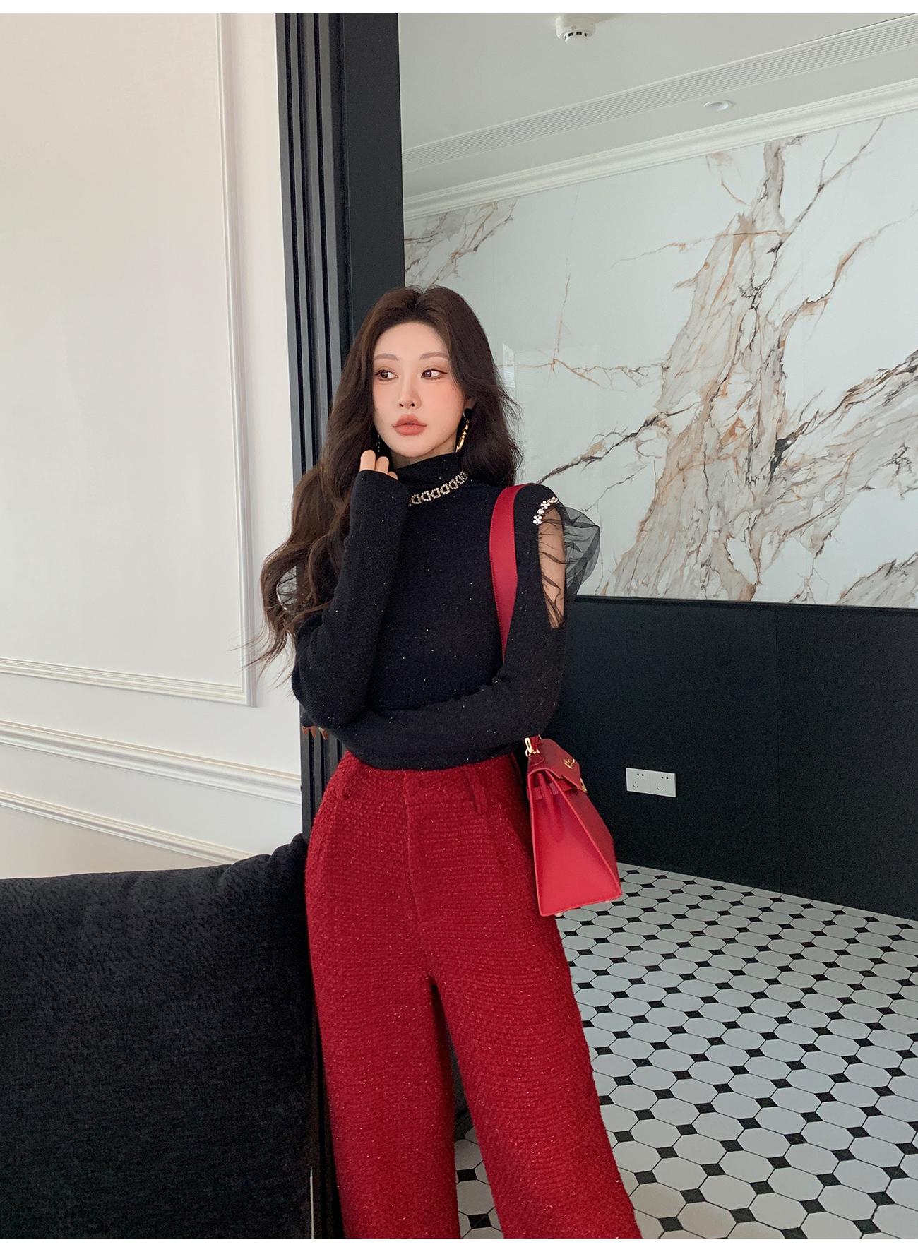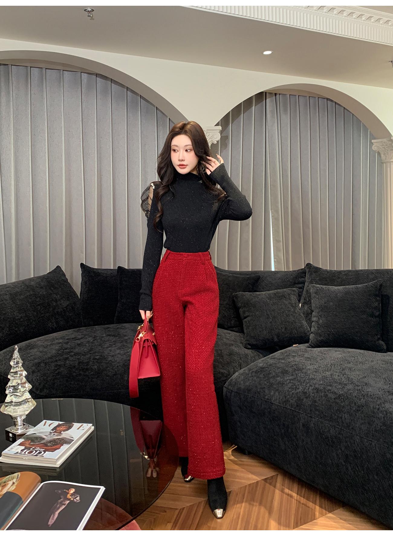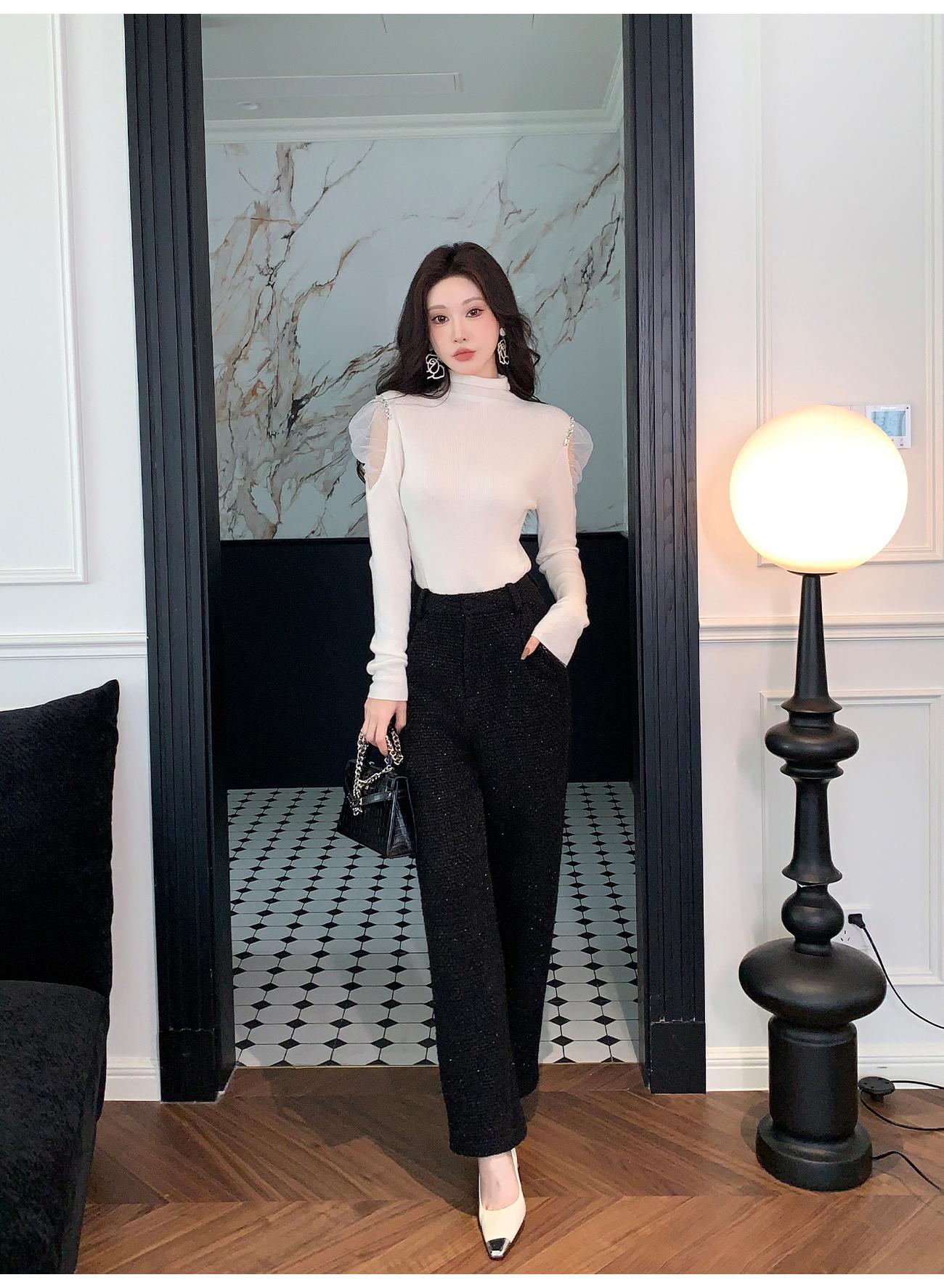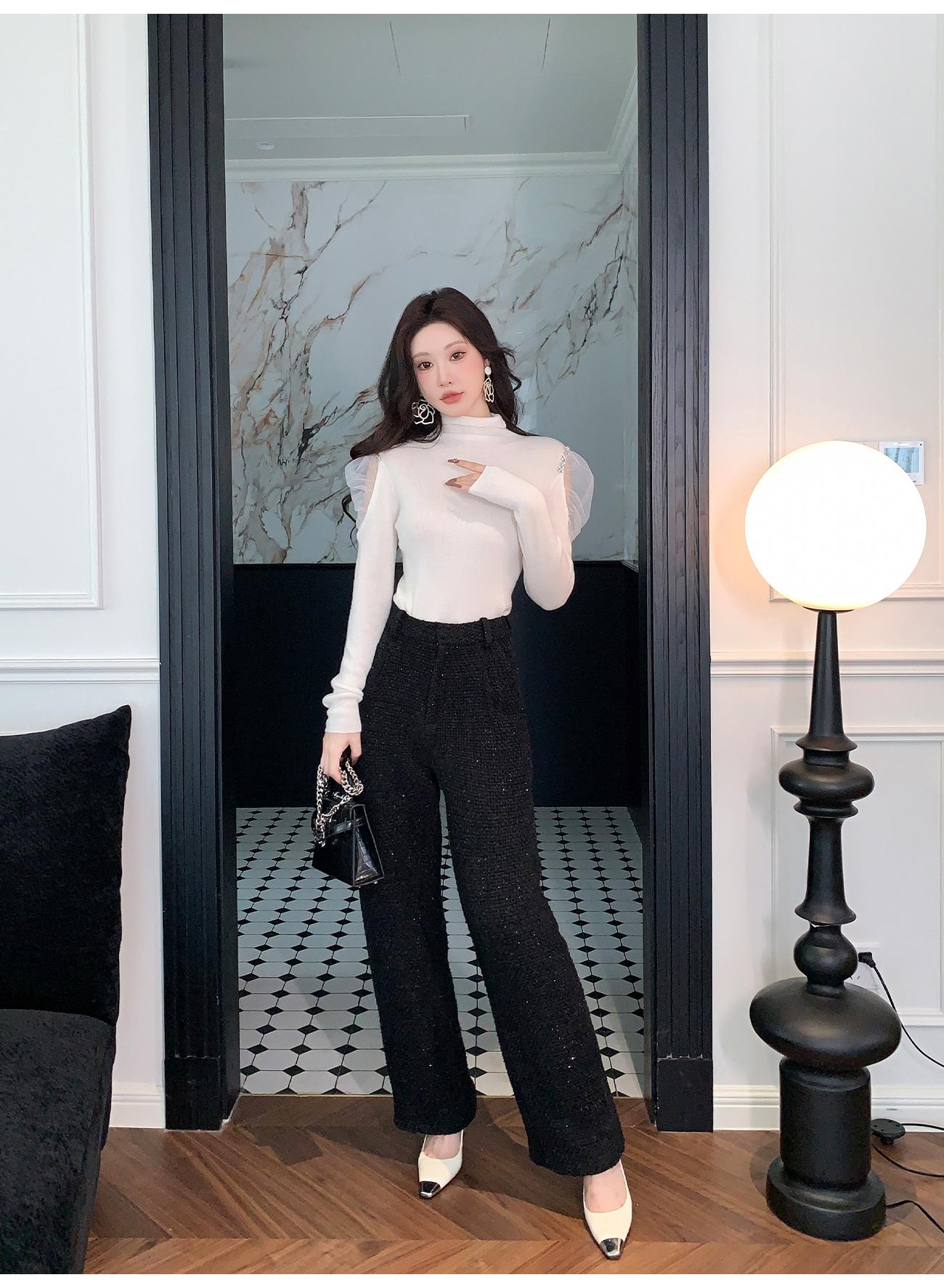 BeQueenStory【香香美腿】重工亮片小香肌理感加长堆叠垂感直筒裤