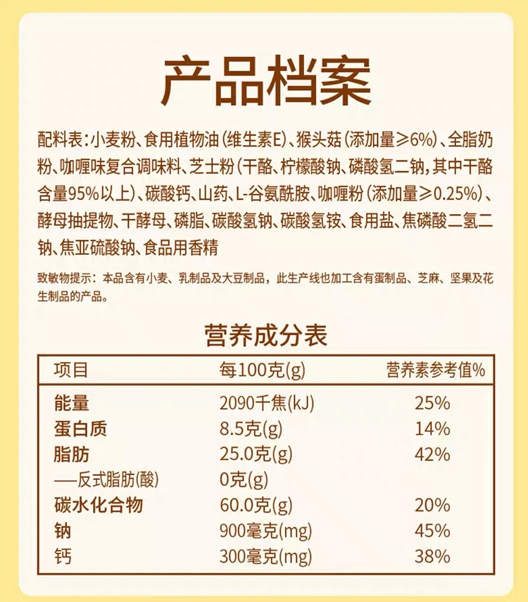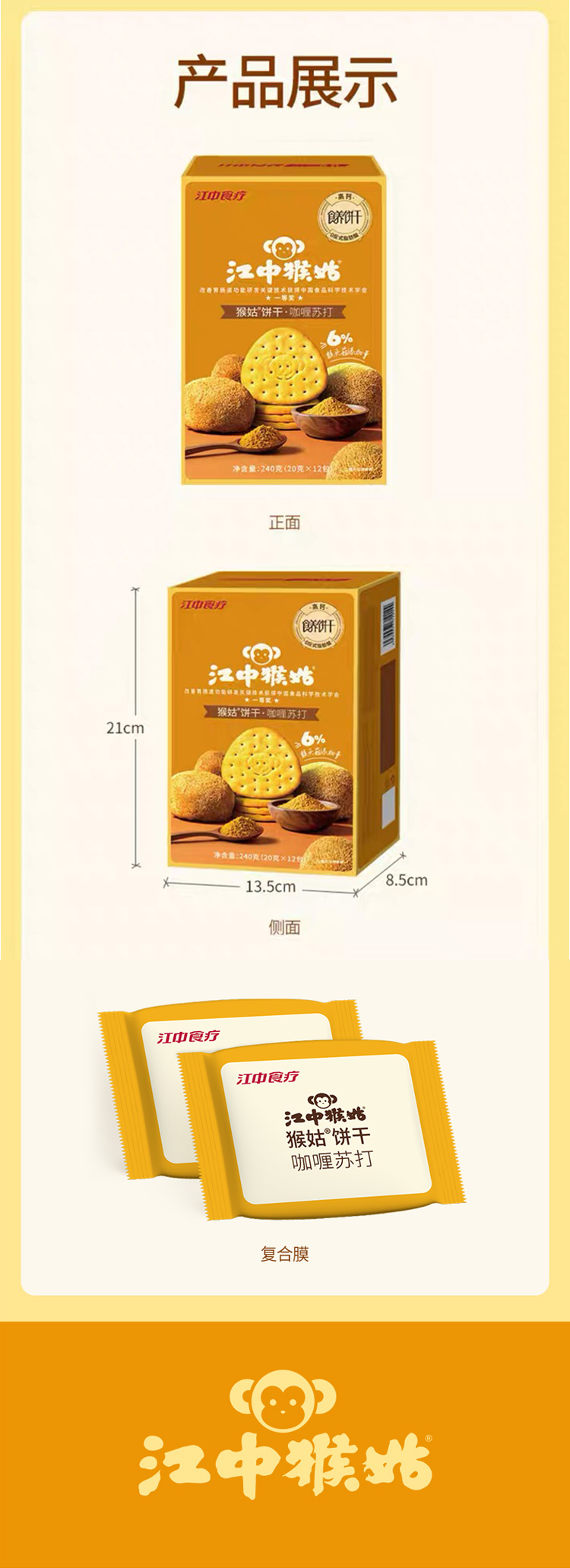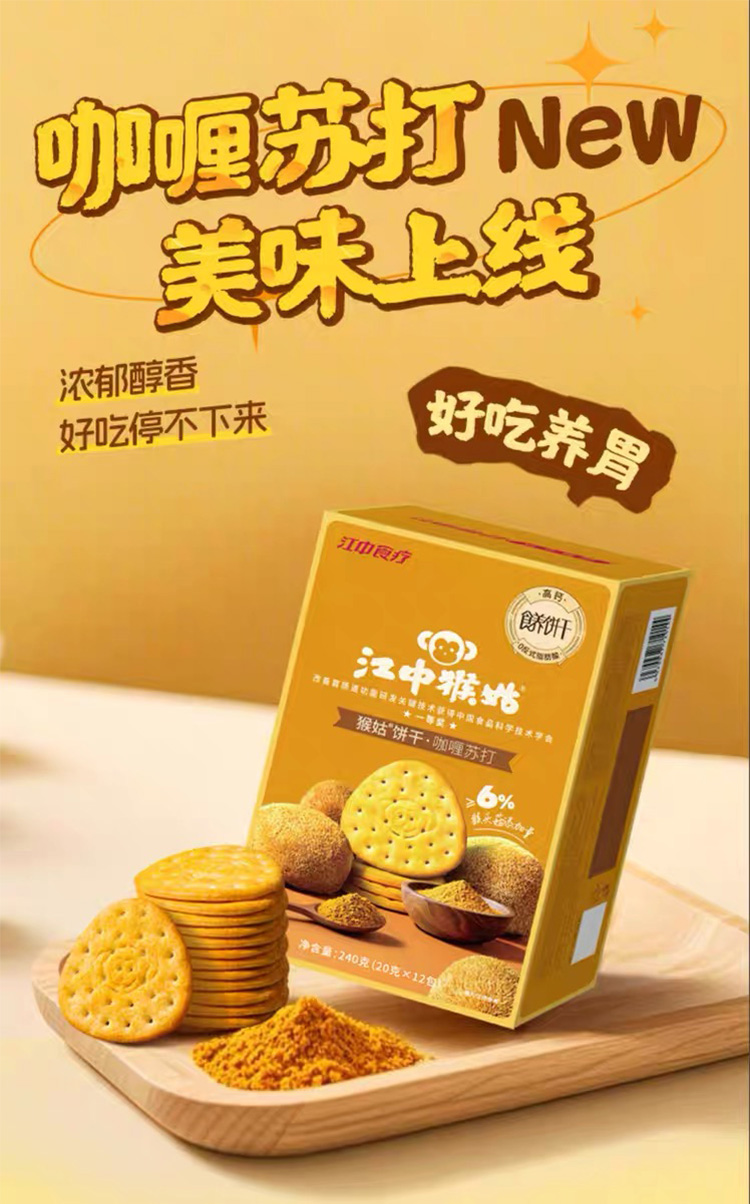 【100元任选3件】3盒*江中猴姑猴姑饼干咖喱苏打饼干240克/盒 20克*12包/盒 保质期至2026年8月