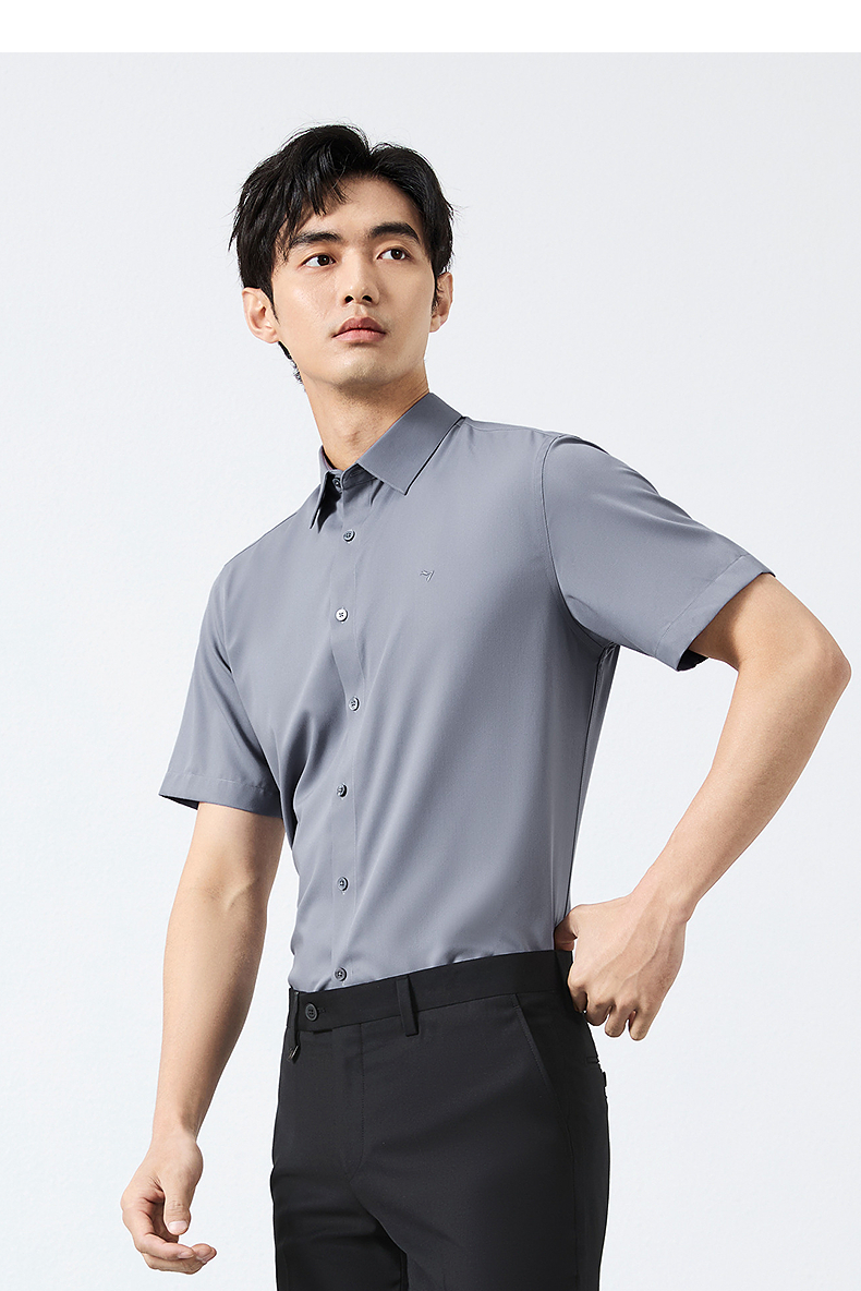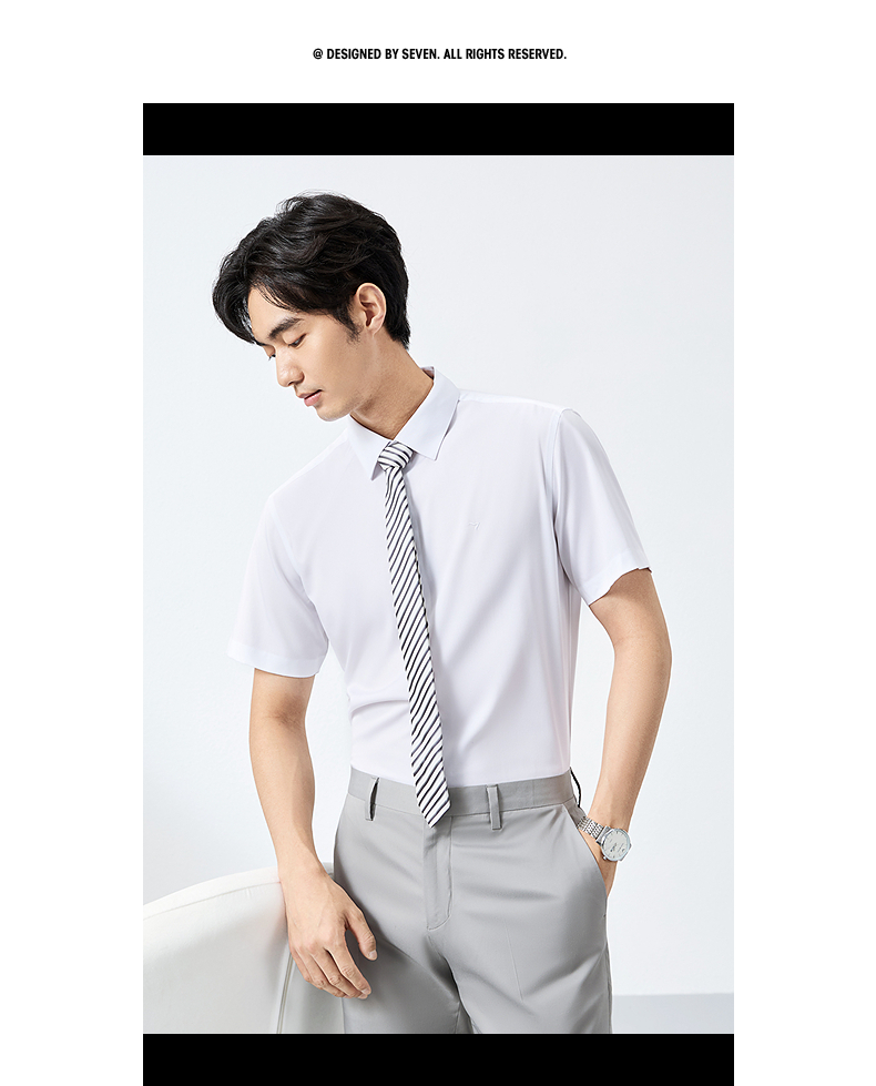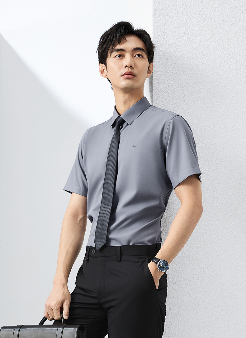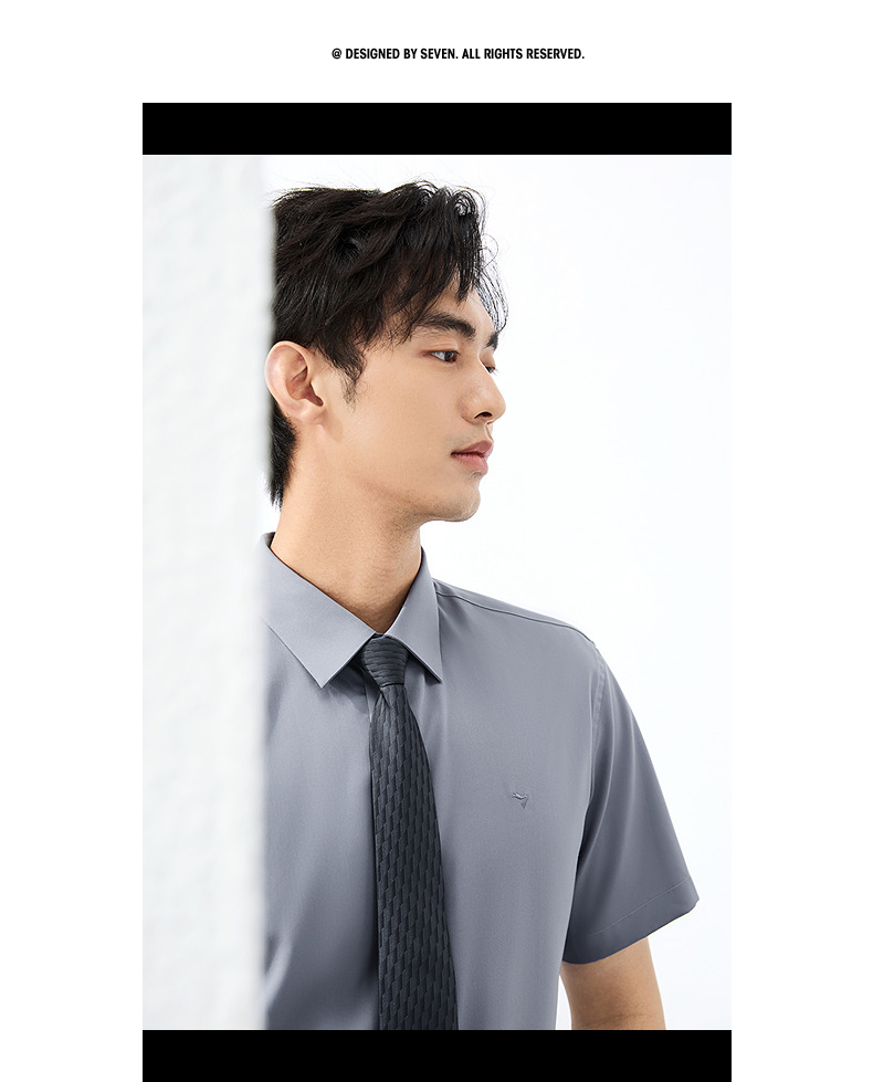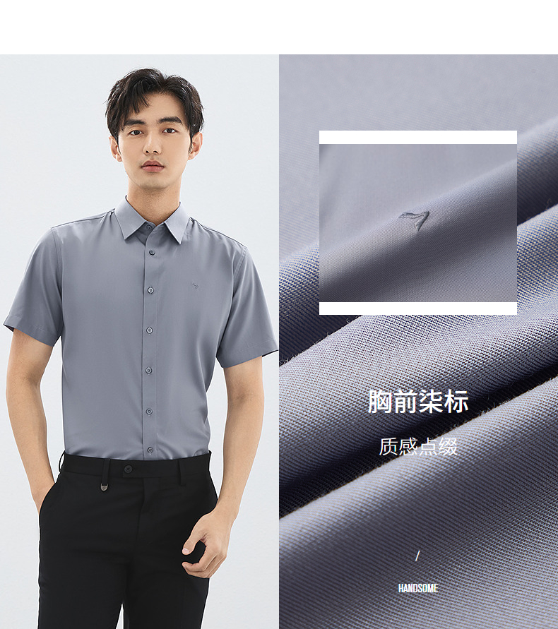 【含桑蚕丝】柒牌男装短袖衬衫2025夏季新款休闲百搭商务方领衬衣128A70980