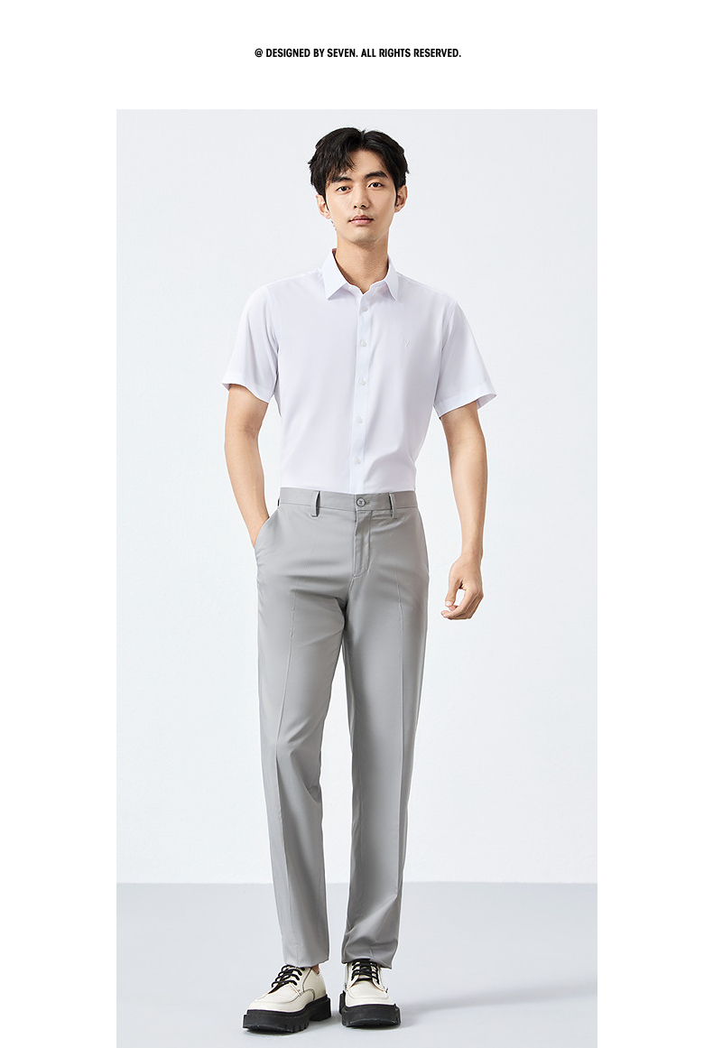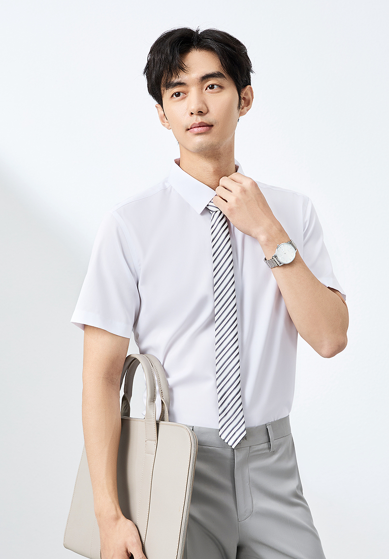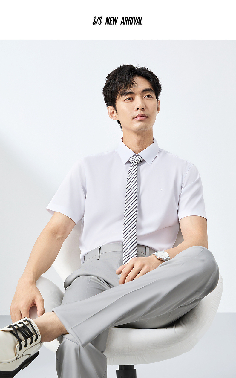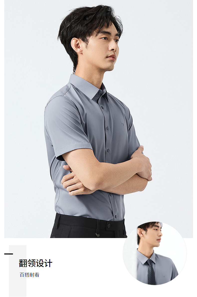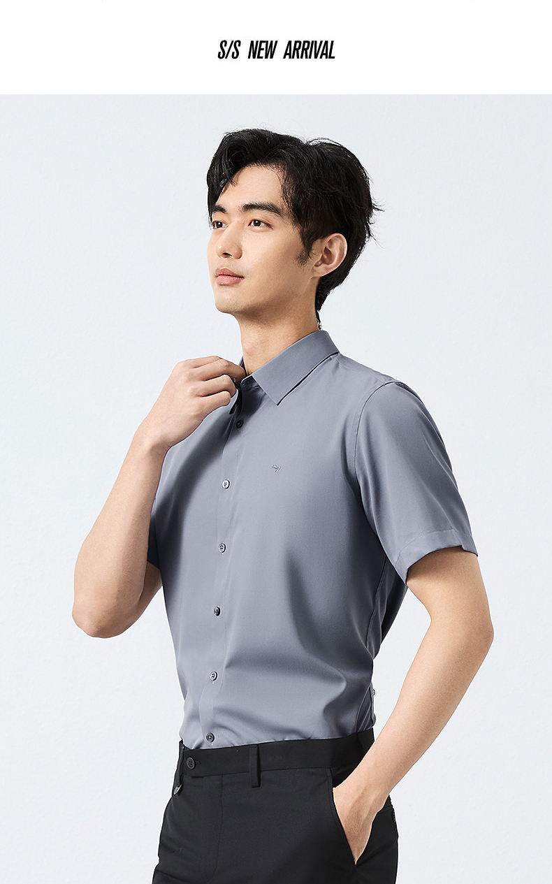 【含桑蚕丝】柒牌男装短袖衬衫2025夏季新款休闲百搭商务方领衬衣128A70980