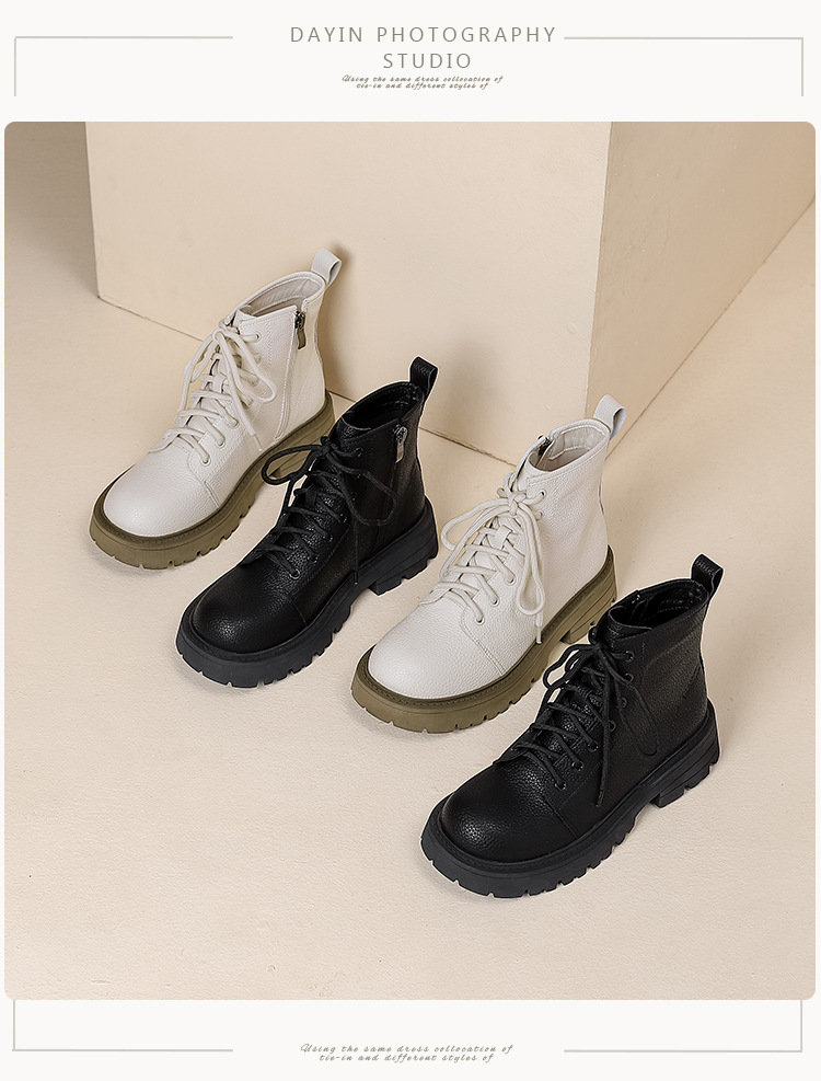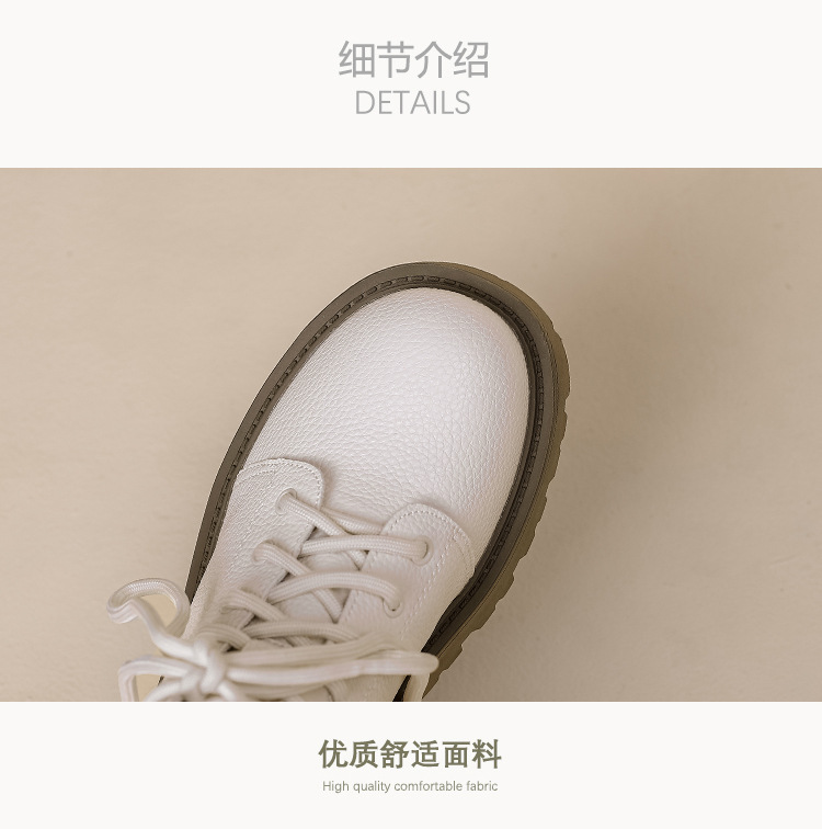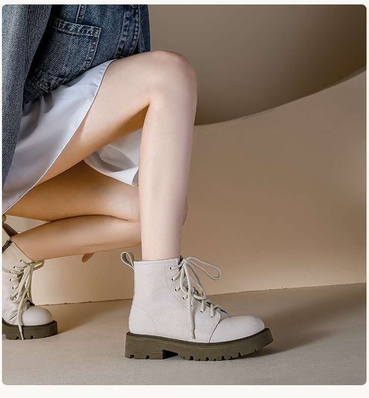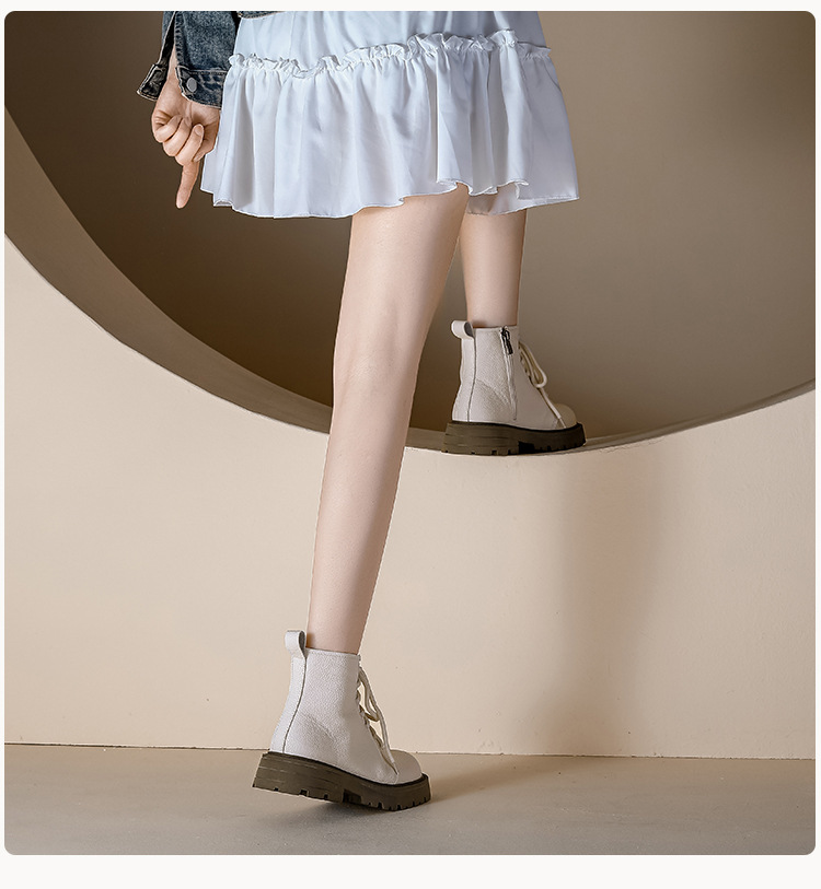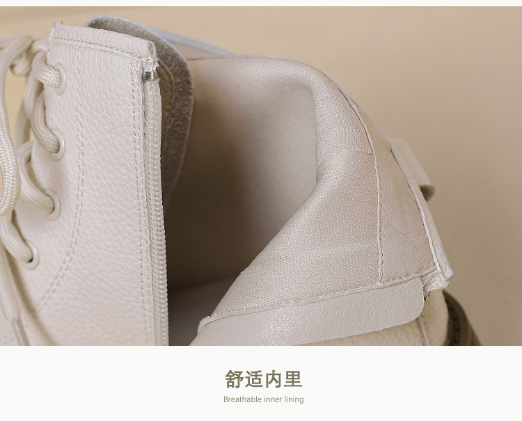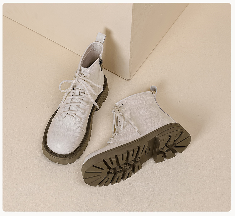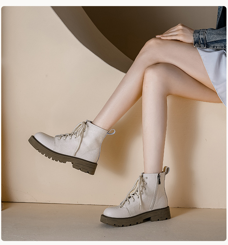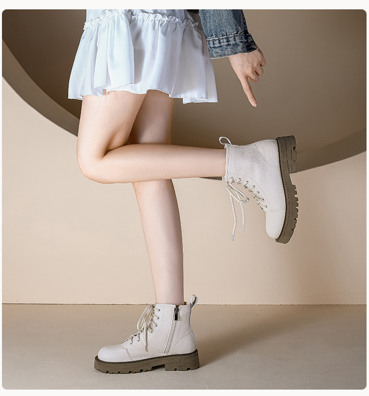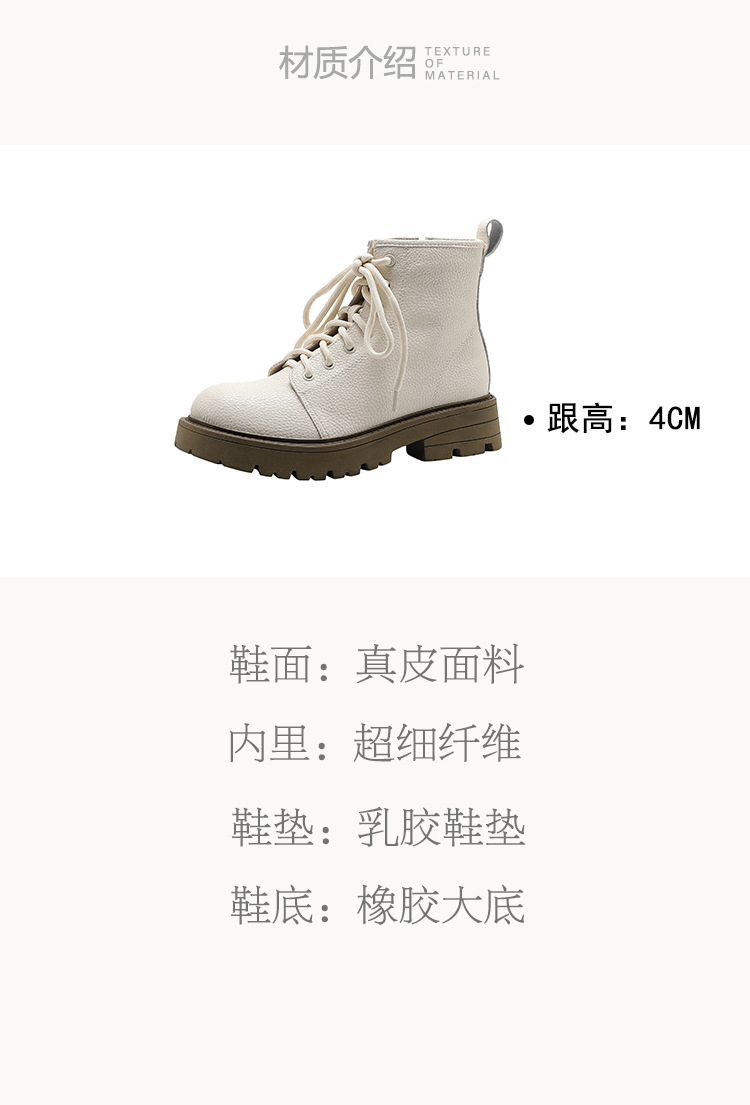 【女鞋专场】真皮厚底系带马丁靴女2023年新款秋冬薄款靴子英伦小个子白色短靴