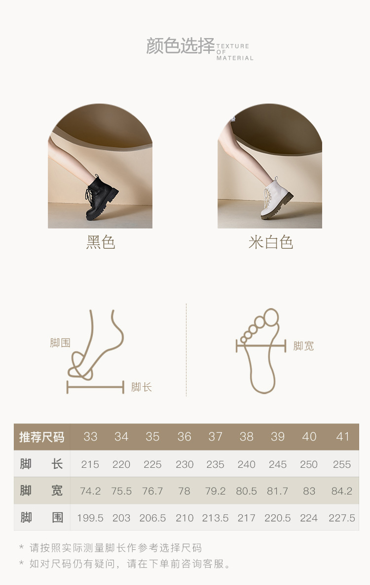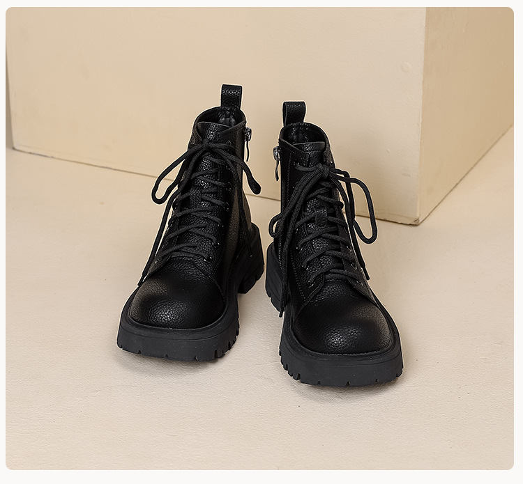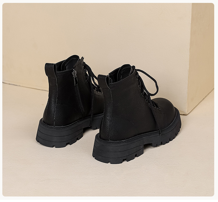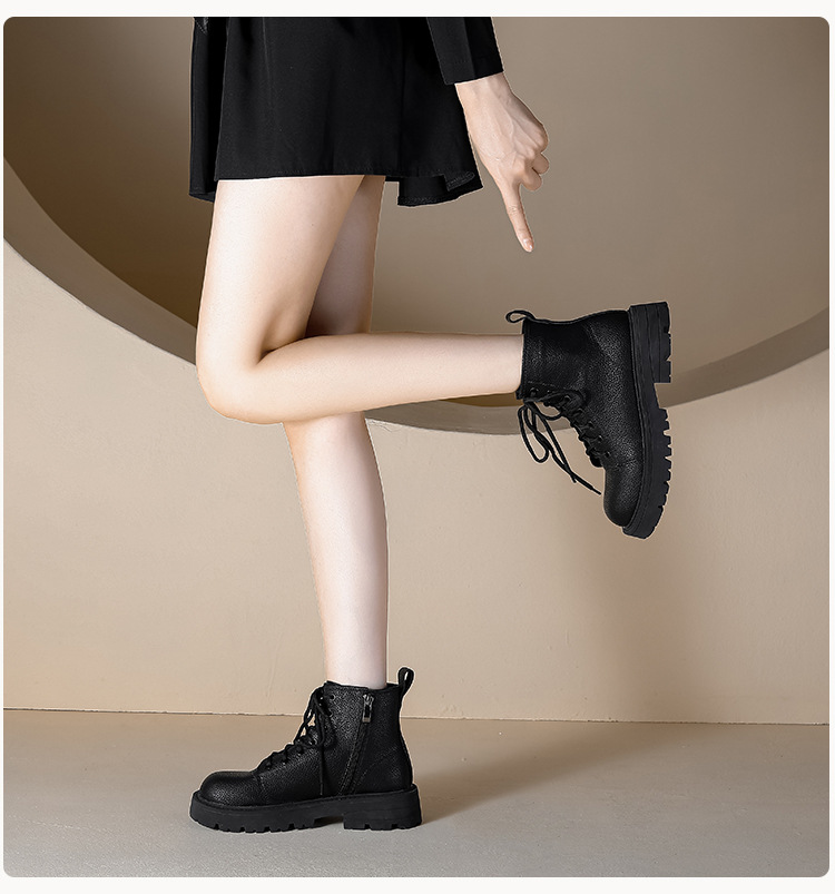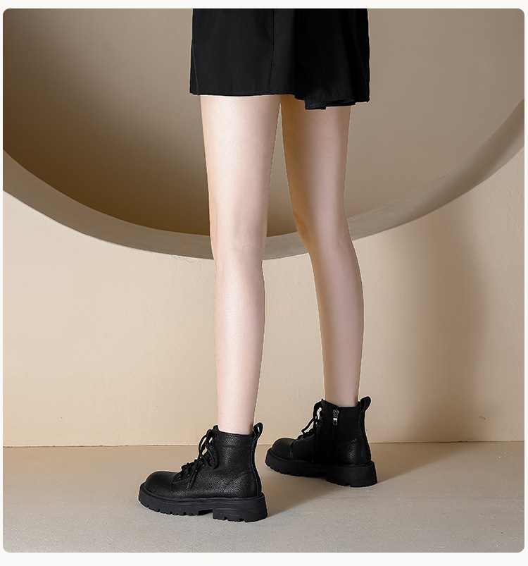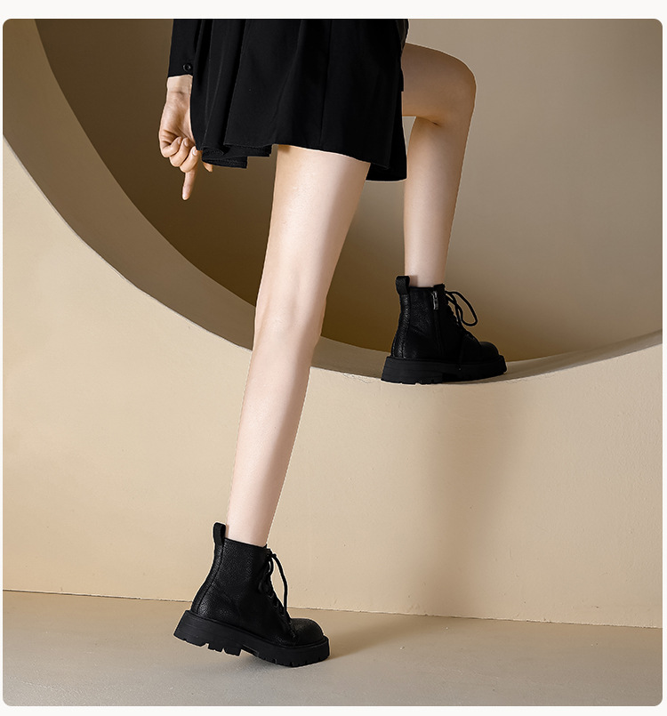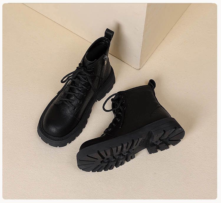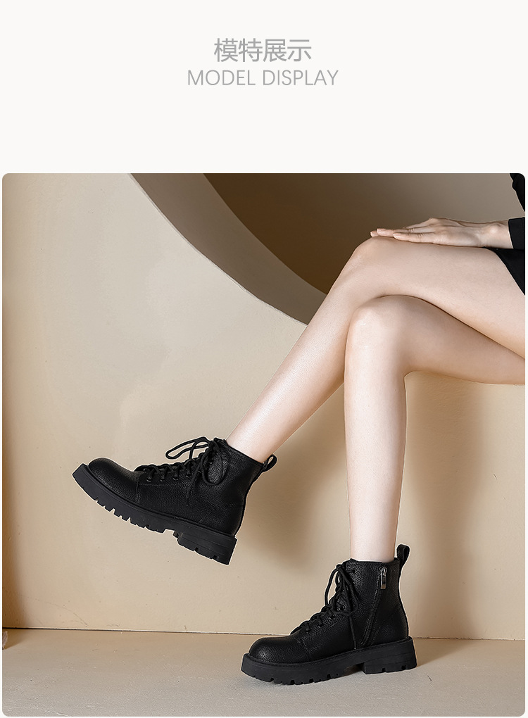 【女鞋专场】真皮厚底系带马丁靴女2023年新款秋冬薄款靴子英伦小个子白色短靴